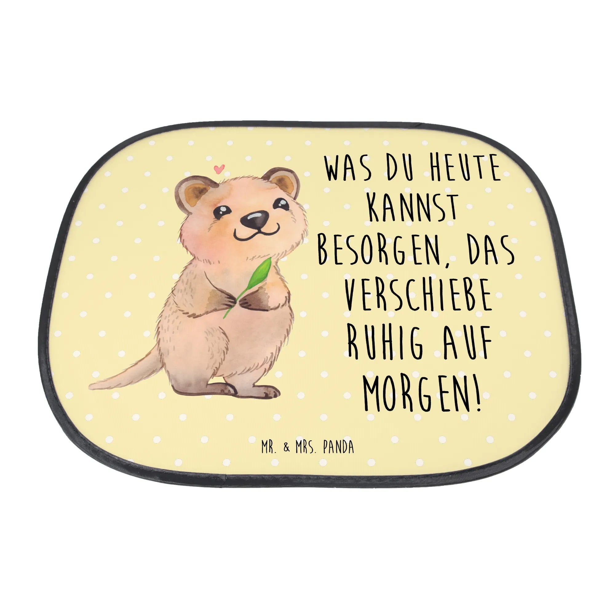 Der Auto Sonnenschutz Quokka Happy von Mr. & Mrs. Panda ist das perfekte Zubehör für dein Auto! Mit seiner charmanten Darstellung eines lächelnden Quokkas bringt er gute Laune in jede Autofahrt. Er ist nicht nur ein schöner Anblick, sondern erfüllt auch die wichtige Funktion, dich und deine Lieben vor der direkten Sonneneinstrahlung zu schützen.