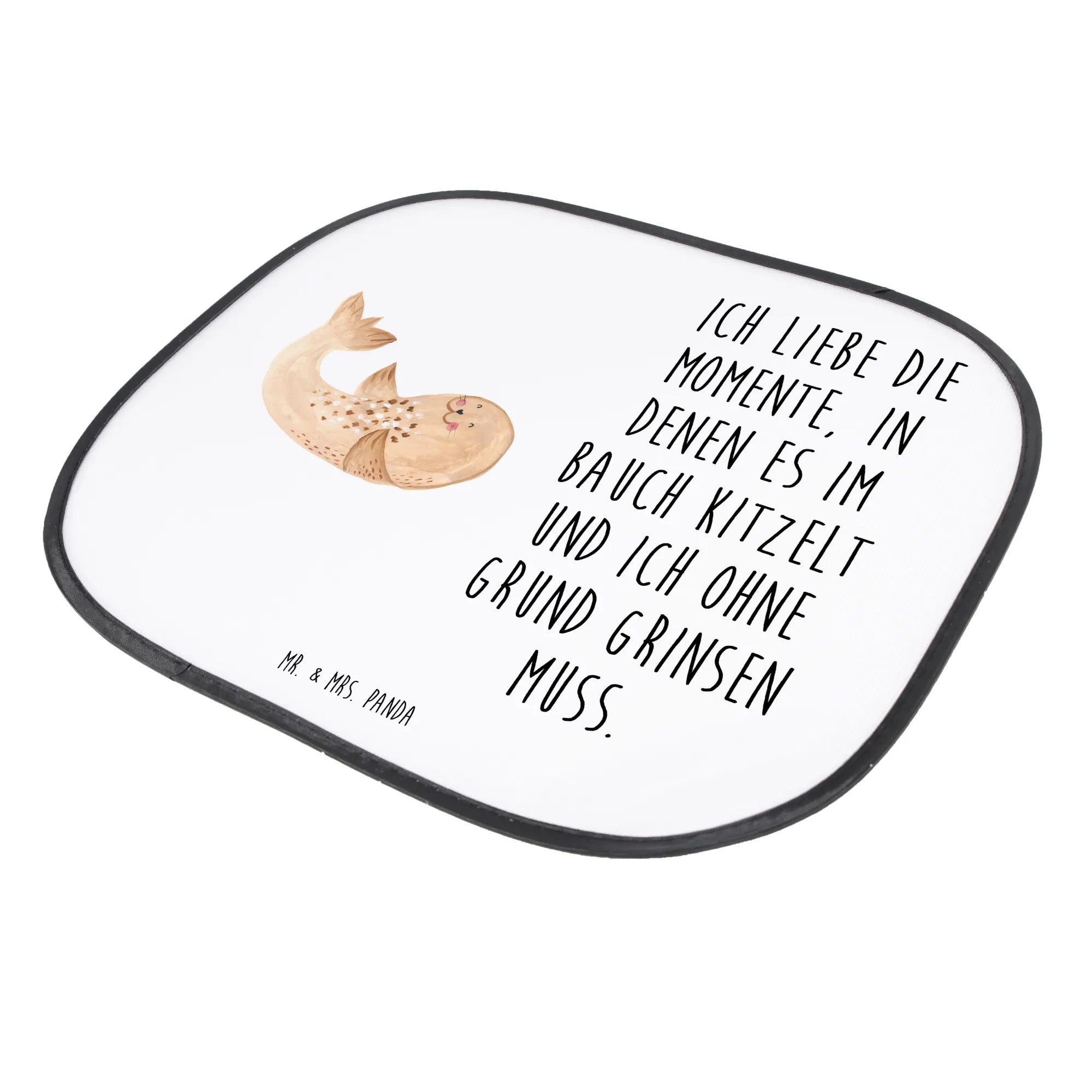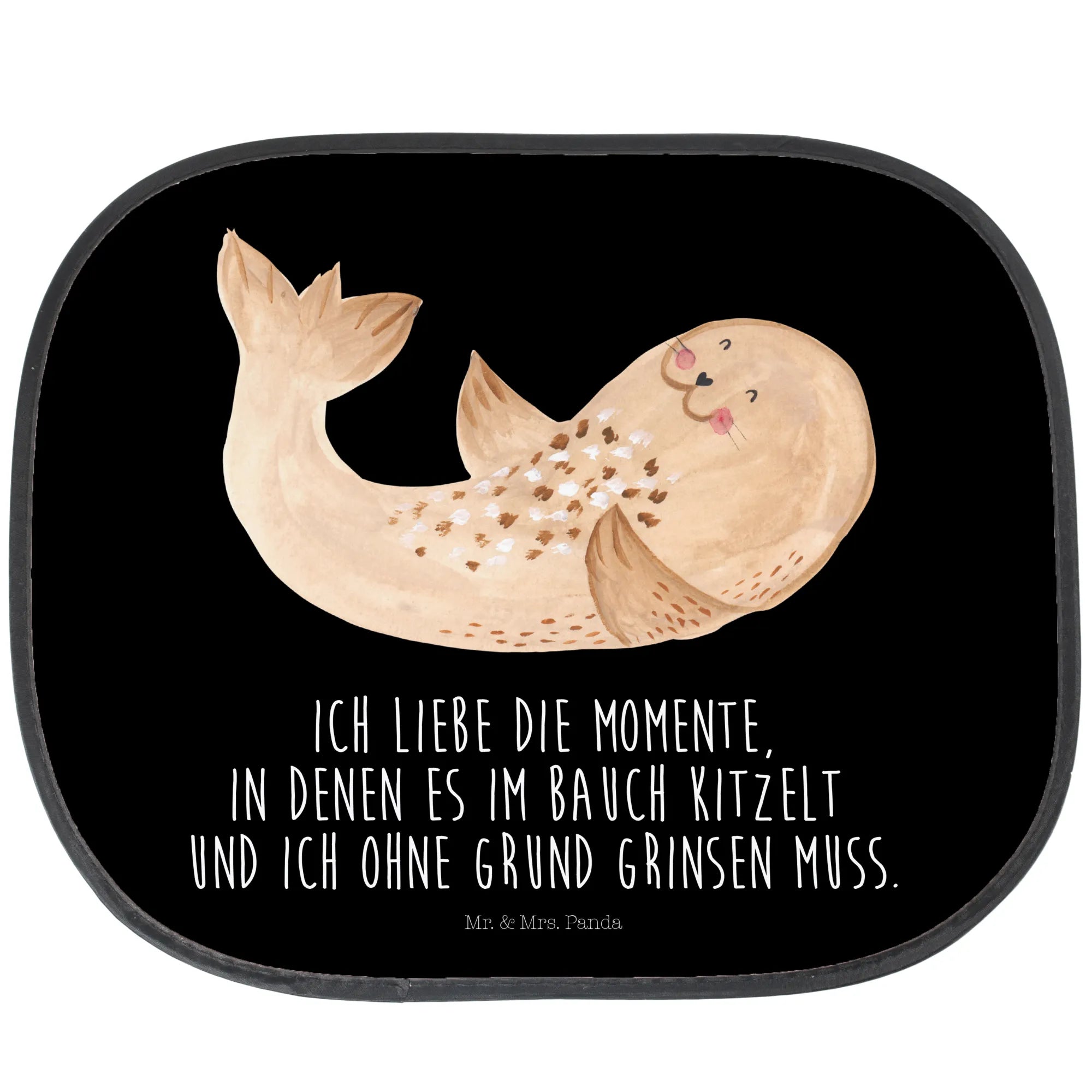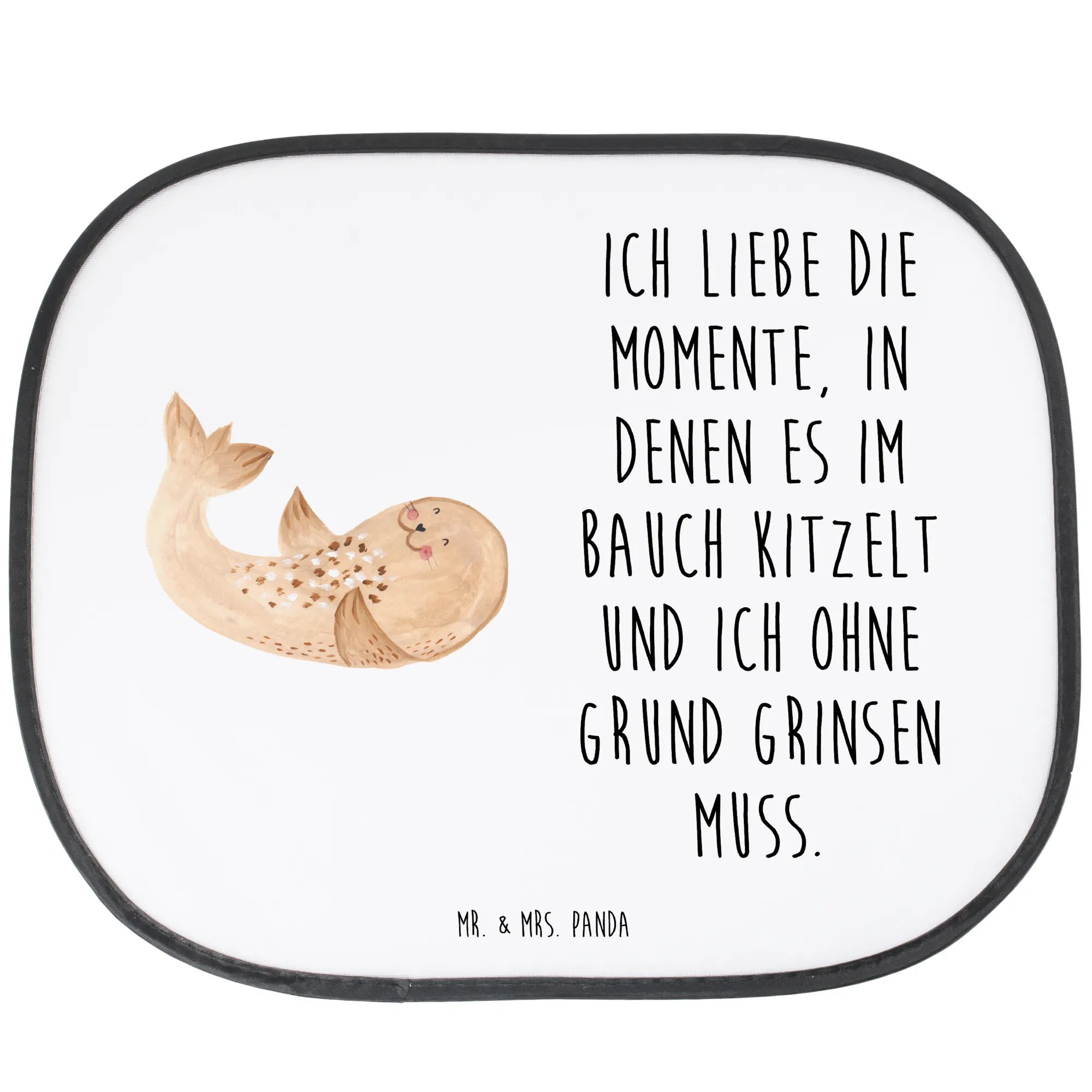 Der Sonnenschutz Auto aus der Small World Kollektion von Mr. & Mrs. Panda kombiniert praktische Funktion mit einem liebevollen Design: Die süße, liegende Robbe und der fröhliche Spruch „Ich liebe die Momente, in denen es im Bauch kitzelt und ich ohne Grund grinsen muss.“ zaubern ein Lächeln auf jedes Gesicht – perfekt für Familien, Strandfans und alle, die das Meer lieben.