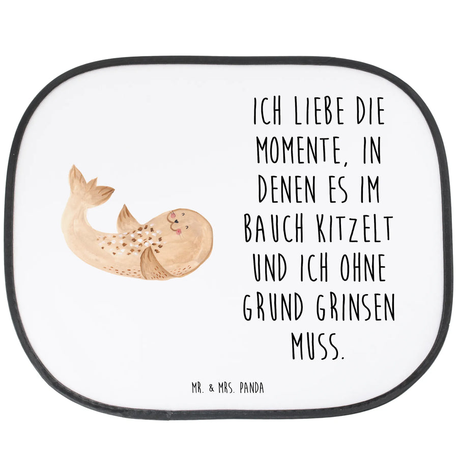 Sonnenschutz Auto Seitenscheibe Robbe Liegen - mit Spruch - Weiß
