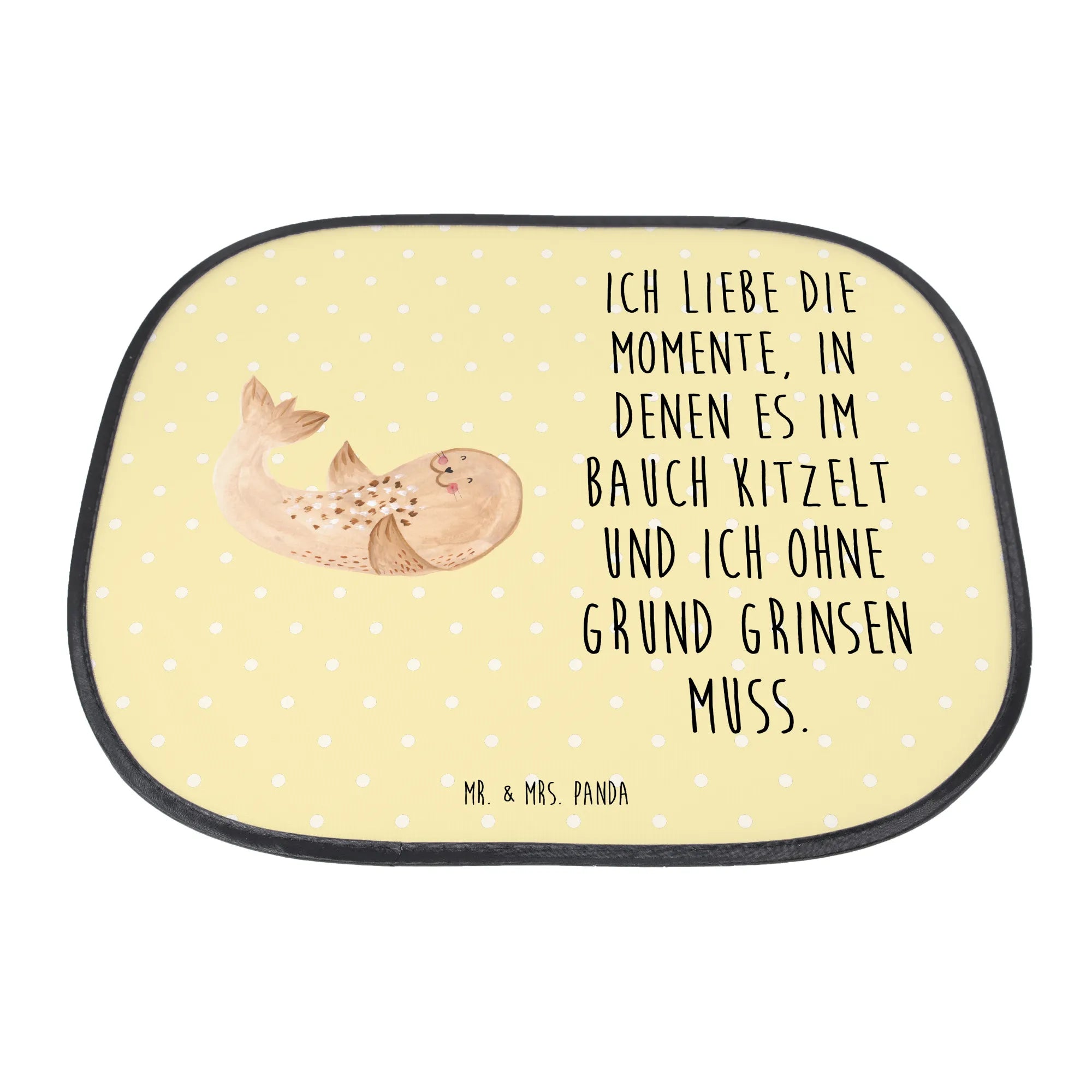 Der Auto Sonnenschutz mit dem süßen Motiv der liegenden Robbe von Mr. & Mrs. Panda ist das perfekte Geschenk für alle Eltern, die ihren Kleinen im Auto einen angenehmen Schutz vor direkter Sonneneinstrahlung bieten möchten. Mit seinen Maßen von 440mm x 380mm passt dieser Sonnenschutz perfekt an die Autoscheibe und sorgt dafür, dass die Kleinen auf langen Autofahrten nicht nur sicher, sondern auch komfortabel reisen können.