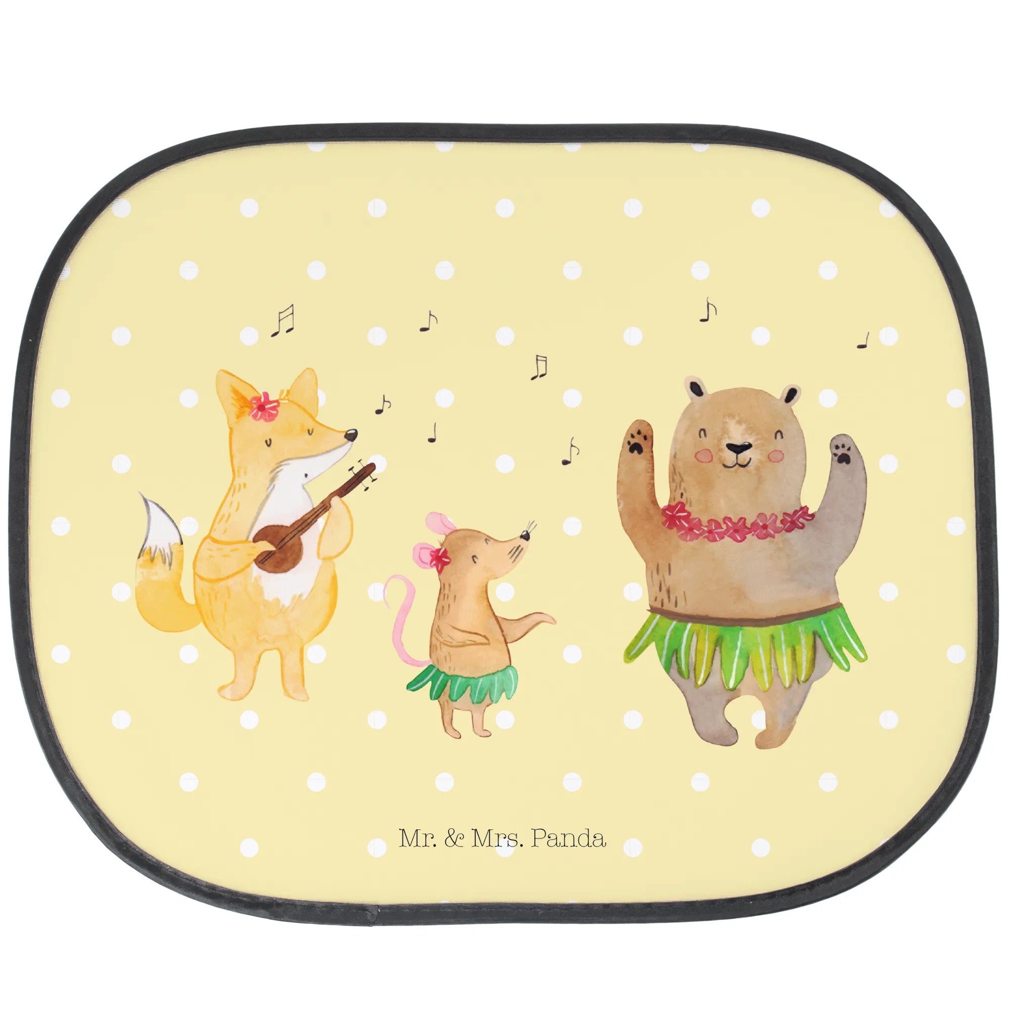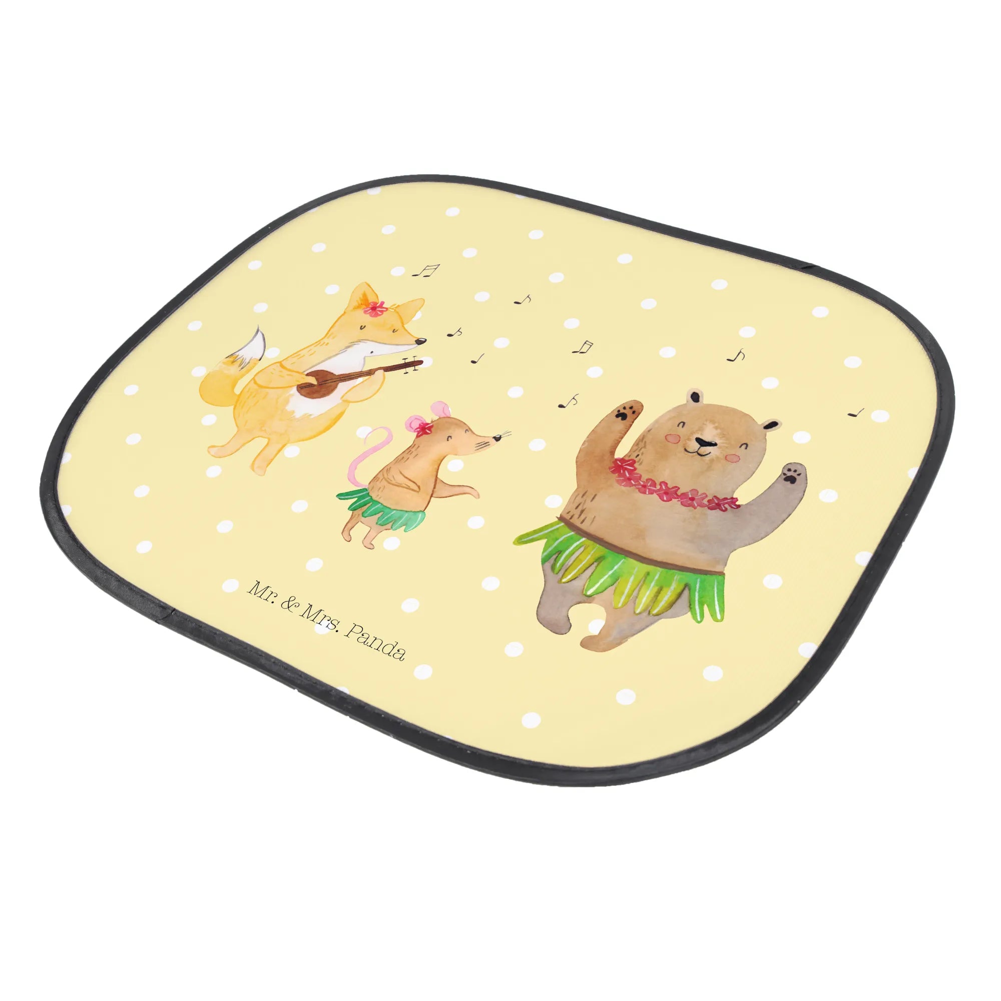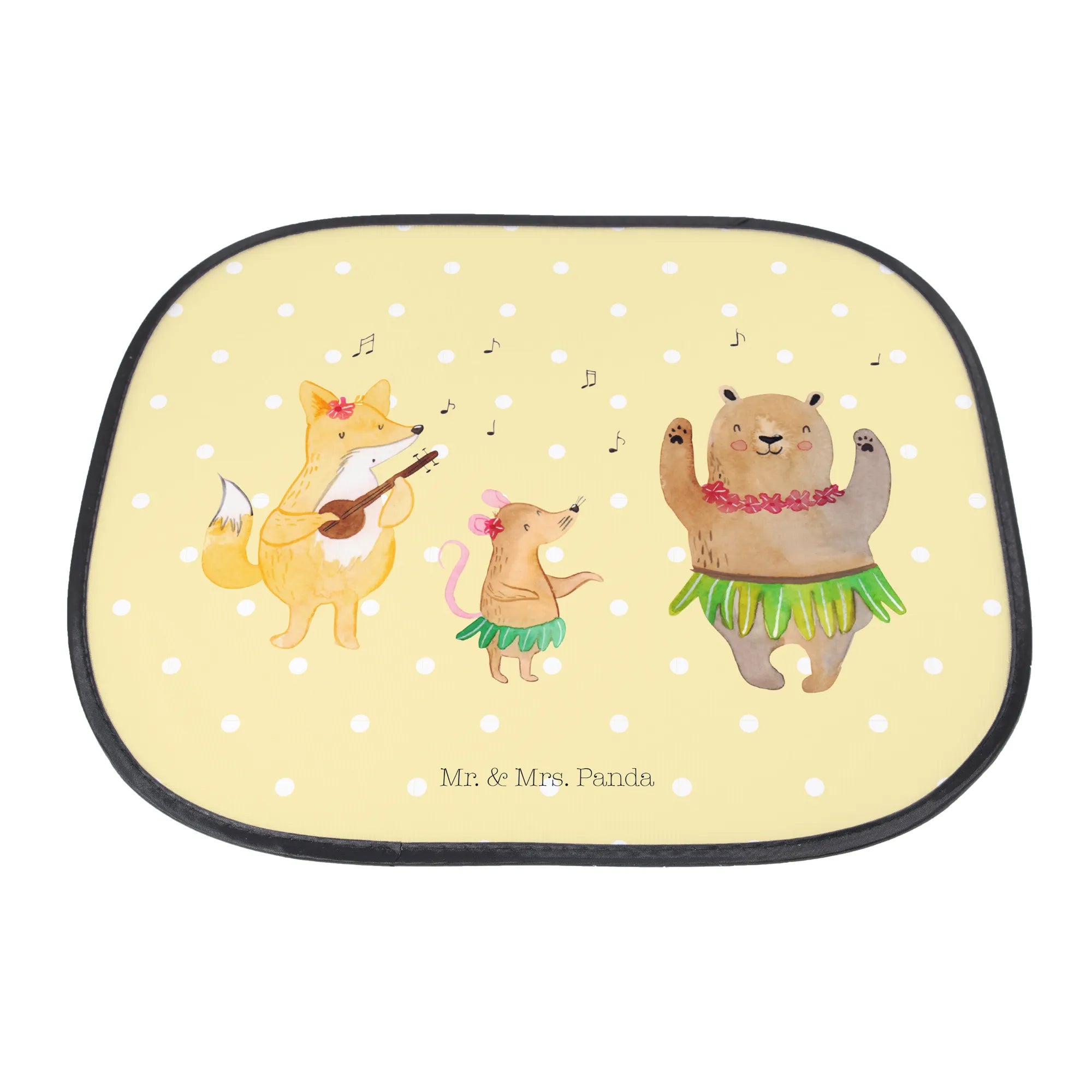 Mit niedlichen Waldbewohnern, die in ihren Hula-Röcken tanzen und sich zu Hawaiianischer Musik bewegen, wird jede Autofahrt zum entspannten Vergnügen. Ob du auf dem Weg zum Strand bist oder einen Ausflug ins Grüne planst, dieser Sonnenschutz verwandelt dein Auto in eine fröhliche Urlaubs-Oase.