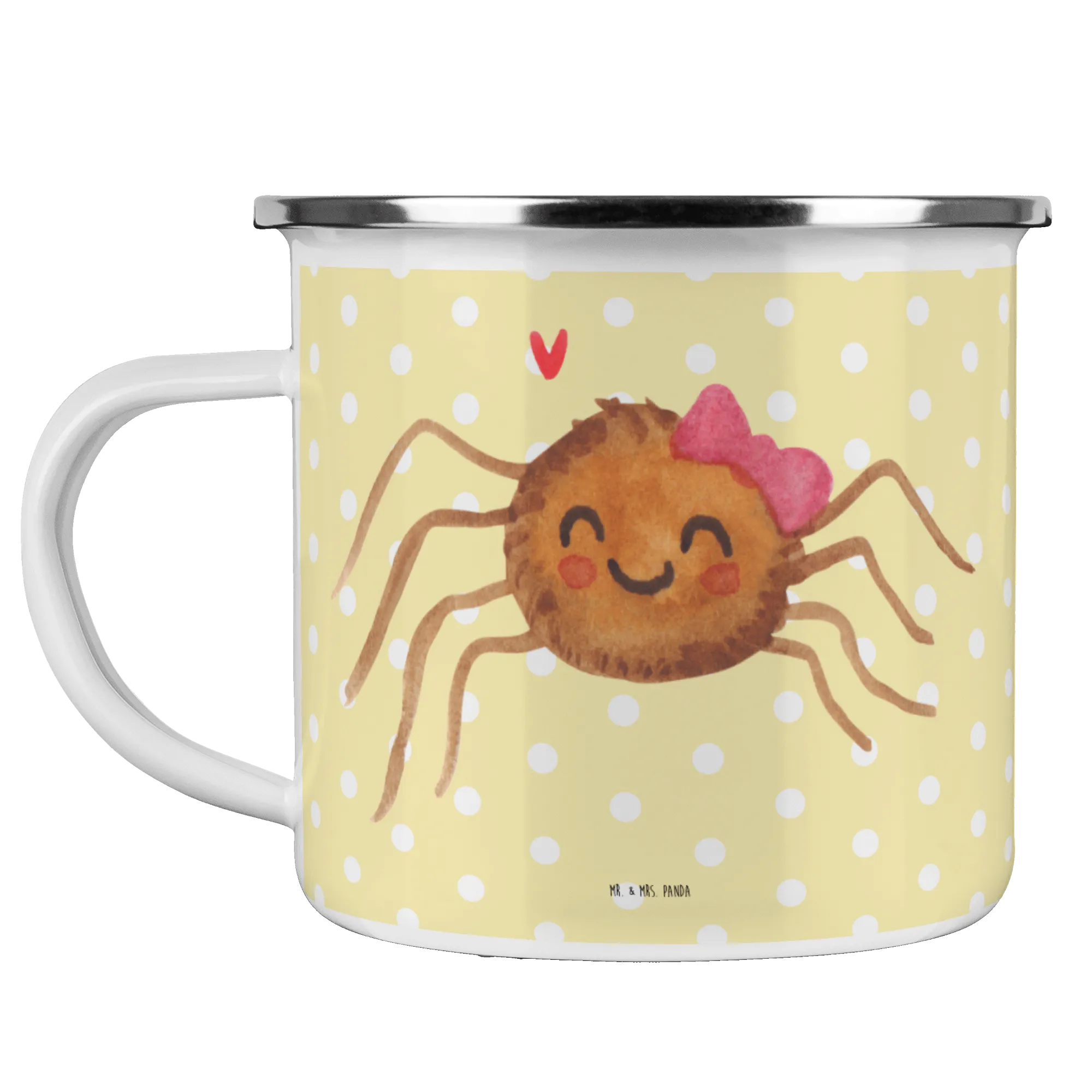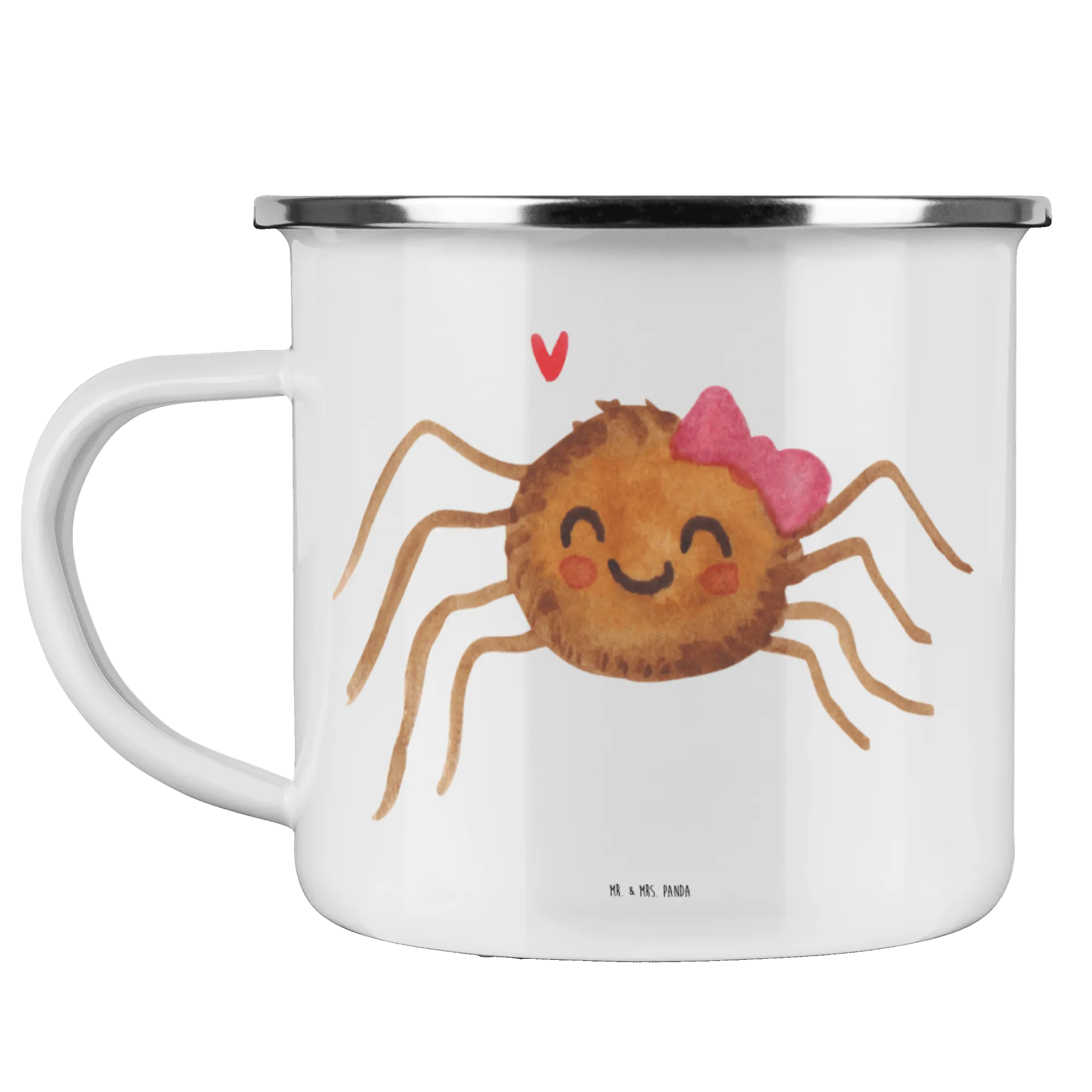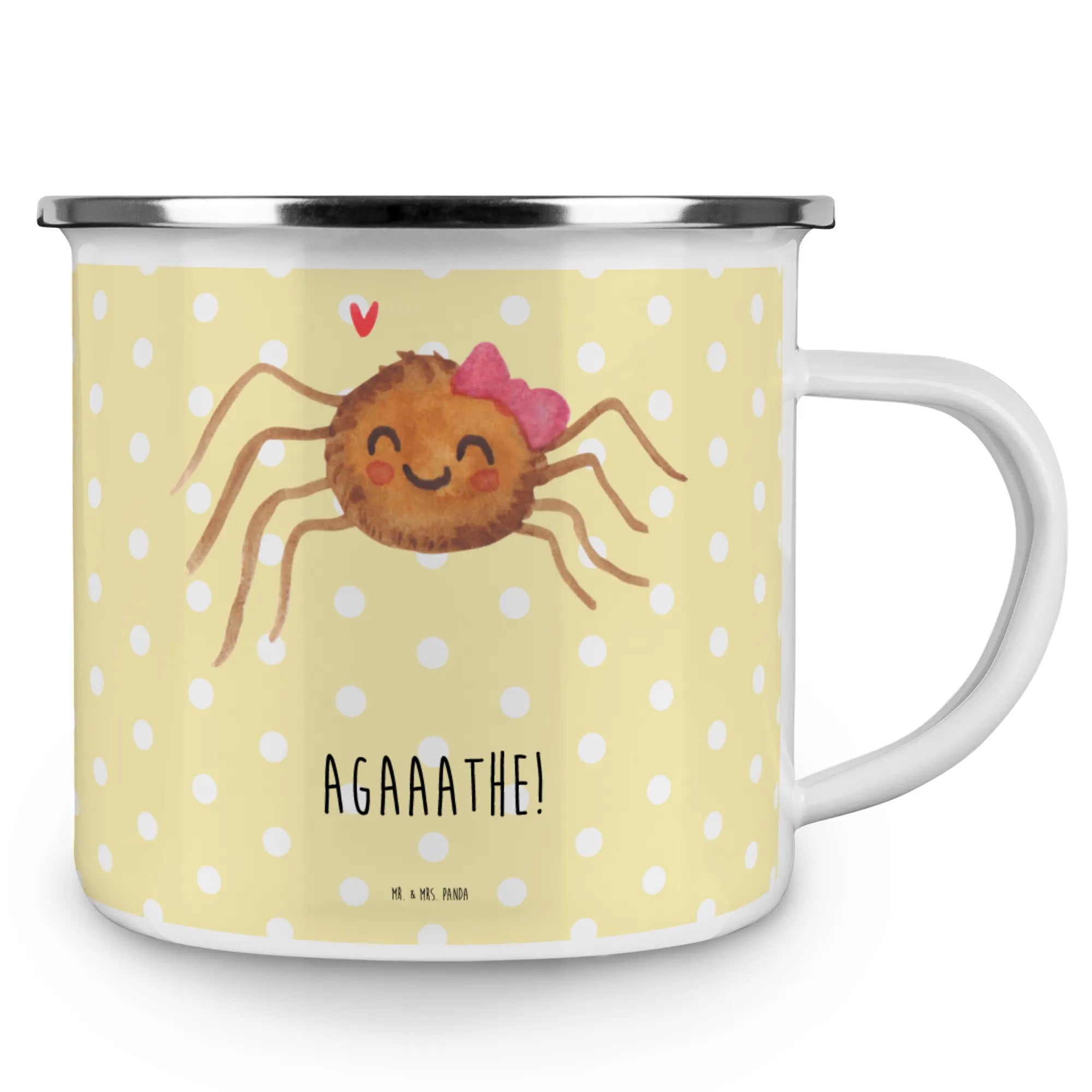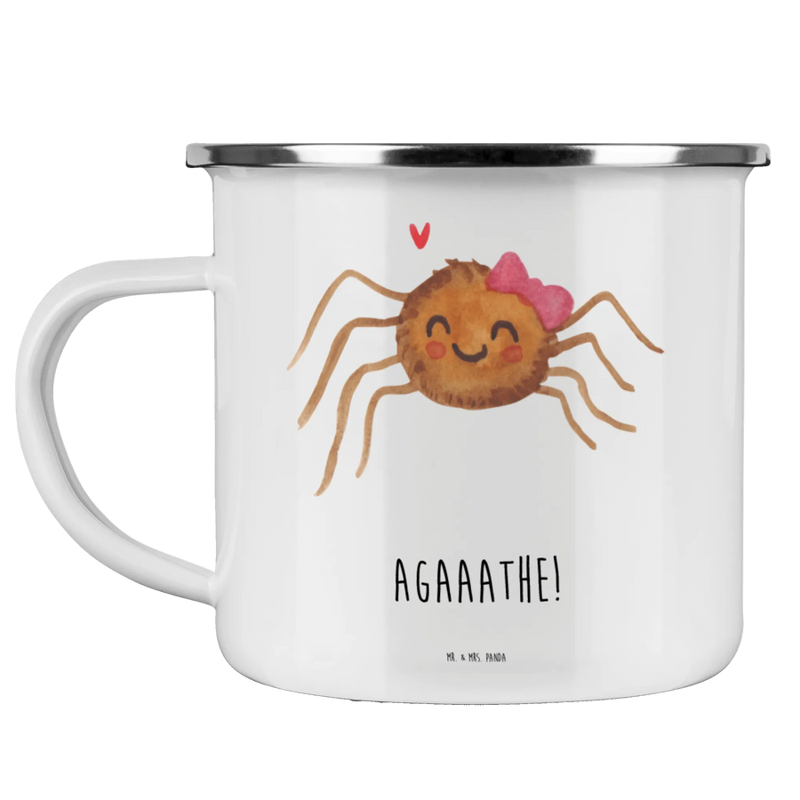 Die Camping Emaille Tasse Spinne Agathe Freude aus der zauberhaften Kollektion von Mr. & Mrs. Panda ist das perfekte Geschenk für alle Abenteuerlustigen!
