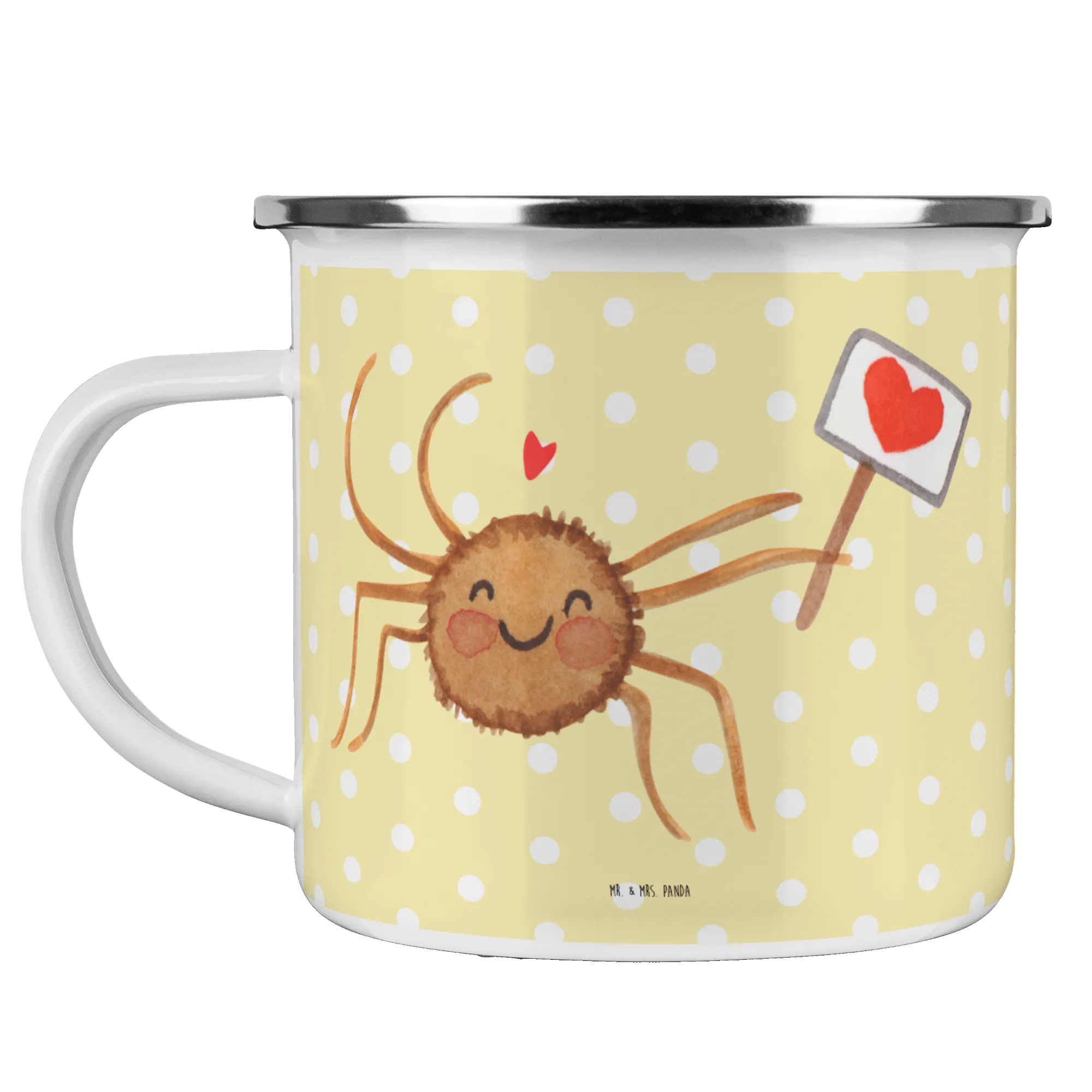 Aus der beliebten Spinne Agathe Kollektion von Mr. & Mrs. Panda hat dieser Camping Becher bereits viele Herzen erobert und ist ein ideales Dankeschön für Freunde, Familie oder für den besonderen Menschen in Deinem Leben. Wenn Du also auf der Suche nach einem ausgefallenen Geschenk bist – ob zum Geburtstag, zum Einzug oder einfach nur so – dann ist diese Emaille Tasse genau das Richtige!
