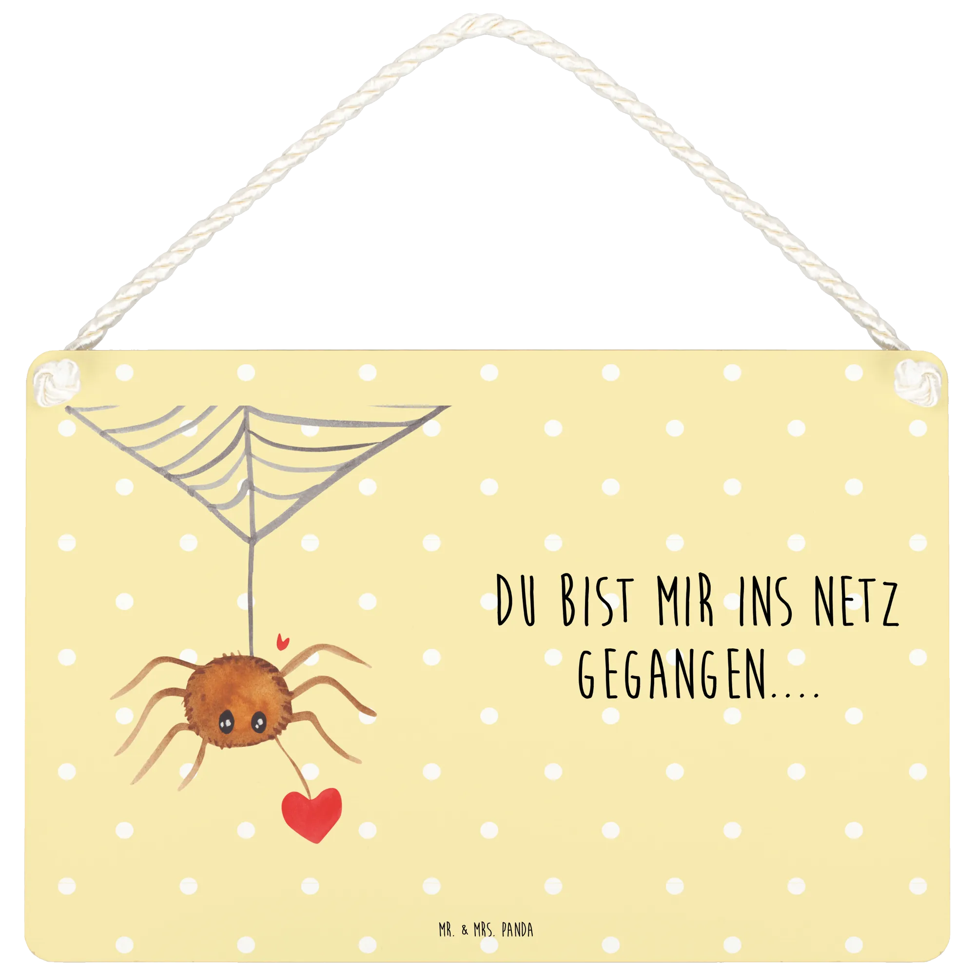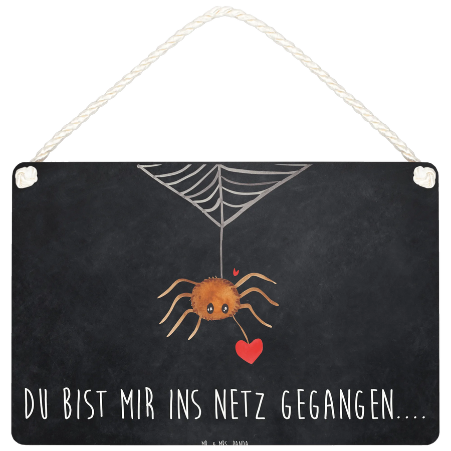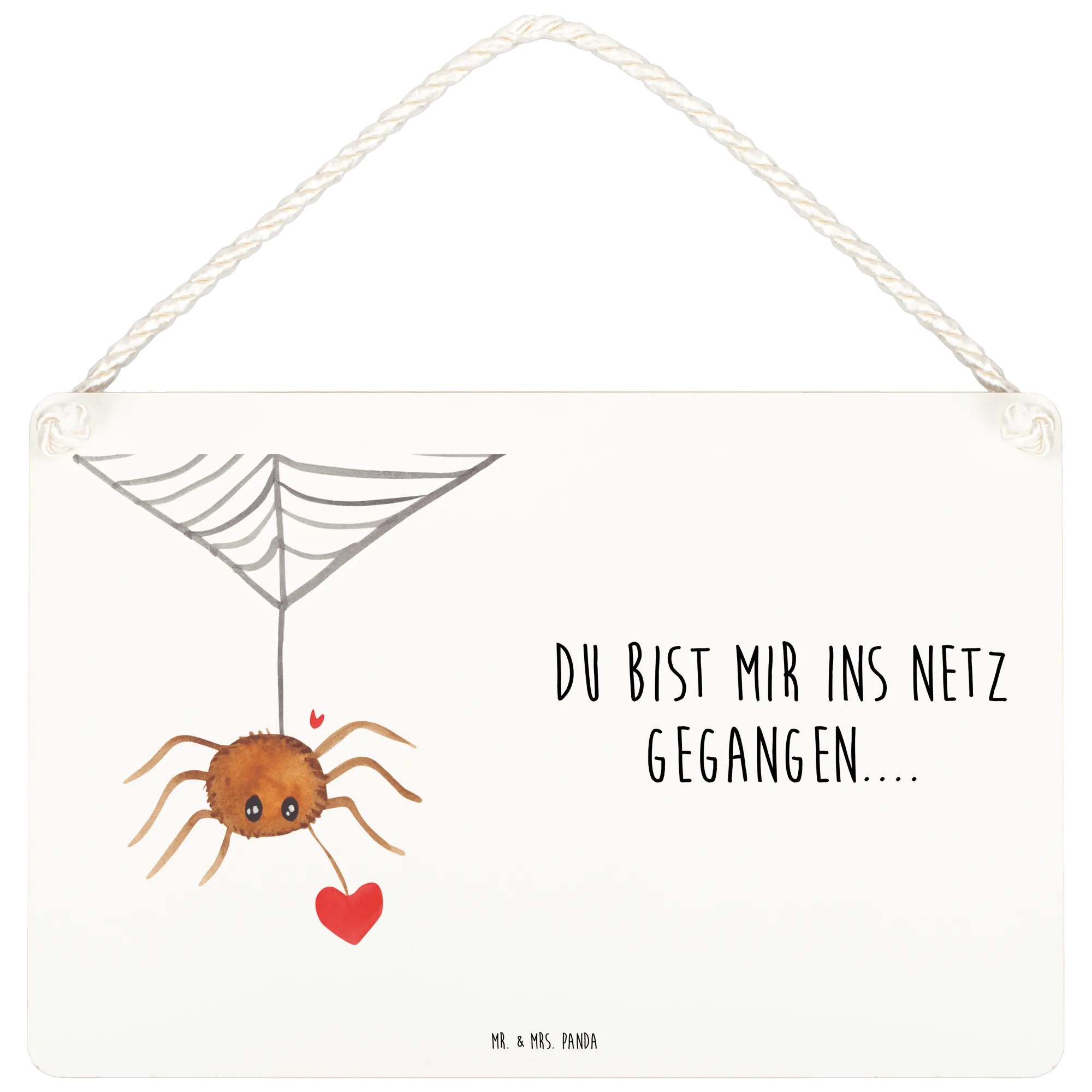 Bist Du auf der Suche nach einem einzigartigen Liebesgeschenk? Unser Deko Schild mit dem süßen Motiv "Spinne Agathe Liebe" aus der Mr. & Mrs. Panda Kollektion ist genau das Richtige für Dich! Mit dem charmanten Slogan "Du bist mir ins Netz gegangen..." erinnert es an die schöne und oft unerklärliche Facette der Liebe. Agathe, die liebende Spinne, schwingt an ihrem Netz und strahlt pure Zuneigung aus.