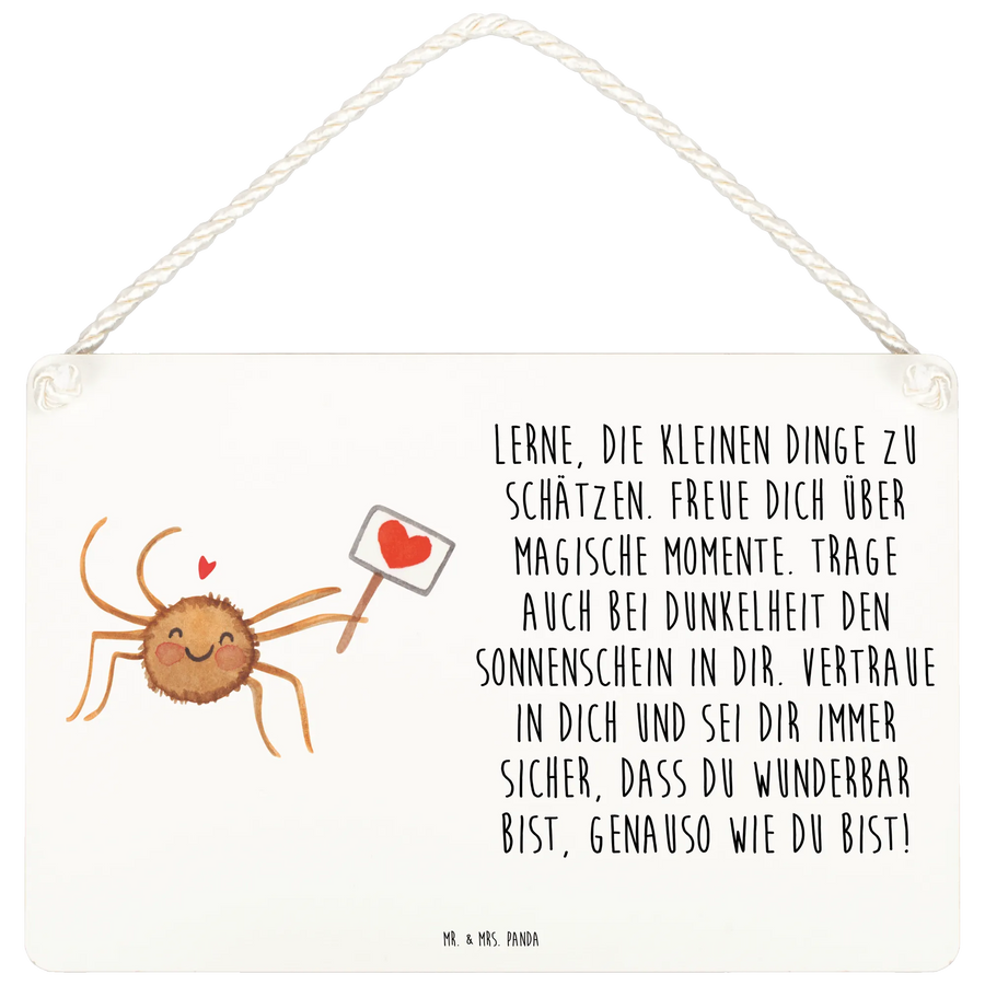 Das Deko Schild "Spinne Agathe Motivation" von Mr. & Mrs. Panda ist ein wunderbares Geschenk für alle, die an die kleinen Dinge im Leben glauben und sich nach einem Hauch von Glück, Liebe und Motivation sehnen.