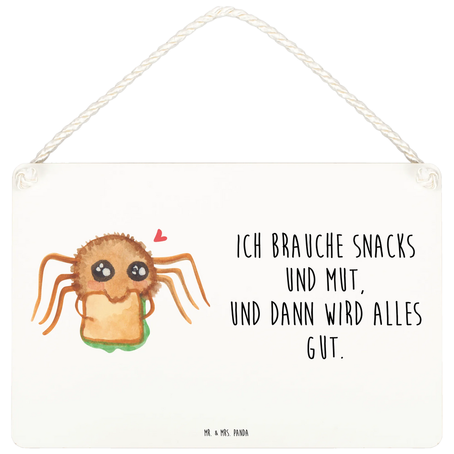 Das Deko Schild "Spinne Agathe Sandwich" von Mr. & Mrs. Panda ist der perfekte Begleiter für all jene, die das Leben mit einem Hauch von Glück und Lebensfreude würzen möchten. Mit seinem herzlichen Design und dem Spruch "Ich brauche Snacks und Mut, und dann wird alles gut" bringt es nicht nur Farbe, sondern auch ein Lächeln in jedes Zuhause.