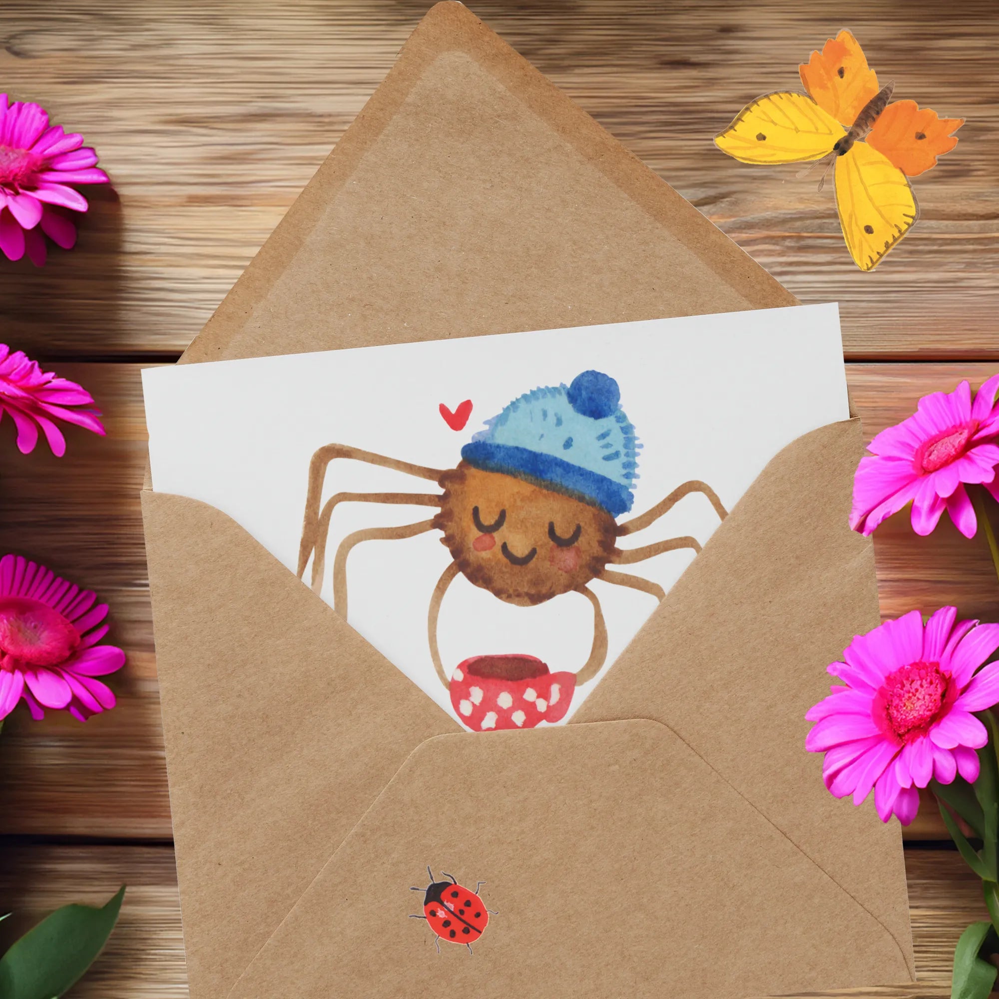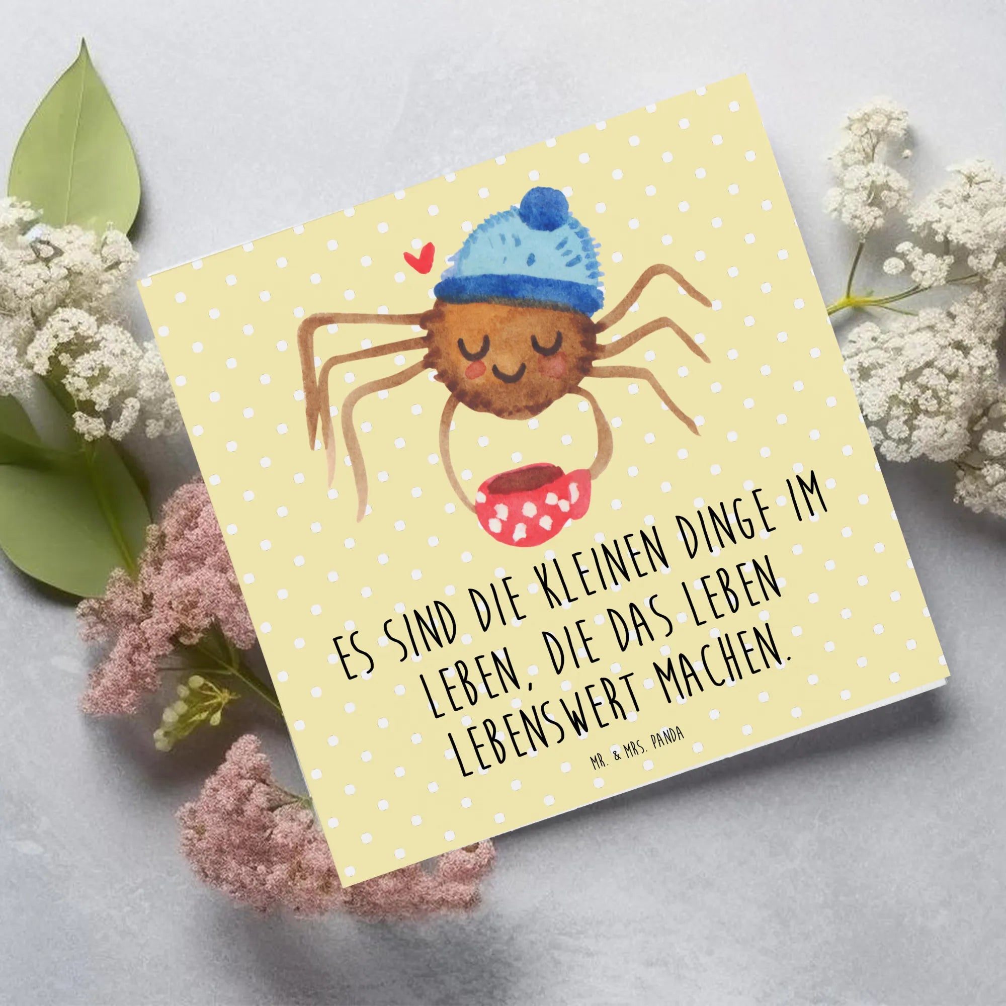 Die Deluxe Karte mit dem Motiv Spinne Agathe Kaffee von Mr. & Mrs. Panda ist das perfekte Geschenk für all jene, die die kleinen Dinge im Leben schätzen!