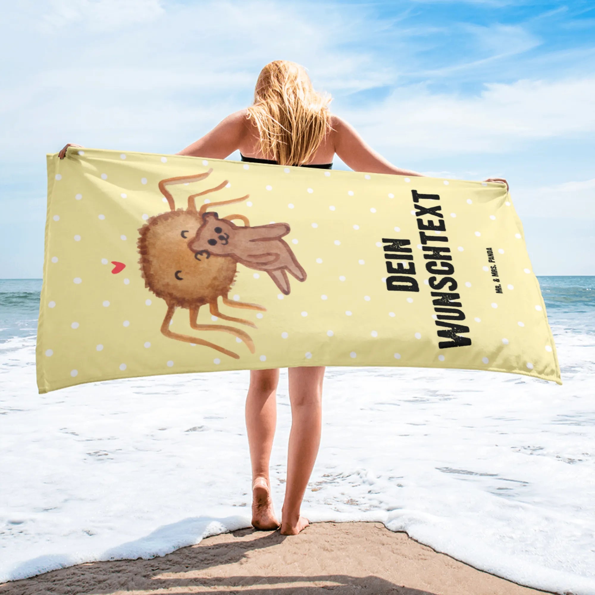 Das personalisierte Handtuch von Mr. & Mrs. Panda ist die optimale Wahl für verliebte Paare, beste Freunde oder als einzigartige Überraschung für Familie und Freunde. Die fantasievolle Kollektion 'Spinne Agathe', die aus den kreativen Ideen von Nora, der Inhaberin von Mr. & Mrs. Panda, entstanden ist, bietet zahlreiche süße Motive, die das Herz erwärmen. Verschenke Freude, Liebe und Dezentheit – mit einem Handtuch, das nicht nur funktional ist, sondern auch zu einem tollen Blickfang in jedem Badezimmer oder am Strand wird.
