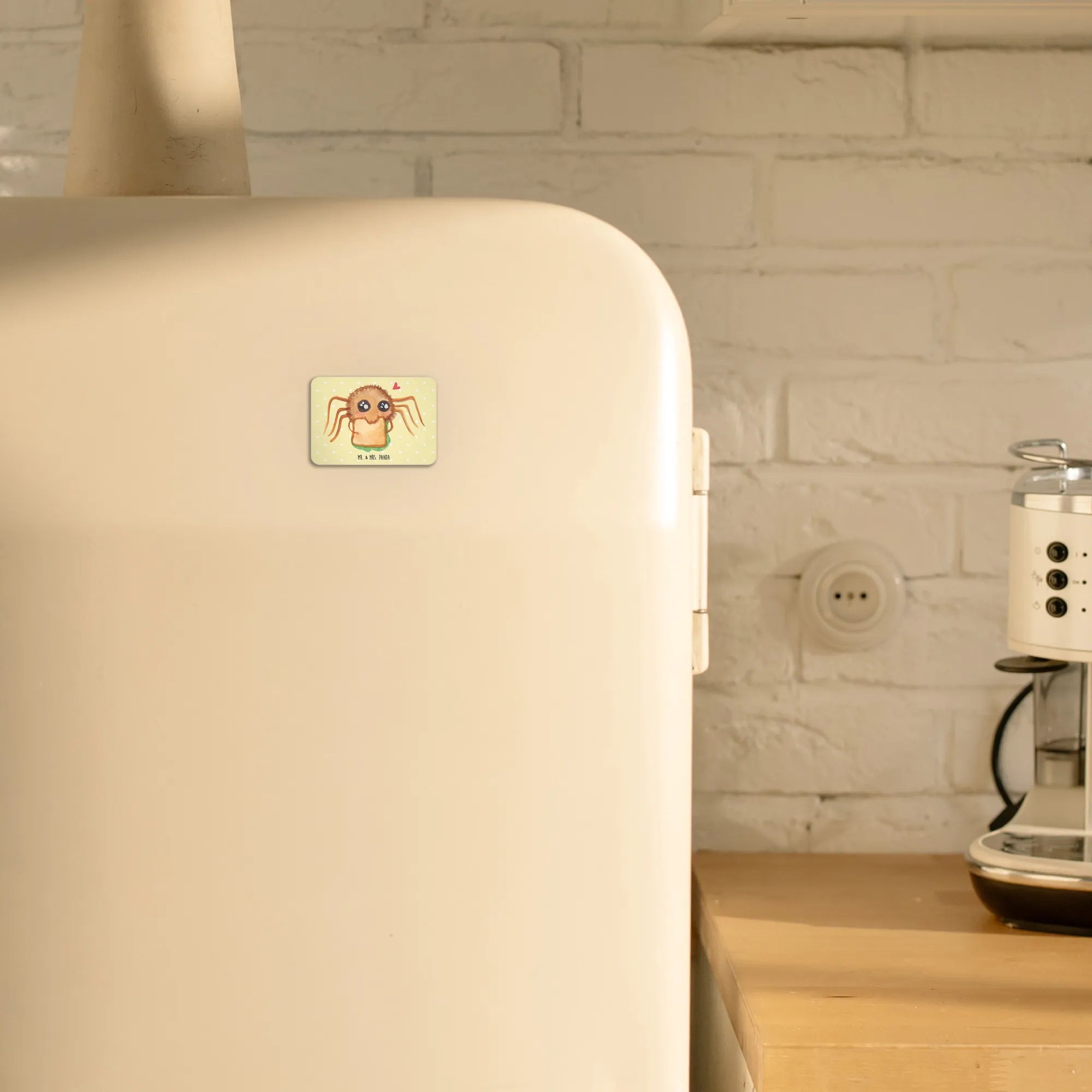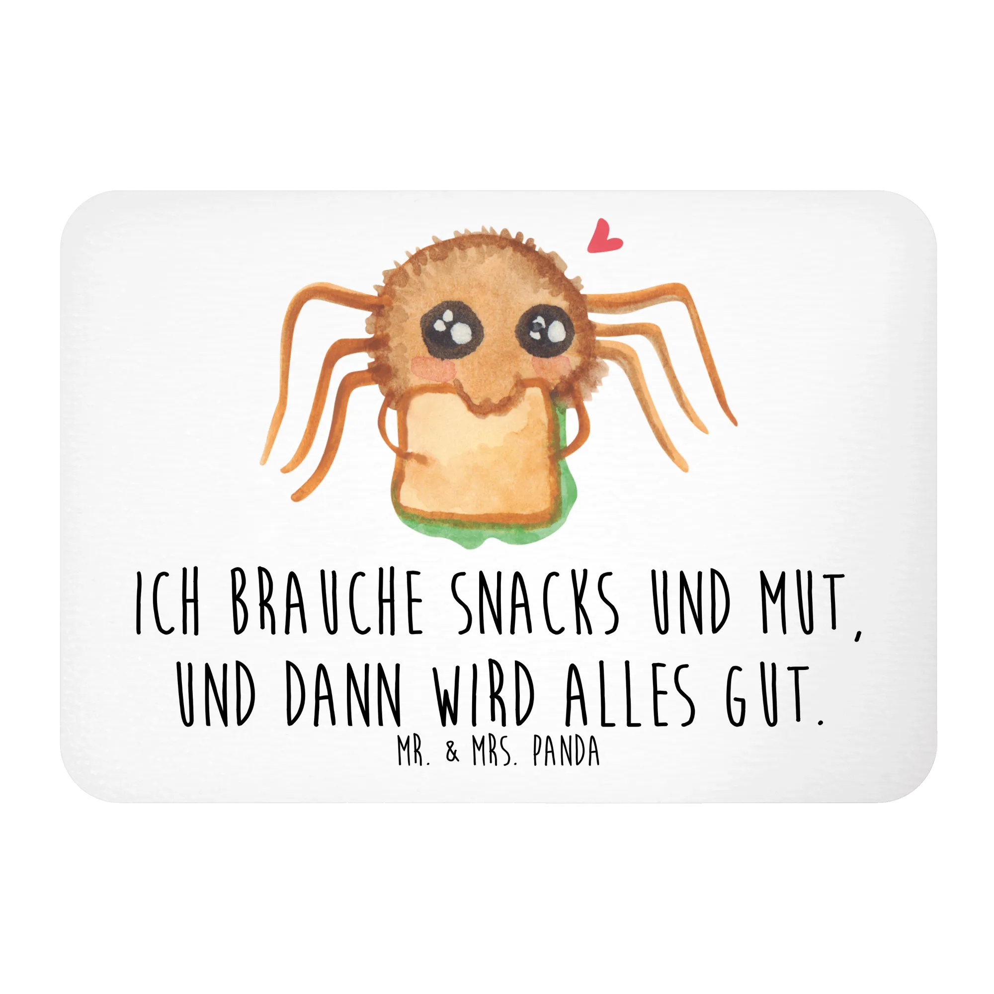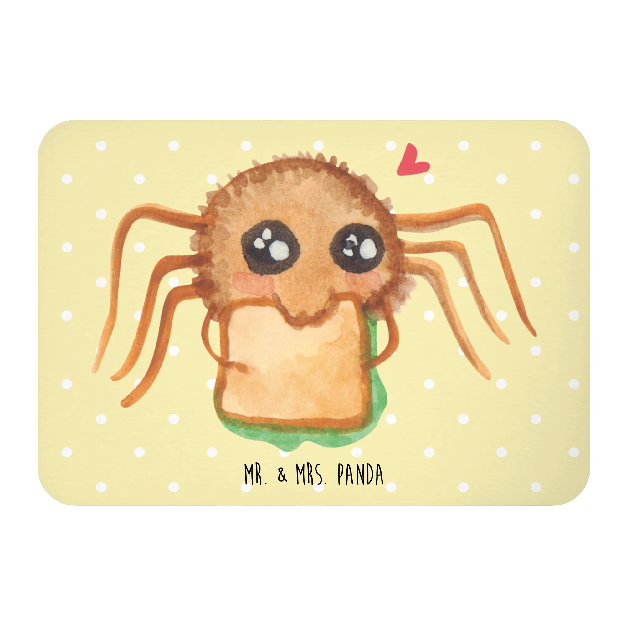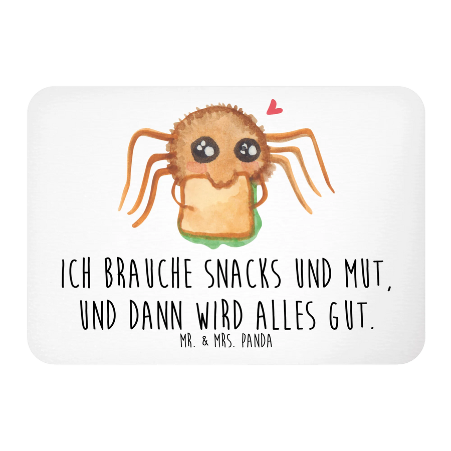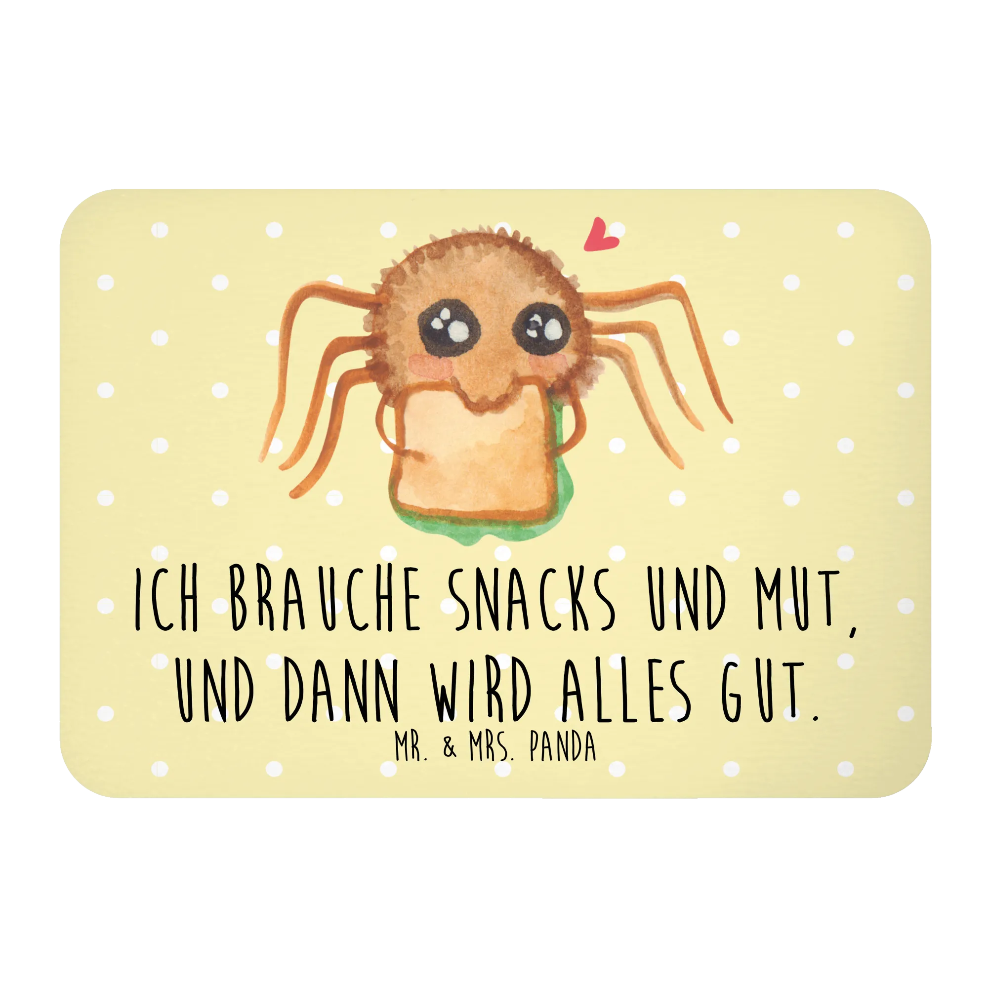 Der Magnet Spinne Agathe Sandwich von Mr. & Mrs. Panda ist mehr als nur ein Kühlschrankmagnet. Mit dem handgezeichneten Aquarell-Motiv von Agathe, die genüsslich ein Sandwich isst, bringt er Lebensfreude, Humor und Wärme an Deine Küche oder Dein Whiteboard. Das pastellige Gelb, das Herzchen neben Agathes Köpfchen und der liebe Spruch „Ich brauche Snacks und Mut, und dann wird alles gut.“ sorgen für ein sofortiges Lächeln.