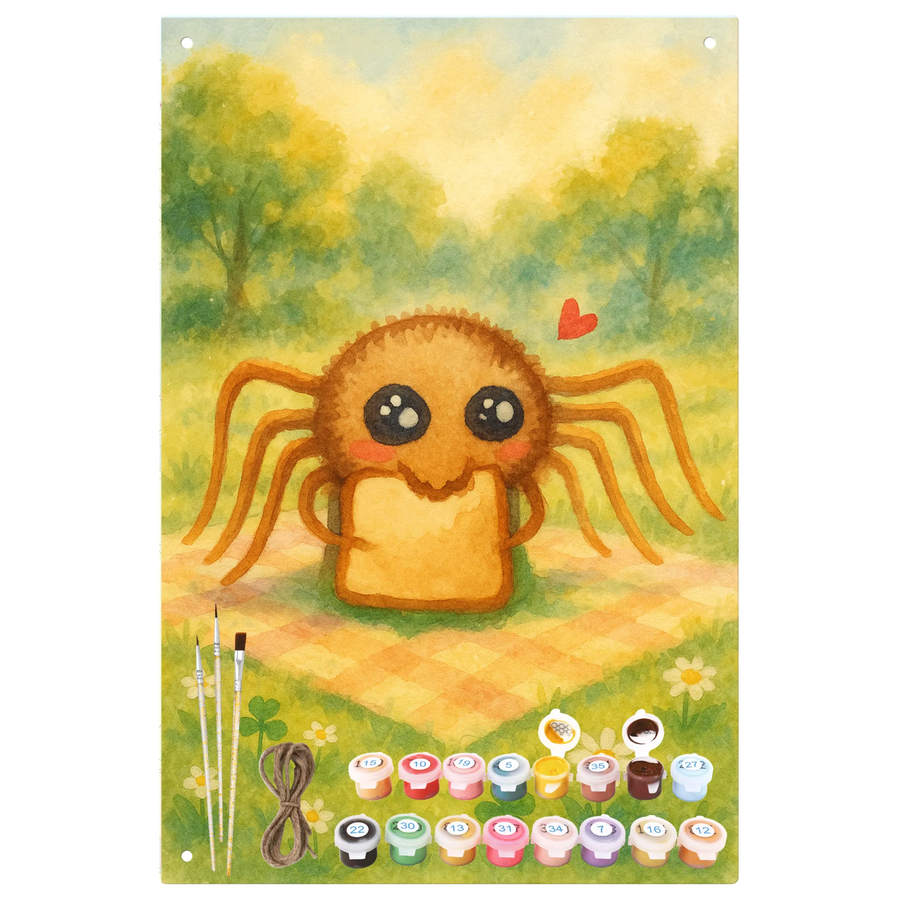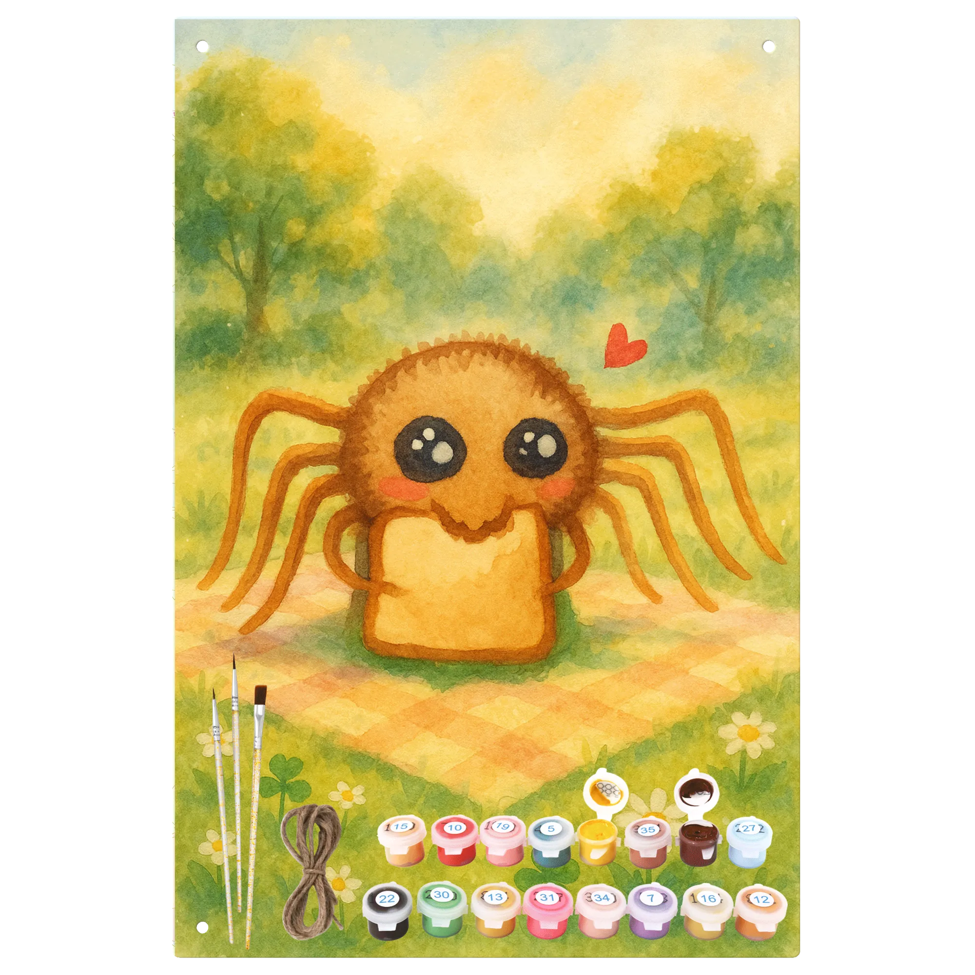 Malen nach Zahlen Metallschild Spinne Agathe Sandwich Design