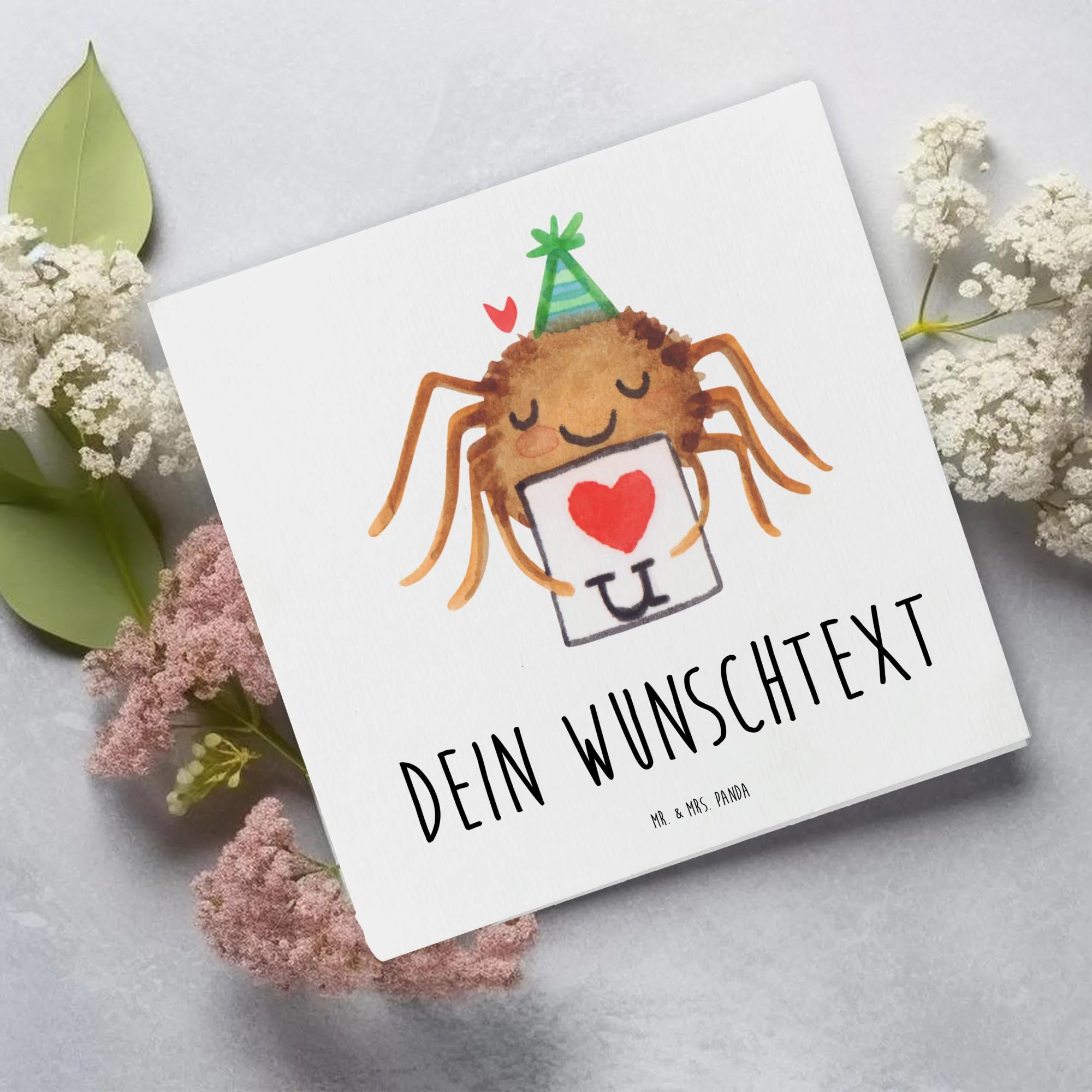 Kreiere einen Liebesbeweis mit dieser süßen 'Spinne Agathe' und sage mit einem liebevollen Gruß: 'Können wir bitte zusammen alt werden?' Tolles Design, persönliche Note und viel Liebe – das ist die persönliche Deluxe Karte von Mr. & Mrs. Panda!