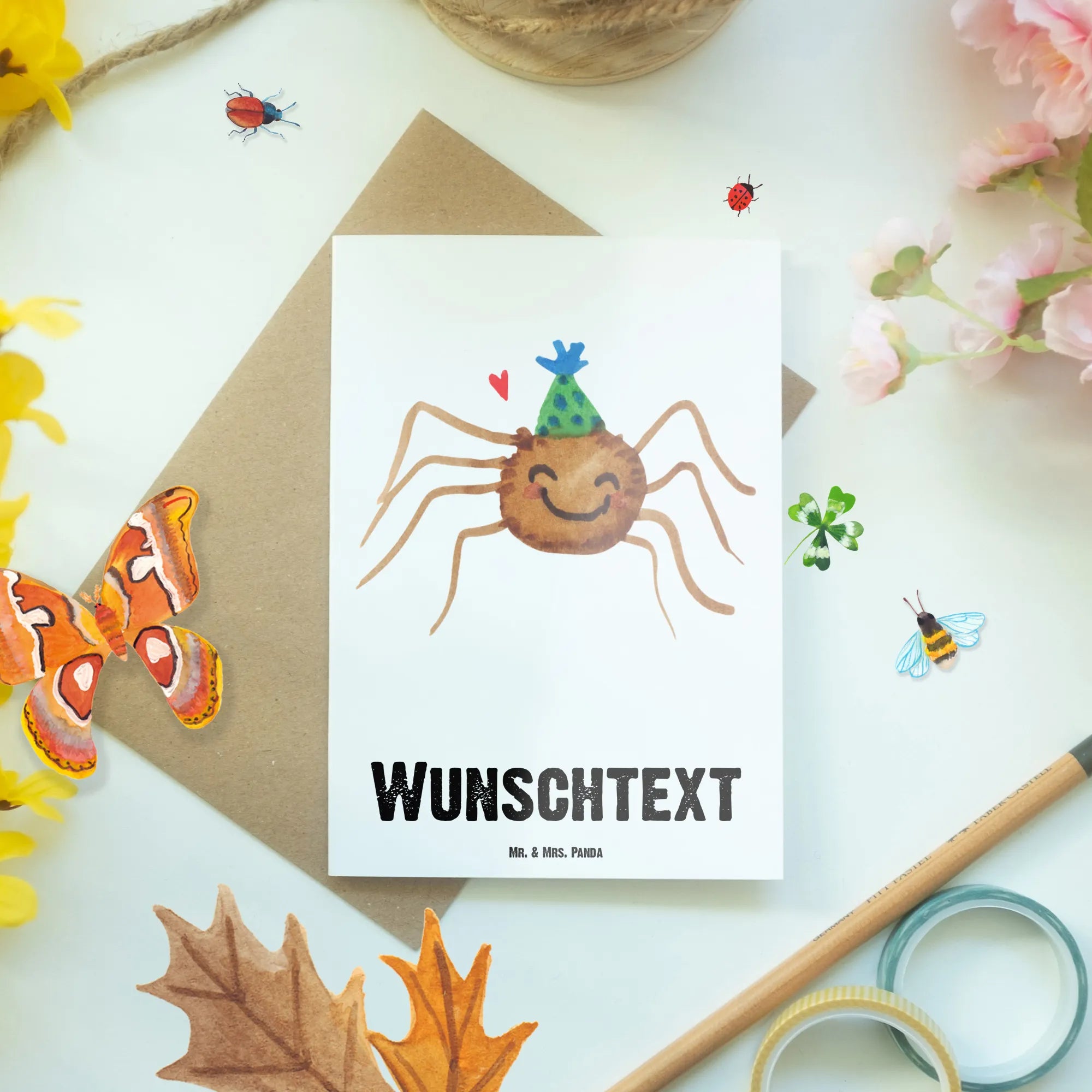 Verschenke ein Lächeln mit der personalisierten Grußkarte „Spinne Agathe Party“ von Mr. & Mrs. Panda! 🎉 Die kleine Spinne Agathe mit Partyhut verbreitet Lebensfreude, Motivation und Selbstliebe — ein zauberhaftes Motiv für persönliche Einladungskarten, Geburtstagskarten oder Glückwunschkarten.