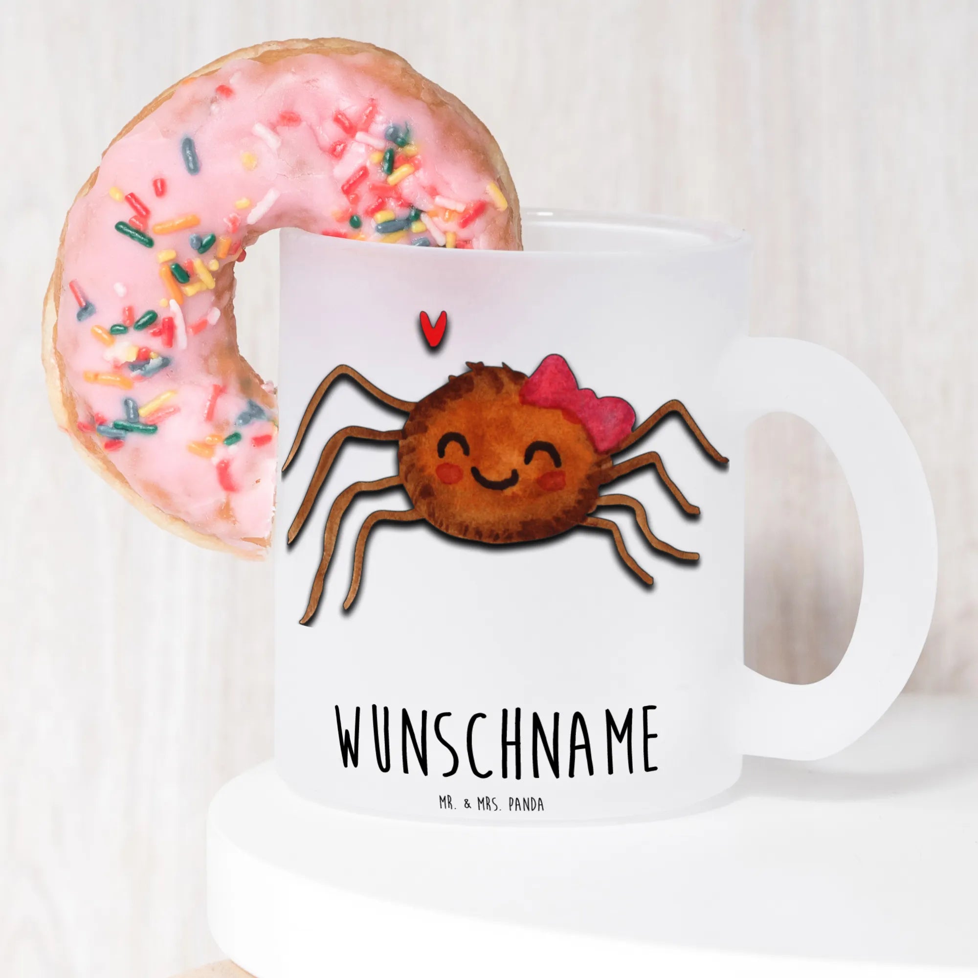 Die personalisierte Teetasse "Spinne Agathe Freude" von Mr. & Mrs. Panda ist das perfekte Geschenk für alle, die das Besondere lieben. Diese edle Teetasse aus robustem Glas wird mit Liebe und Sorgfalt hergestellt und ist individuell mit deinem Wunschtext oder Namen gestaltbar.