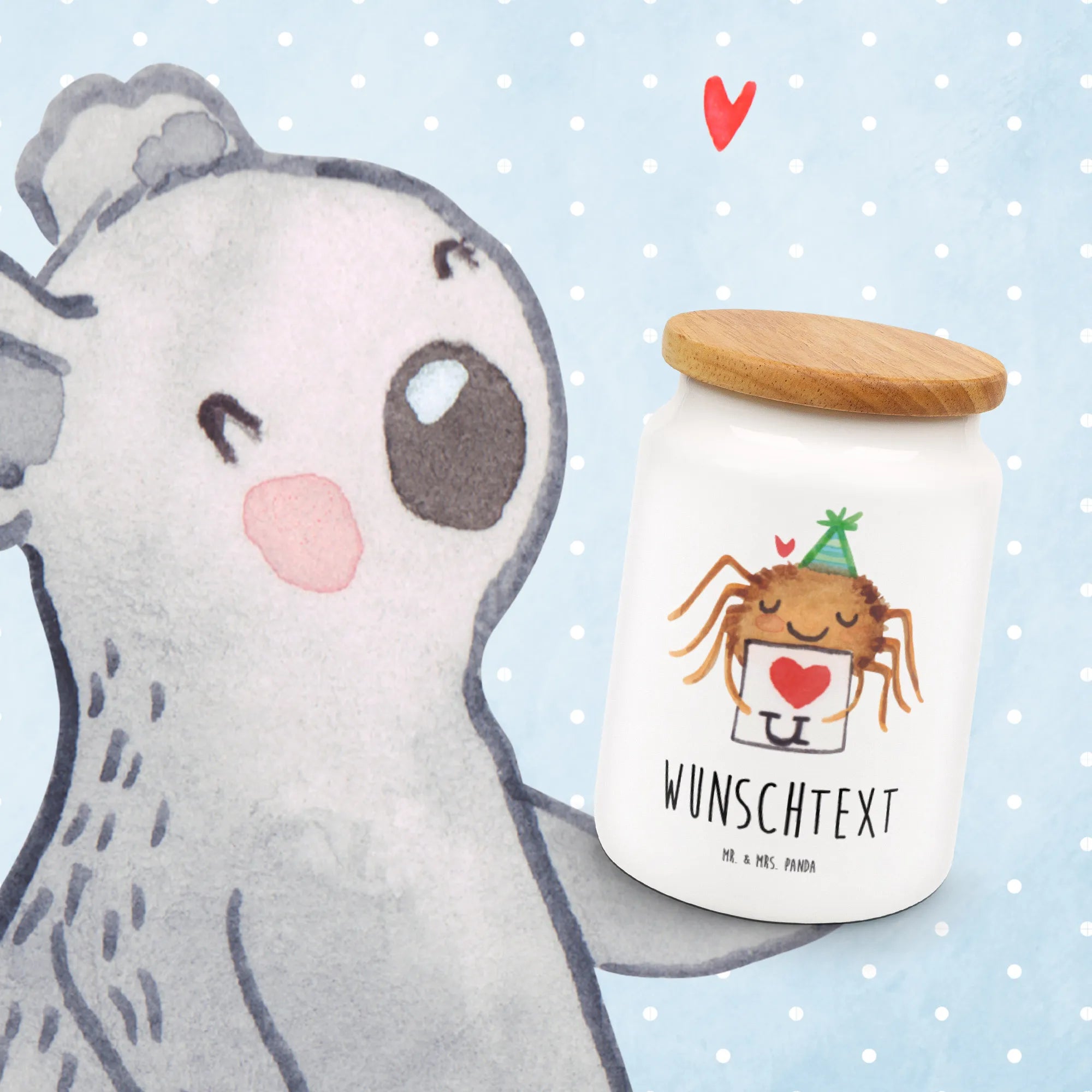 Die personalisierte Vorratsdose "Spinne Agathe Brief" von Mr. & Mrs. Panda ist nicht nur einfach eine Dose, sie ist ein echtes Liebesgeschenk! Ideal für alle, die das Besondere lieben und kleine Aufmerksamkeiten schätzen.