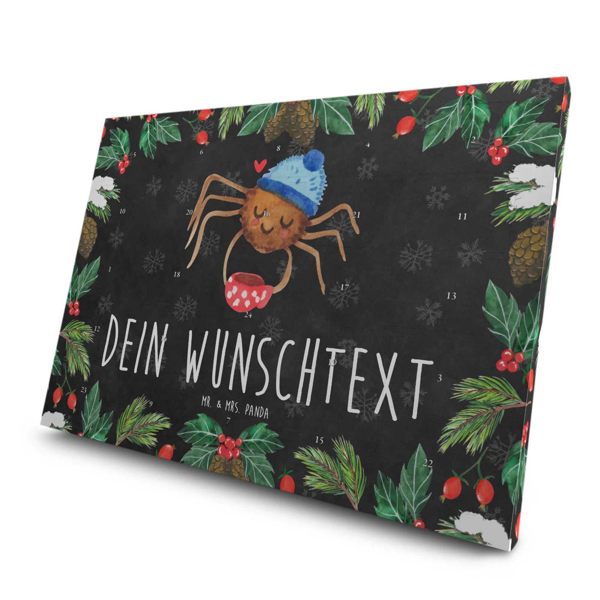 Bist du auf der Suche nach dem perfekten Geschenk für einen Teeliebhaber oder einen Morgenmuffel? Dann ist der personalisierte Tee Adventskalender Spinne Agathe Kaffee von Mr. & Mrs. Panda genau das Richtige!