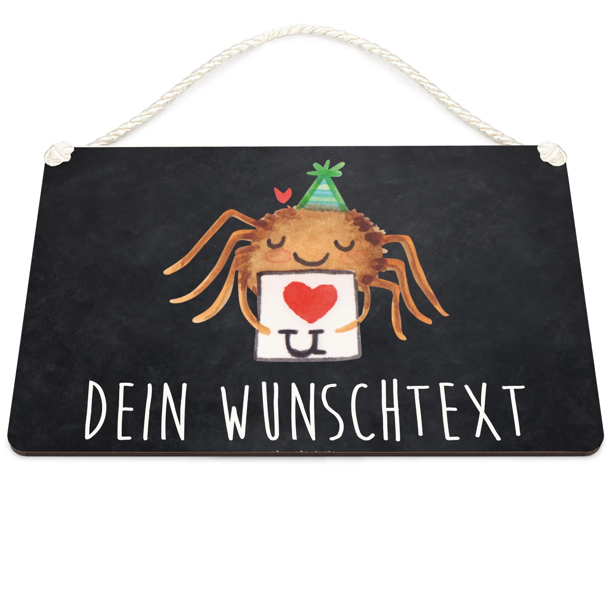 Die Spinne Agathe Kollektion von Mr. & Mrs. Panda hat sich auf sozialen Medien großer Beliebtheit erfreut und zieht durch ihren humorvollen Ansatz viel Aufmerksamkeit auf sich. Ihre Geschichte, die hinter dieser Kollektion steckt, gibt dem Produkt eine besondere Note und macht es zu etwas Einzigartigem. Verschenke ein Stück Liebe und Freude mit diesem personalisierten Deko Schild.
