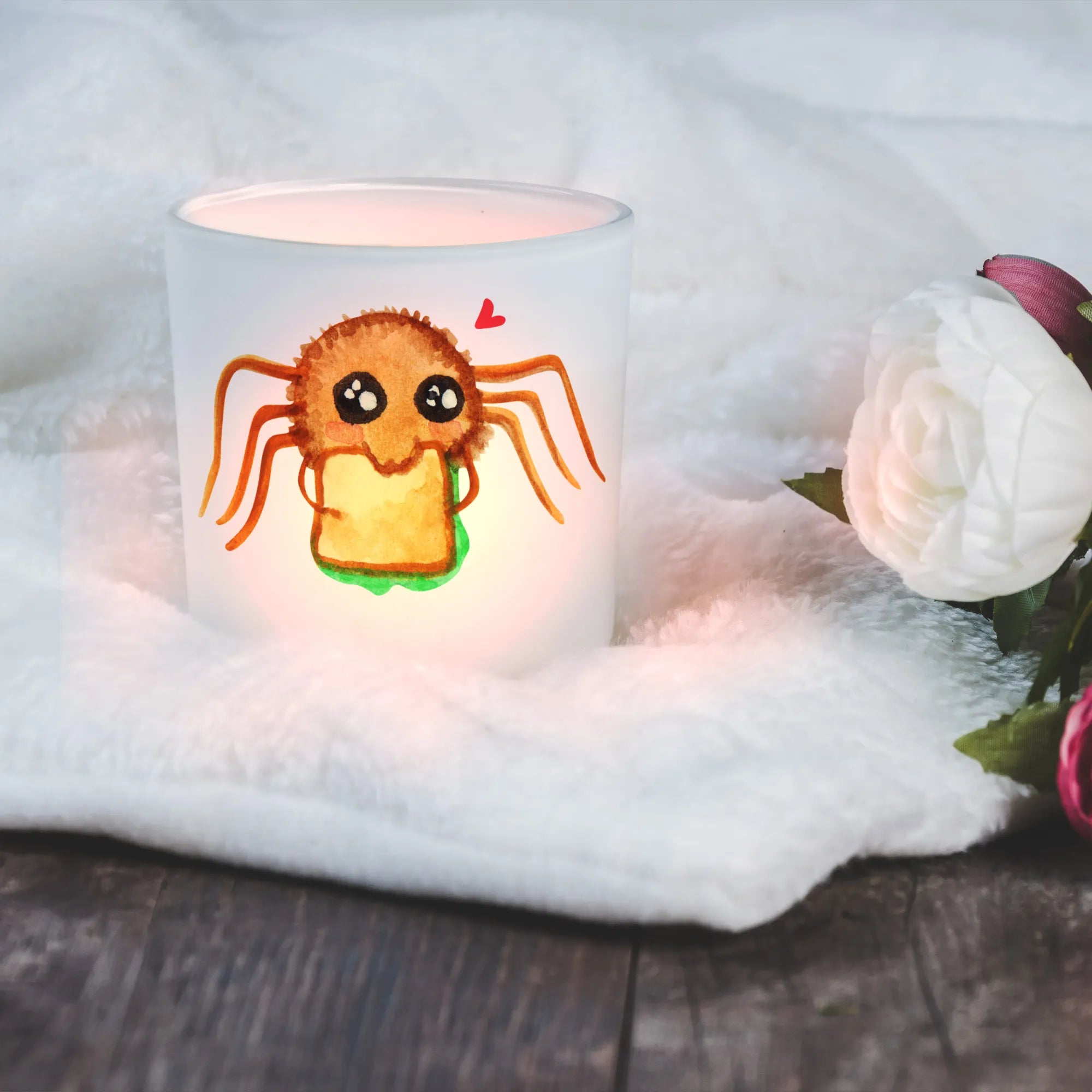 Das Design ist nicht nur schön, sondern auch hitzebeständig und schützt die Flamme vor Wind. Eine handgezeichnete Illustration von Mrs. Panda zeigt die herzliche Spinne Agathe, die uns daran erinnert, dass wir immer hungrig nach Glück sein sollten.