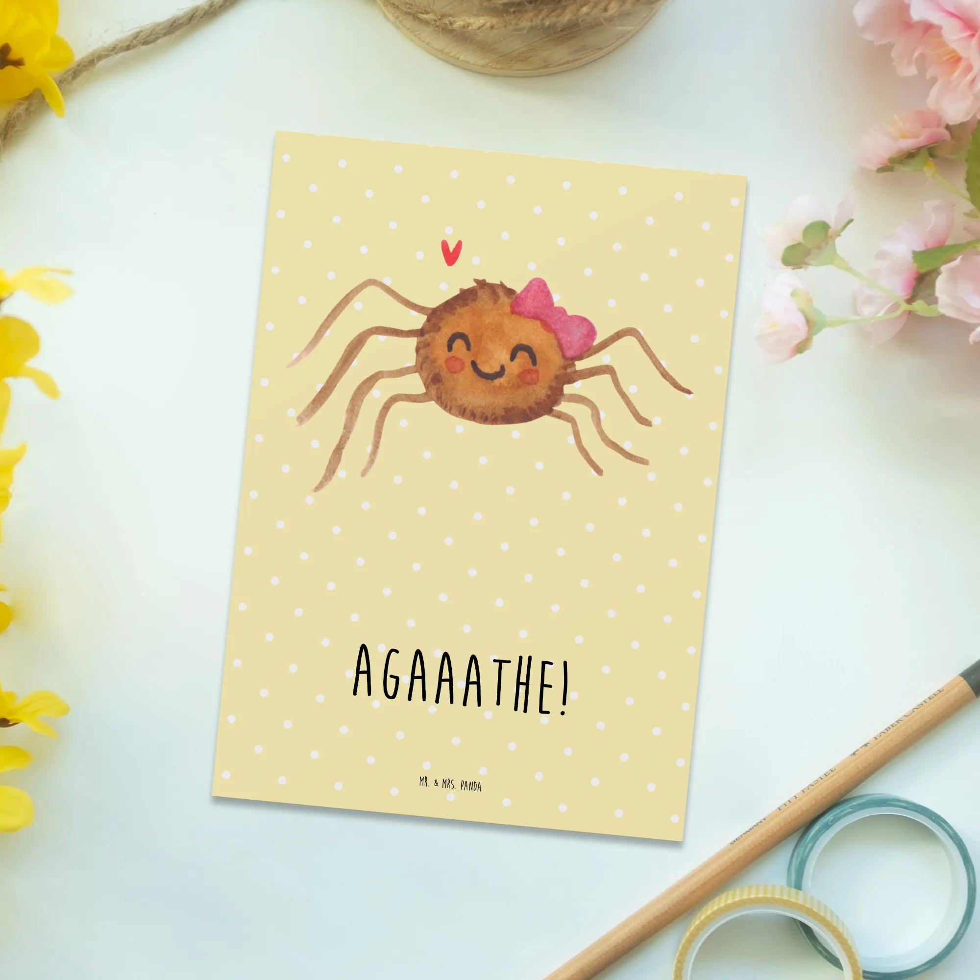 Postkarte Spinne Agathe Freude - mit Spruch - Gelb Pastell