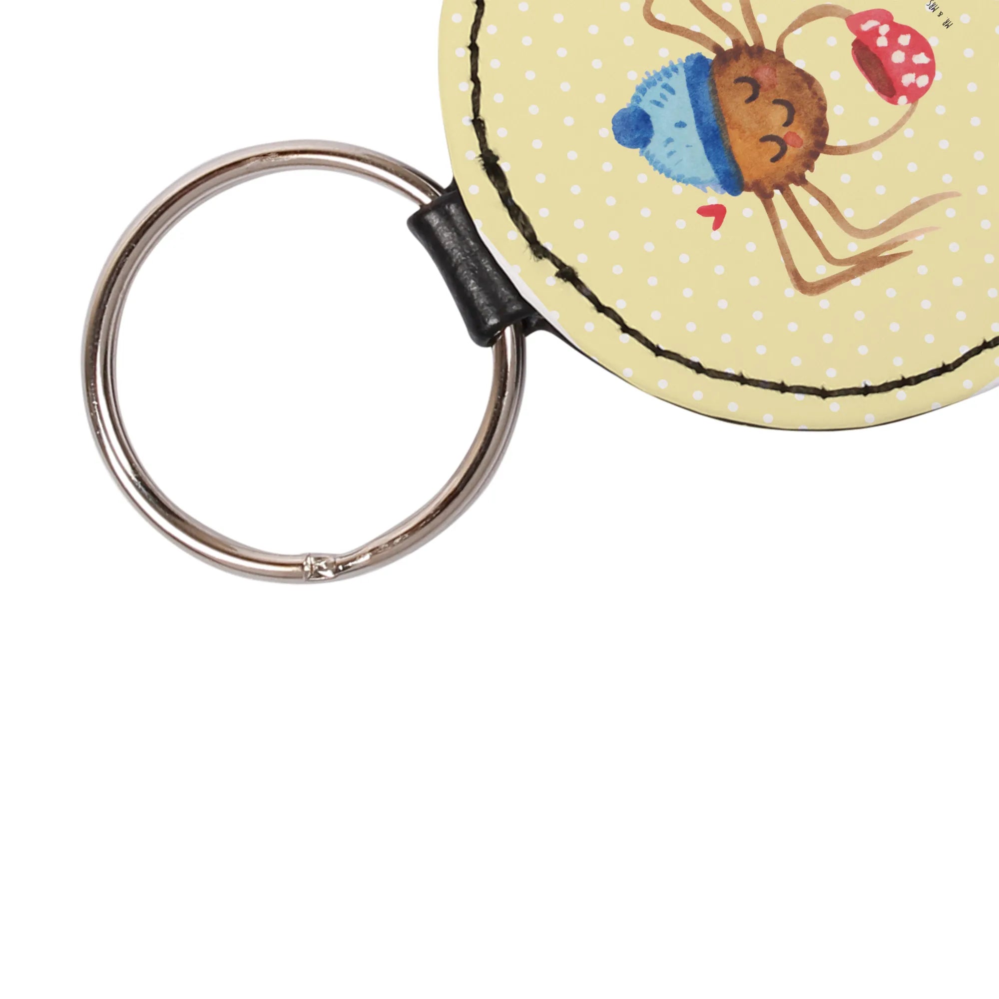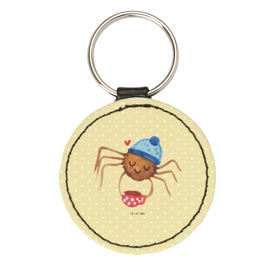 Rund Schlüsselanhänger Spinne Agathe Kaffee - Gelb Pastell