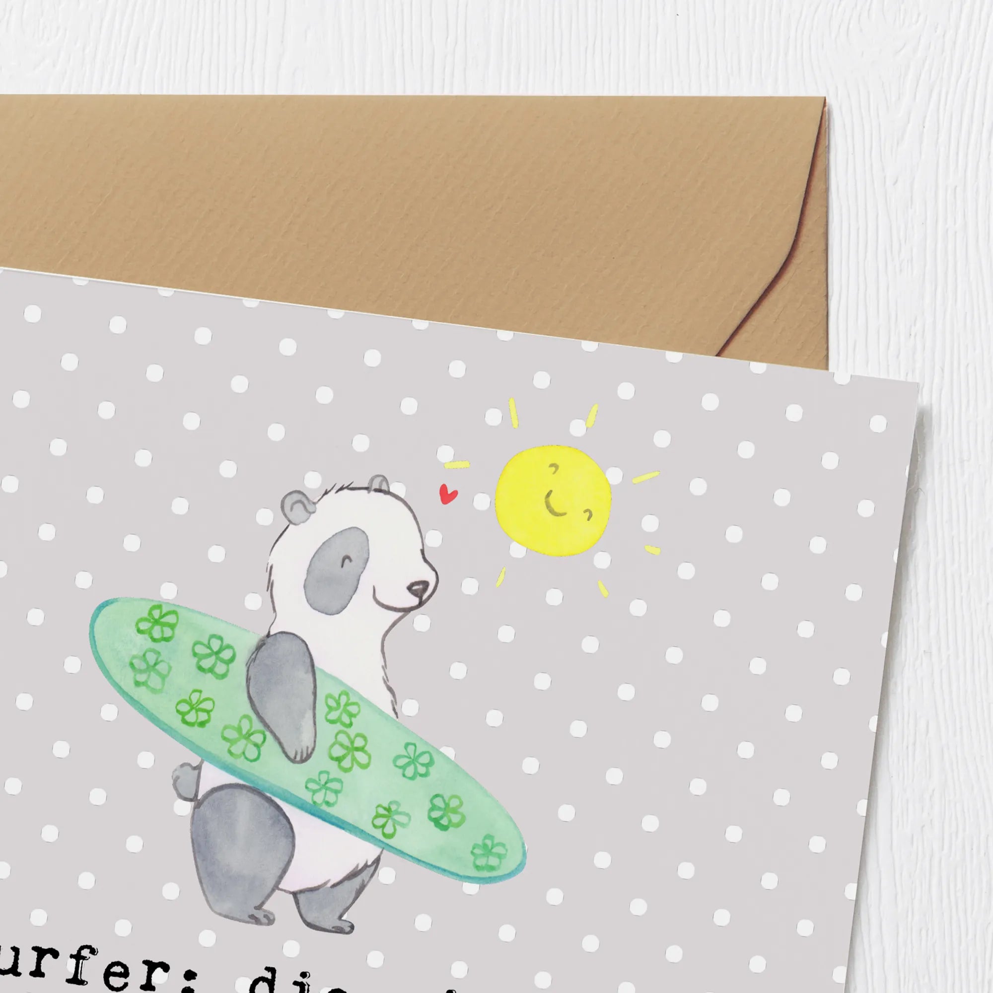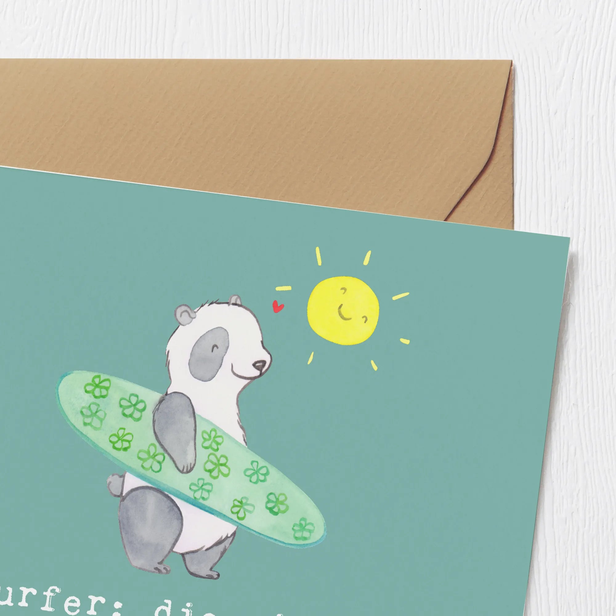 Die Deluxe Karte "Surfen" von Mr. & Mrs. Panda ist das perfekte Geschenk für jeden Sportfan und insbesondere für begeisterte Surfer. Diese wunderschöne und besonders hochwertige quadratische Karte ist mehr als nur ein Stück Papier; sie ist ein Ausdruck von Liebe, Begeisterung und ganz persönlichen Grüßen.