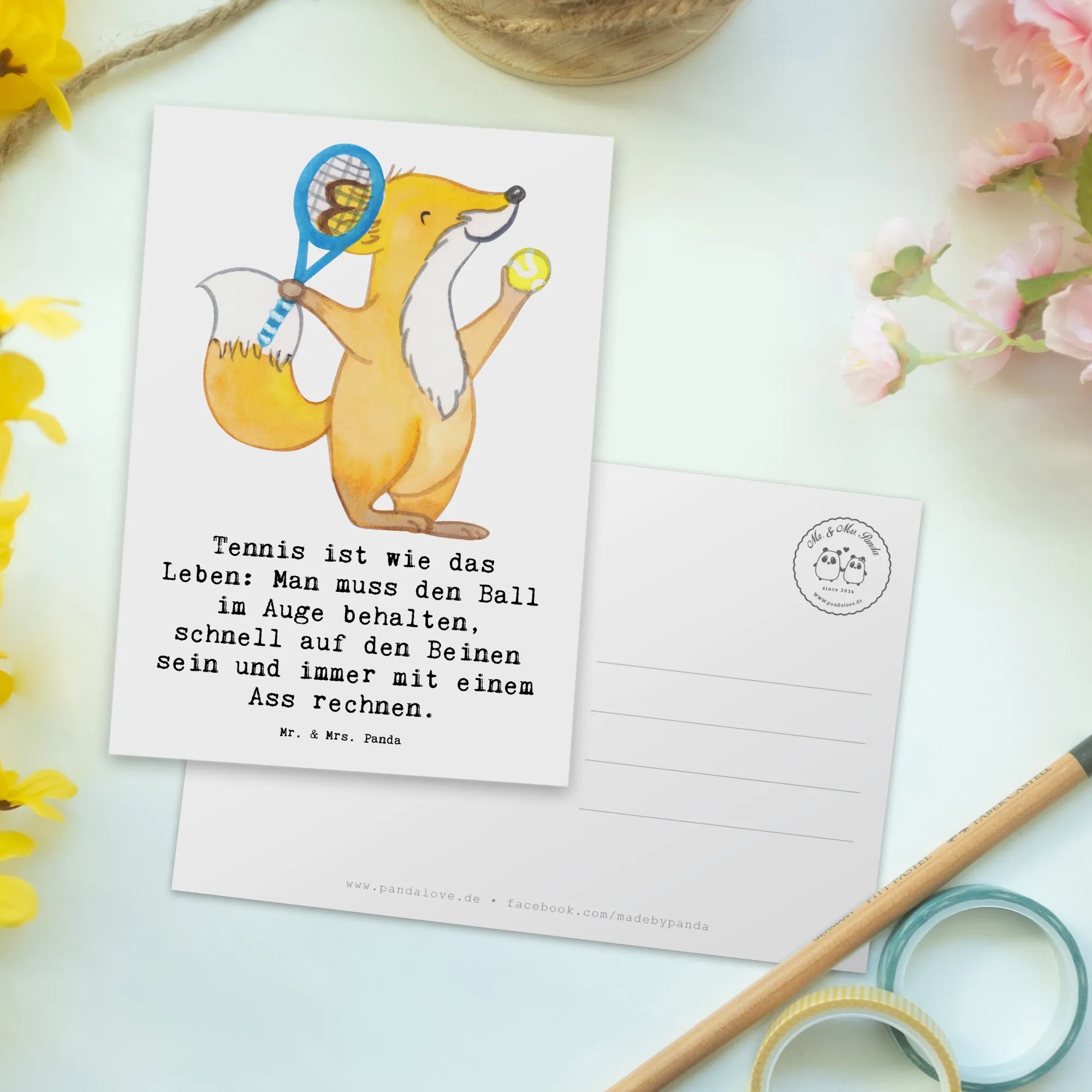 Diese wunderschöne Postkarte von Mr. & Mrs. Panda ist das perfekte Geschenk für alle Tennisliebhaber und Sportbegeisterte! Mit dem motivierenden Spruch "Tennis ist wie das Leben: Man muss den Ball im Auge behalten, schnell auf den Beinen sein und immer mit einem Ass rechnen." versprüht diese Karte einen lebendigen Charme, der nicht nur ein Lächeln zaubert, sondern auch Inspiration bietet.
