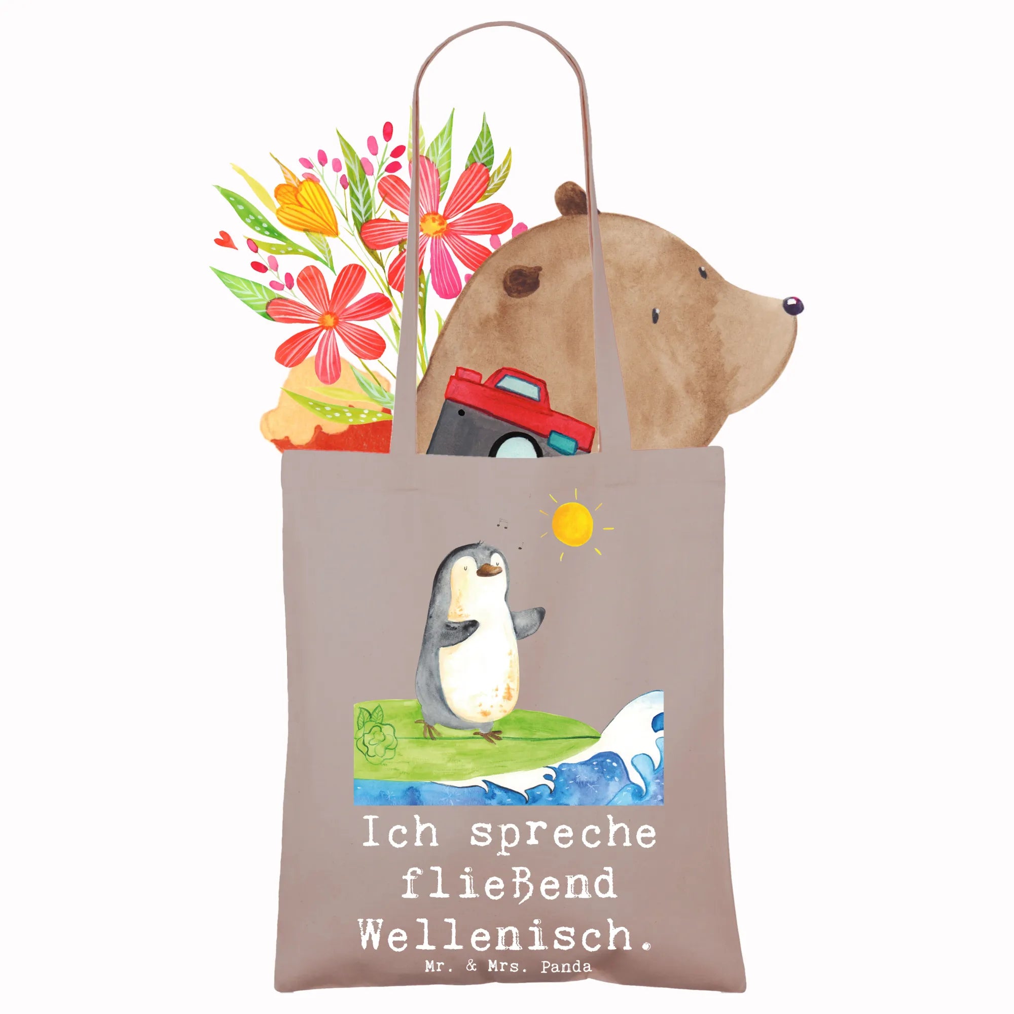 Du bist auf der Suche nach dem perfekten Geschenk für deinen sportbegeisterten Freund oder die Sportlerin in deinem Leben? Unsere Tragetasche "Surfen" aus der besonderen Sportarten-Kollektion von Mr. & Mrs. Panda ist die optimale Wahl!