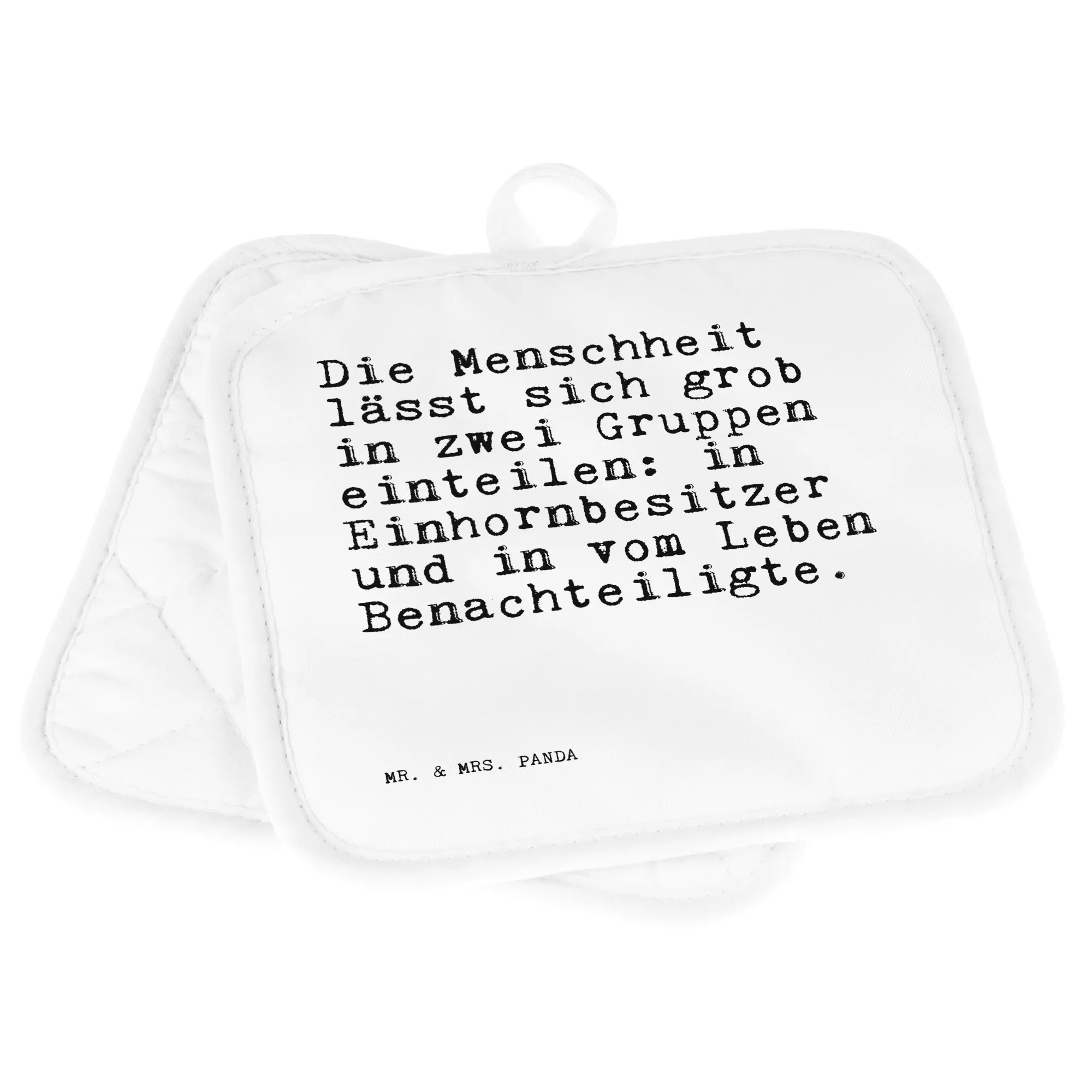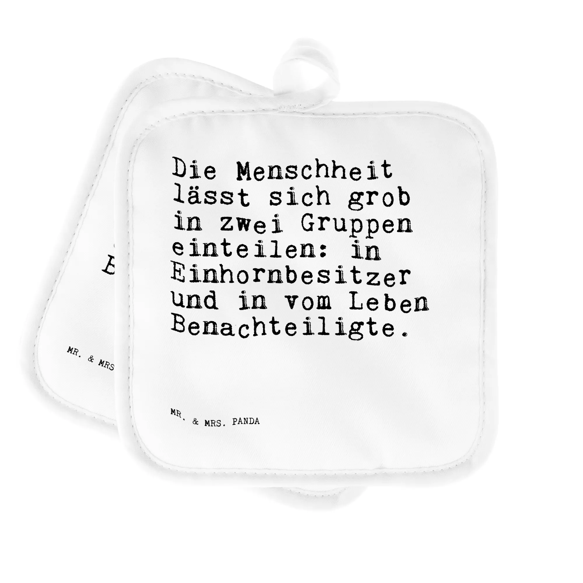 2er Set Topflappen Sprüche und Zitate Die Menschheit lässt sich grob in zwei Gruppen einteilen: in Einhornbesitzer und in vom Leben Benachteiligte.