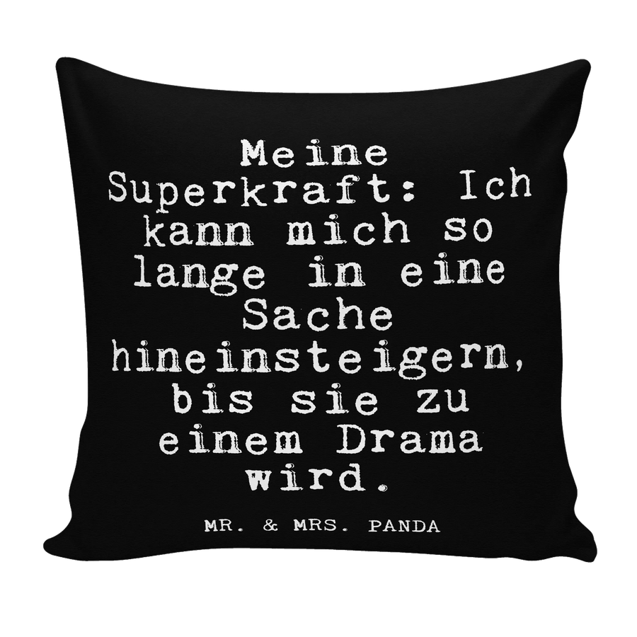 Kissen sind mehr als nur weiche Gegenstände, sie sind ein Stück Gemütlichkeit, das Deinen Raum aufhellt und Deine Seele umarmt! Unsere wunderbare Kissenhülle 'Meine Superkraft: Ich kann mich so lange in eine Sache hineinsteigern, bis sie zu einem Drama wird.' ist das perfekte Geschenk für all Deine Freunde, die das Leben mit einem Augenzwinkern und viel Humor genießen.