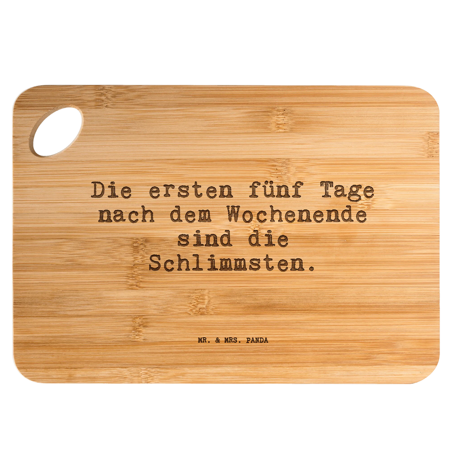 Du suchst das perfekte Geschenk für einen Freund, ein Familienmitglied oder einfach für dich selbst? Das Bambus-Schneidebrett von Mr. & Mrs. Panda ist genau das, was du brauchst! Mit einem charmanten Spruch graviert, der lautet: "Die ersten fünf Tage nach dem Wochenende sind die Schlimmsten." bringt dieses Küchenbrett nicht nur Freude, sondern auch einen Hauch von Humor in deine Küche.