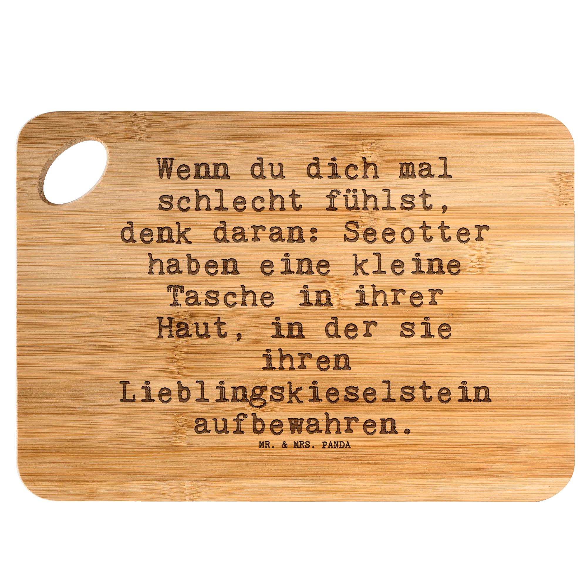 Bambus - Schneidebrett mit dem süßen Spruch "Wenn du dich mal schlecht fühlst, denk daran: Seeotter haben eine kleine Tasche in ihrer Haut, in der sie ihren Lieblingskieselstein aufbewahren." ist das perfekte Geschenk für all diejenigen, die ein bisschen Aufmunterung in ihrem Leben brauchen.
