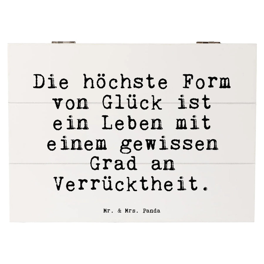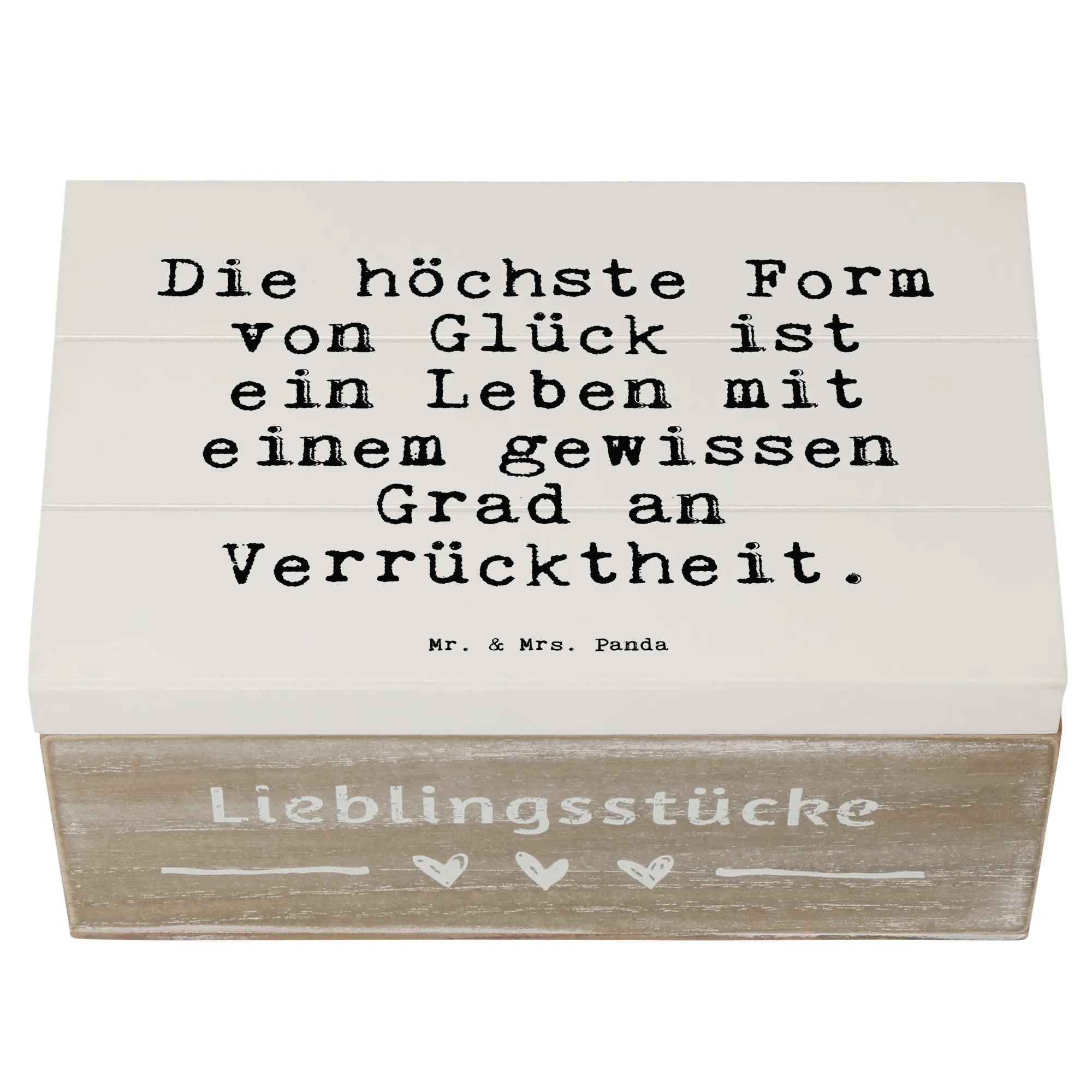 Die wunderschöne Holzkiste von Mr. & Mrs. Panda ist ein einzigartiges Geschenk, das perfekte Erinnerungen bewahrt. Diese nostalgische Erinnerungskiste, bedruckt mit dem inspirierenden Spruch 'Die höchste Form von Glück ist ein Leben mit einem gewissen Grad an Verrücktheit.', lädt dazu ein, all die kleinen Schätze, die das Leben zu bieten hat, stilvoll aufzubewahren.