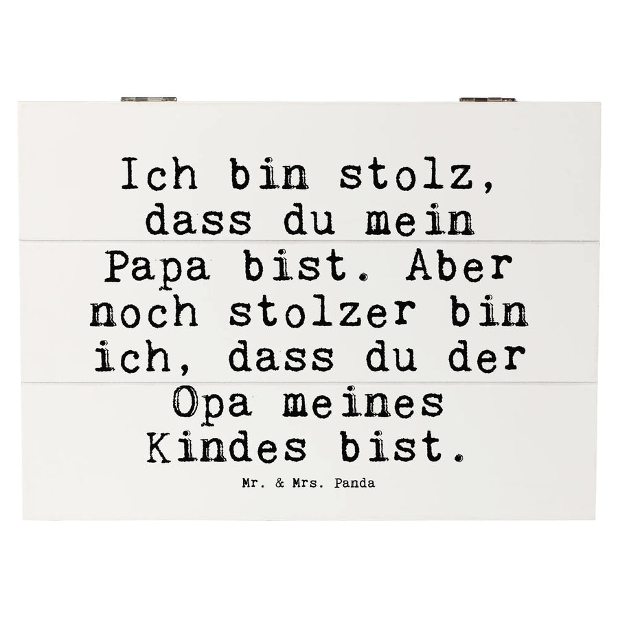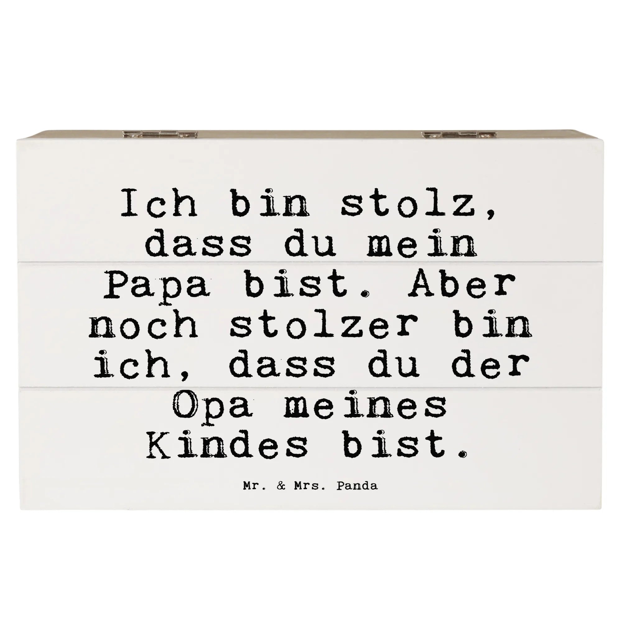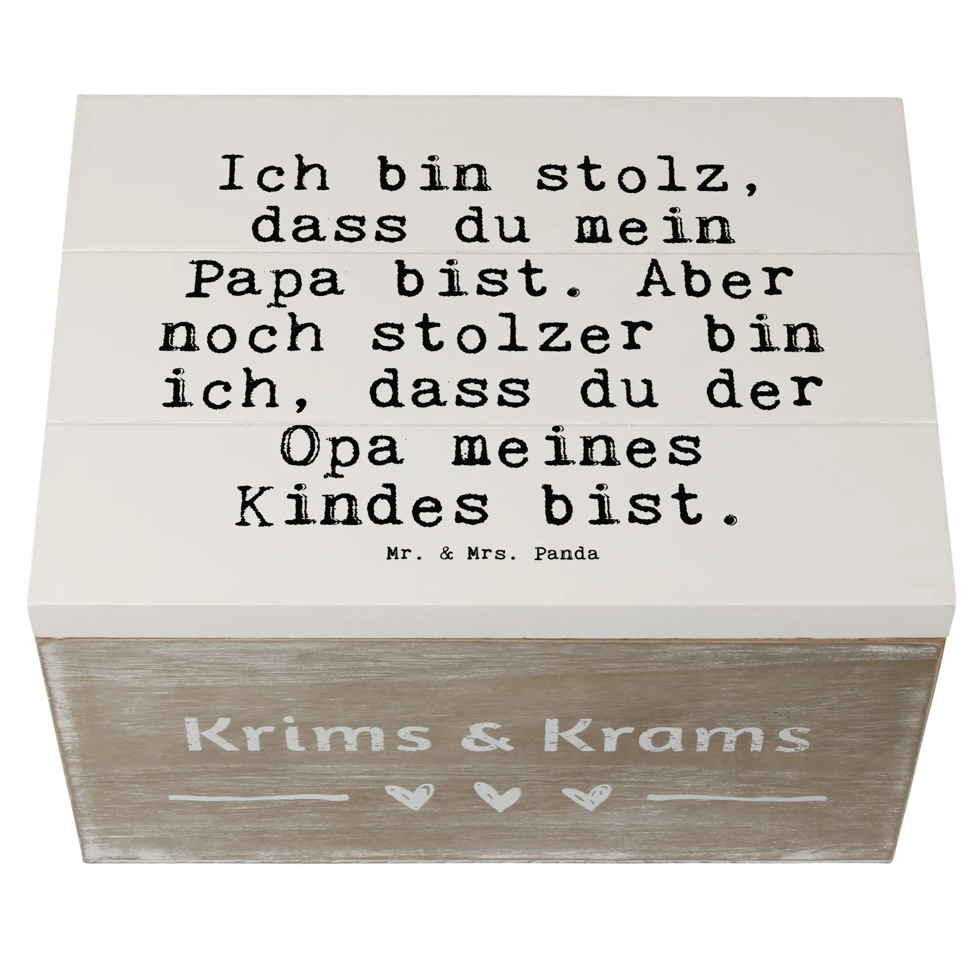 Die wunderschöne Holzkiste von Mr. & Mrs. Panda ist das perfekte Geschenk für alle, die stolz darauf sind, einen besonderen Platz in ihrem Herzen für ihren Papa oder Opa zu haben. Diese liebevoll gestaltete Erinnerungskiste trägt den berührenden Spruch: "Ich bin stolz, dass du mein Papa bist. Aber noch stolzer bin ich, dass du der Opa meines Kindes bist." und ist damit ideal, um wertvolle Erinnerungen festzuhalten.