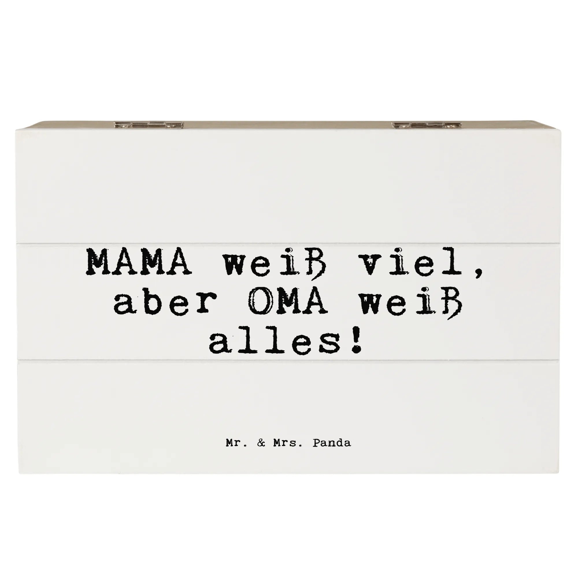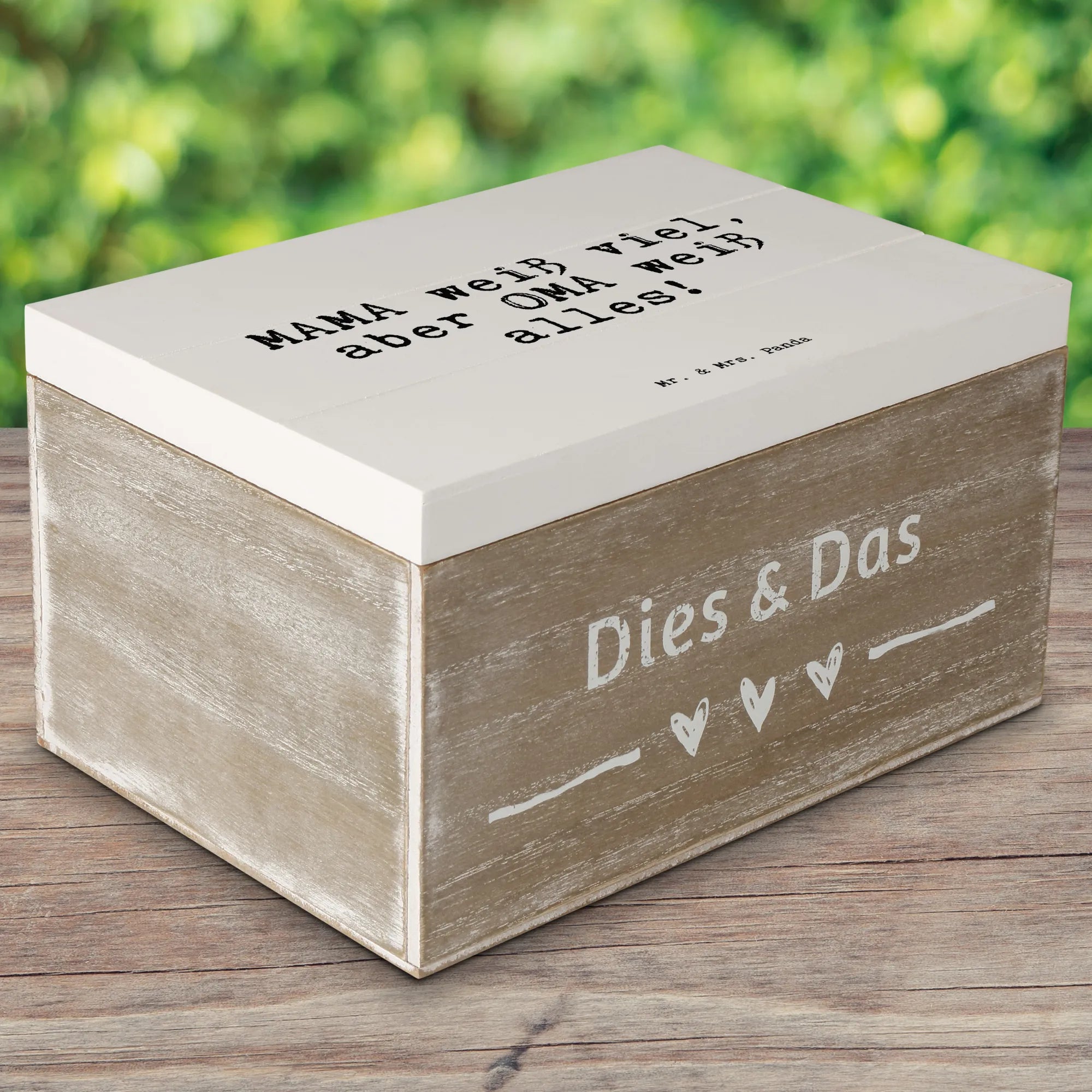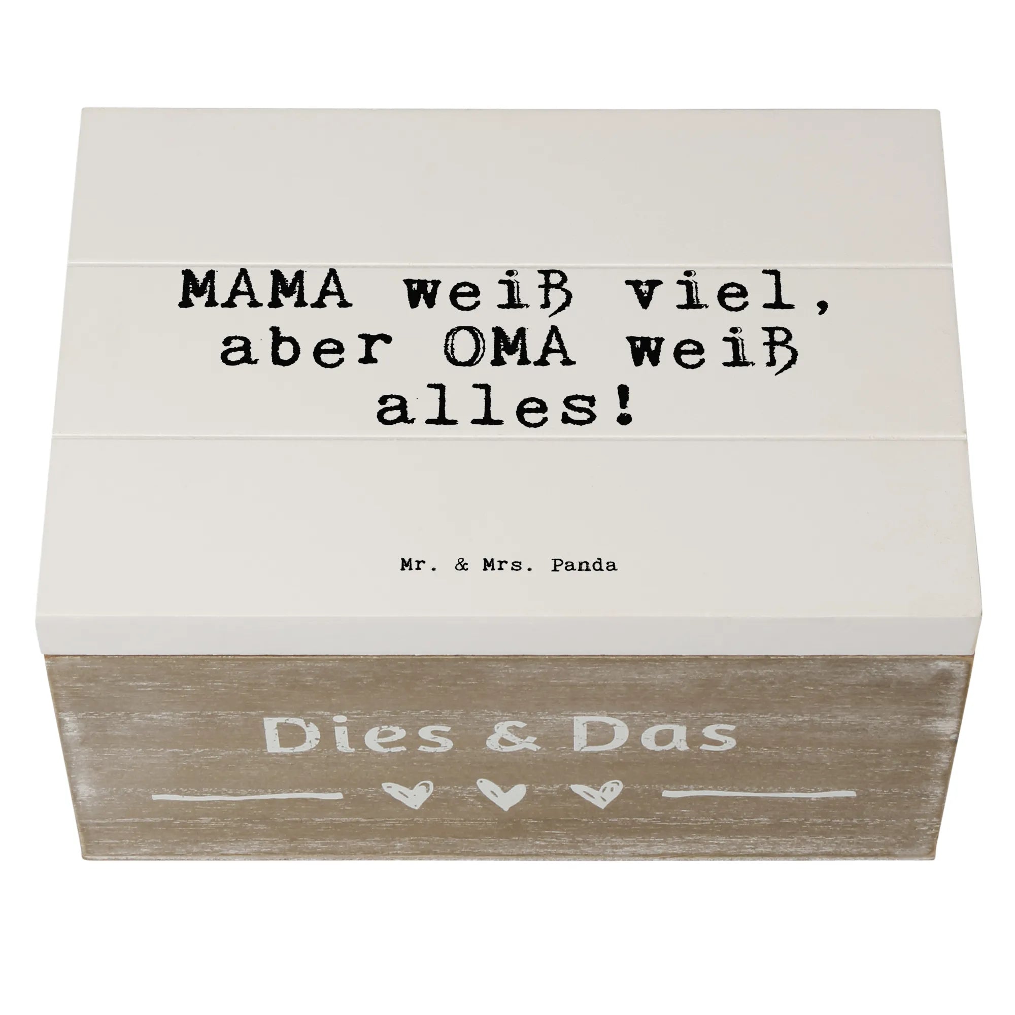 Entdecke die zauberhafte Holzkiste "MAMA weiß viel, aber OMA weiß alles!" von Mr. & Mrs. Panda. Diese wunderschöne Kiste ist nicht nur ein praktischer Aufbewahrungsort für all deine wertvollen Schätze, sondern auch ein emotionales Geschenk, das Erinnerungen lebendig hält.