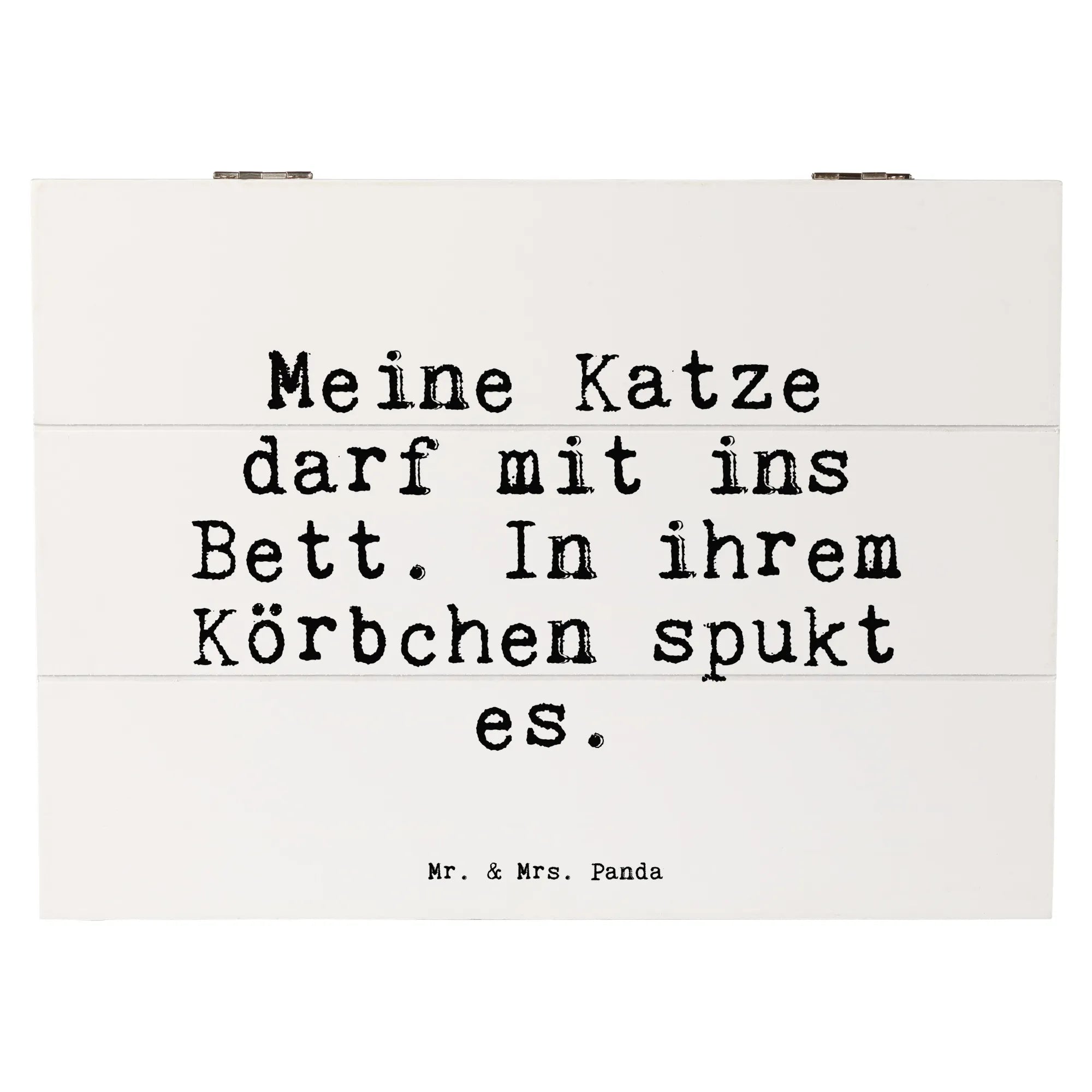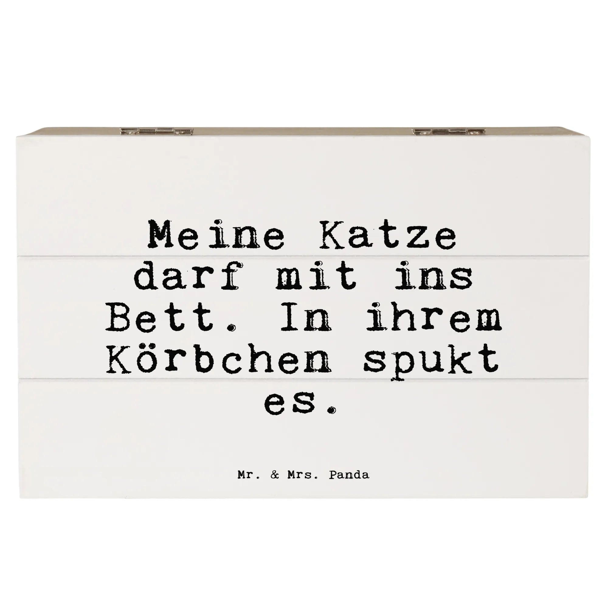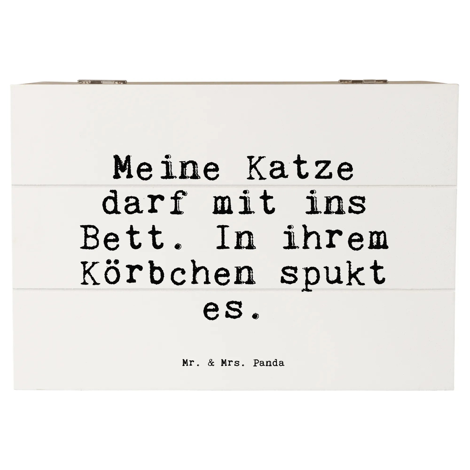 Entdecke unsere wunderschöne Holzkiste von Mr. & Mrs. Panda, die mit dem witzigen Spruch "Meine Katze darf mit ins Bett. In ihrem Körbchen spukt es." verziert ist. Diese besondere Kiste ist nicht nur ein eyecatcher, sondern bietet auch den perfekten Stauraum für Deine liebsten Schätze.