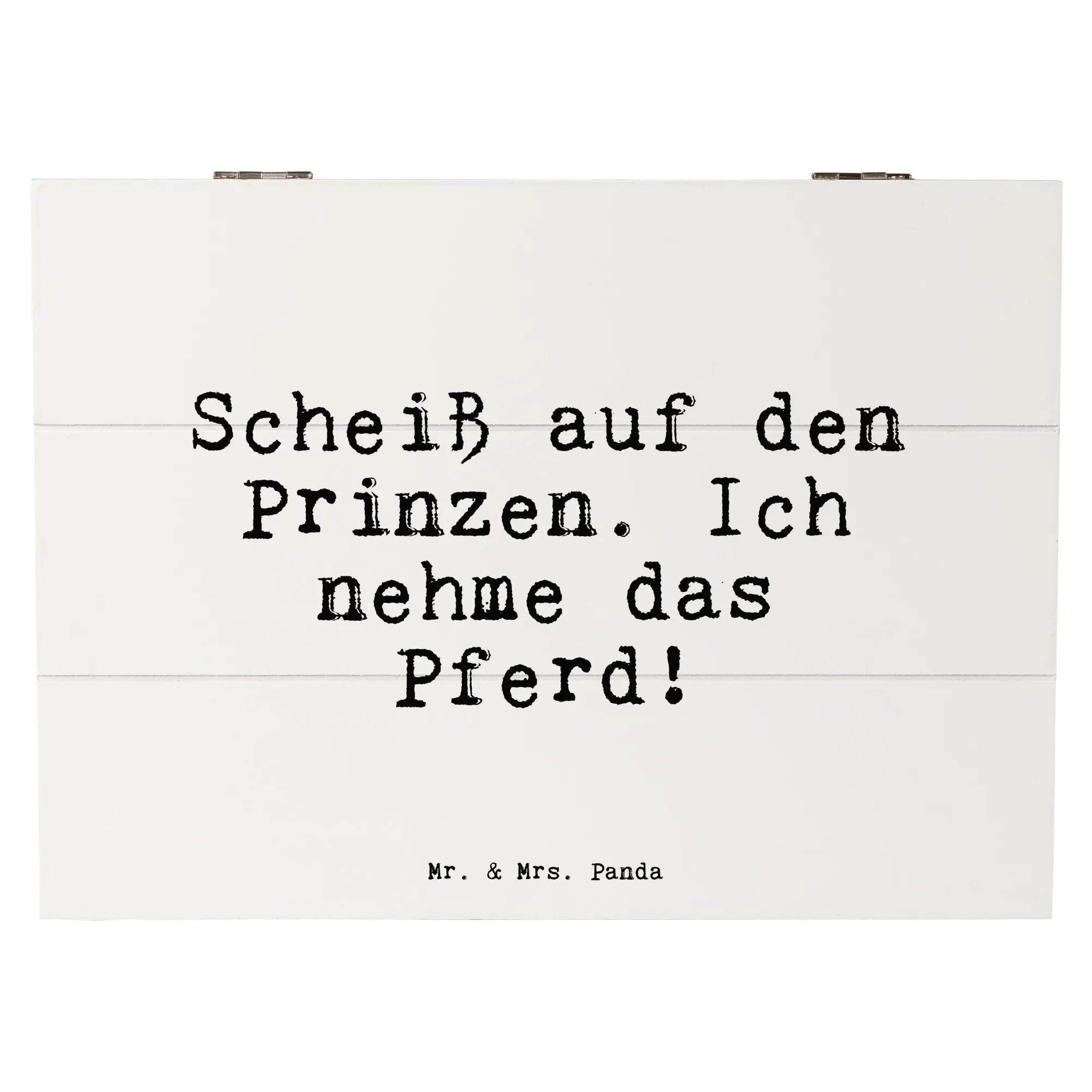 Entdecke die wunderschöne Holzkiste von Mr. & Mrs. Panda mit dem Spruch "Scheiß auf den Prinzen. Ich nehme das Pferd!". Diese einzigartige Kiste ist die perfekte Aufbewahrungslösung für all deine persönlichen Schätze und Erinnerungen.