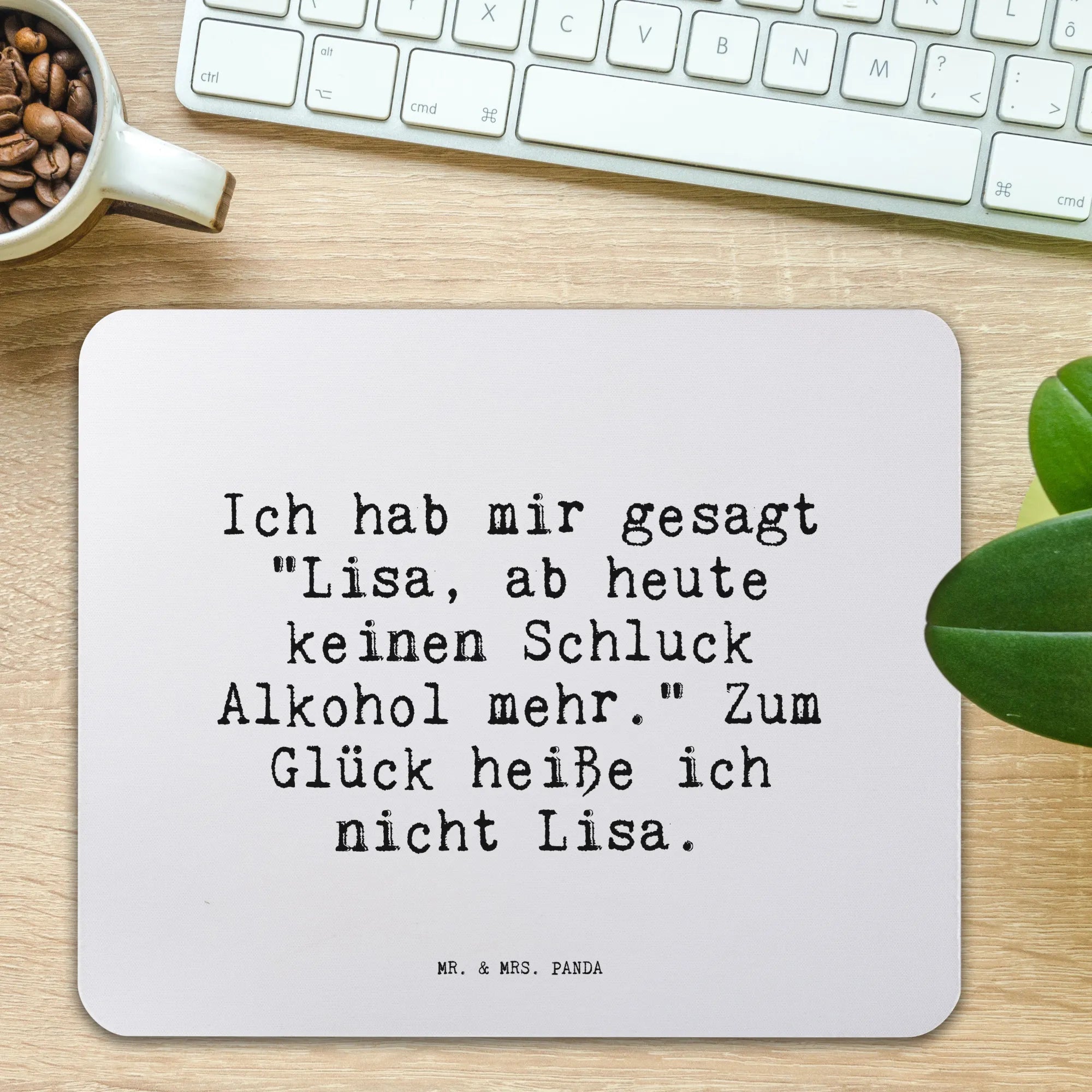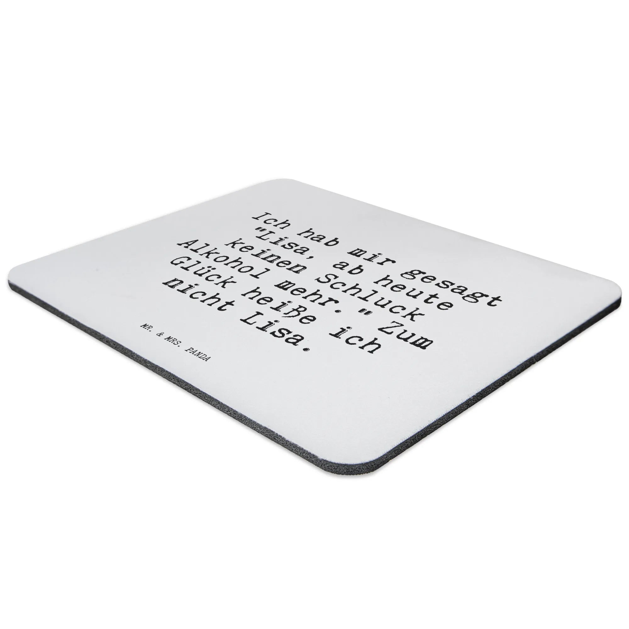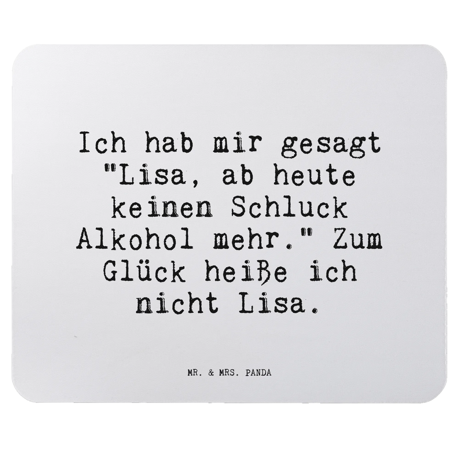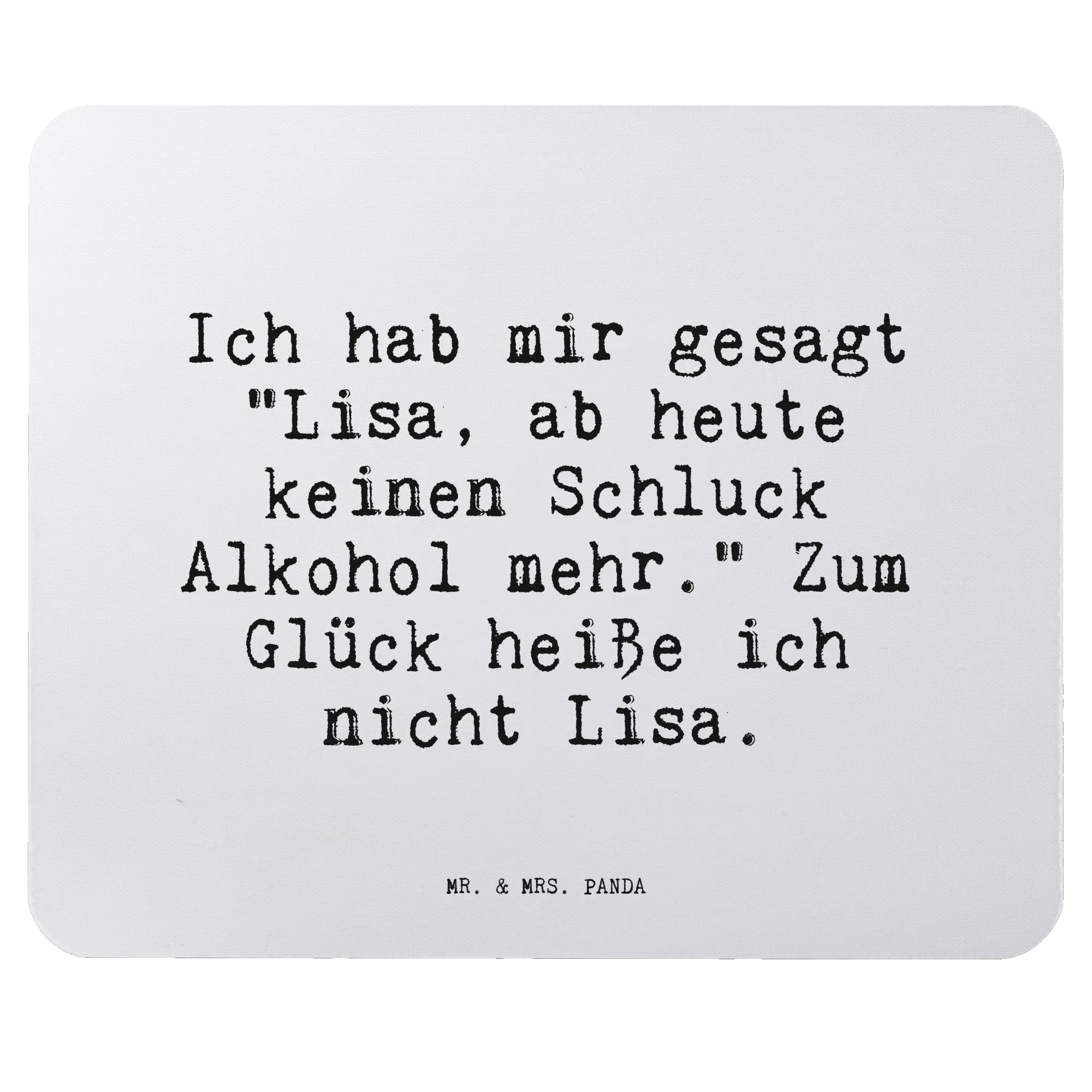 Suchst du nach dem perfekten Geschenk für deine beste Freundin oder den besten Freund? Dann ist das Mauspad "Ich hab mir gesagt 'Lisa, ab heute keinen Schluck Alkohol mehr.' Zum Glück heiße ich nicht Lisa." von Mr. & Mrs. Panda genau das, was du brauchst! Mit diesem einzigartigen Mauspad bringst du Humor und Stil in jedes Büro oder Homeoffice.