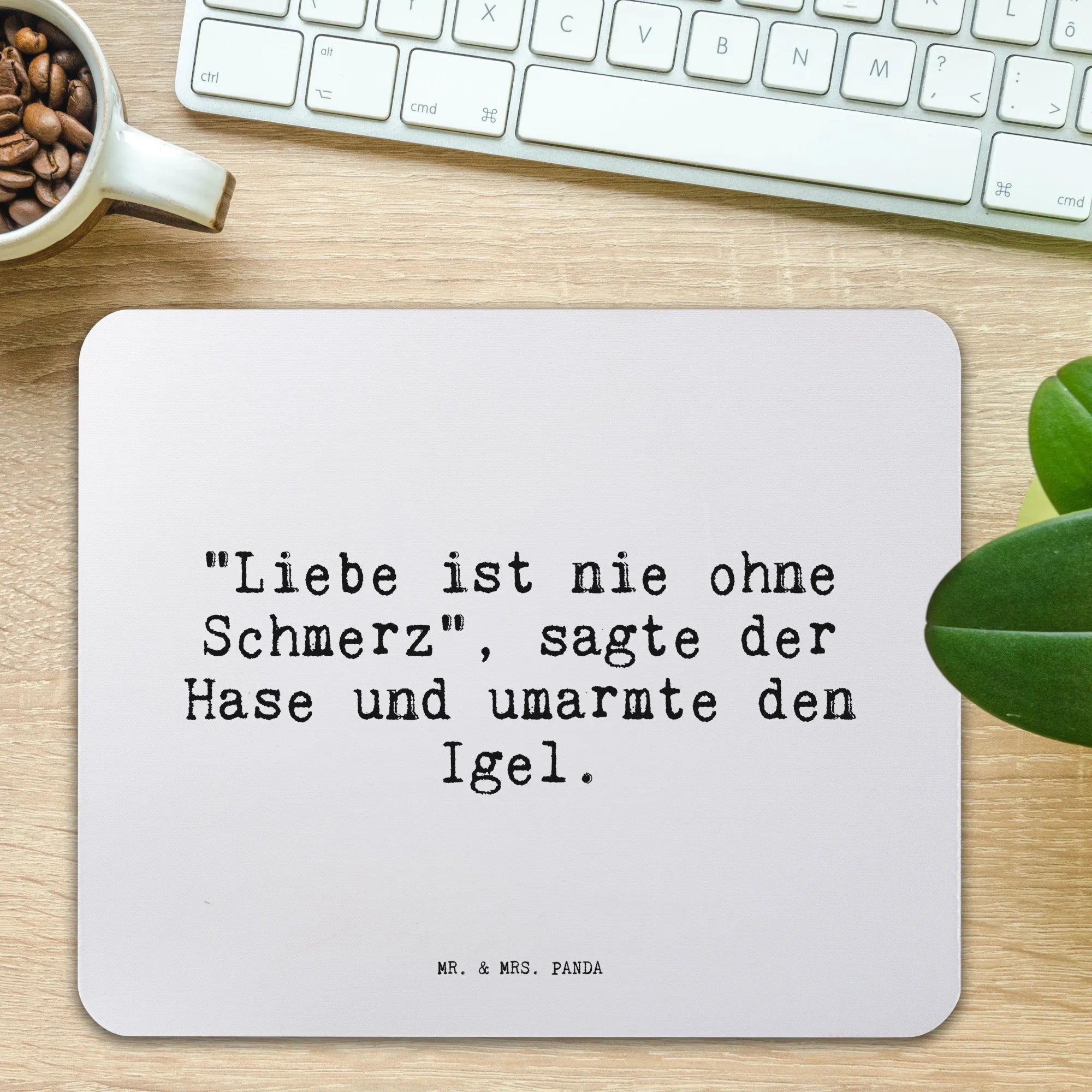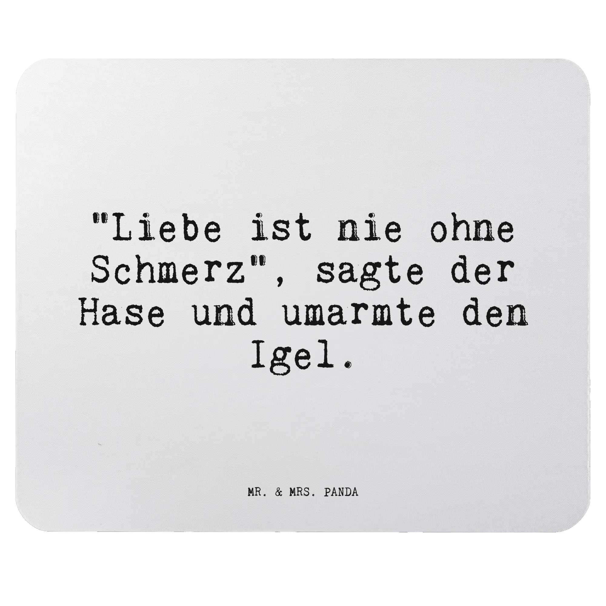 Suchst du nach einem ganz besonderen Geschenk für einen lieben Menschen oder möchtest du dir selbst eine Freude machen? Dann ist das Mauspad "Liebe ist nie ohne Schmerz, sagte der Hase und umarmte den Igel." von Mr. & Mrs. Panda genau das richtige für dich!