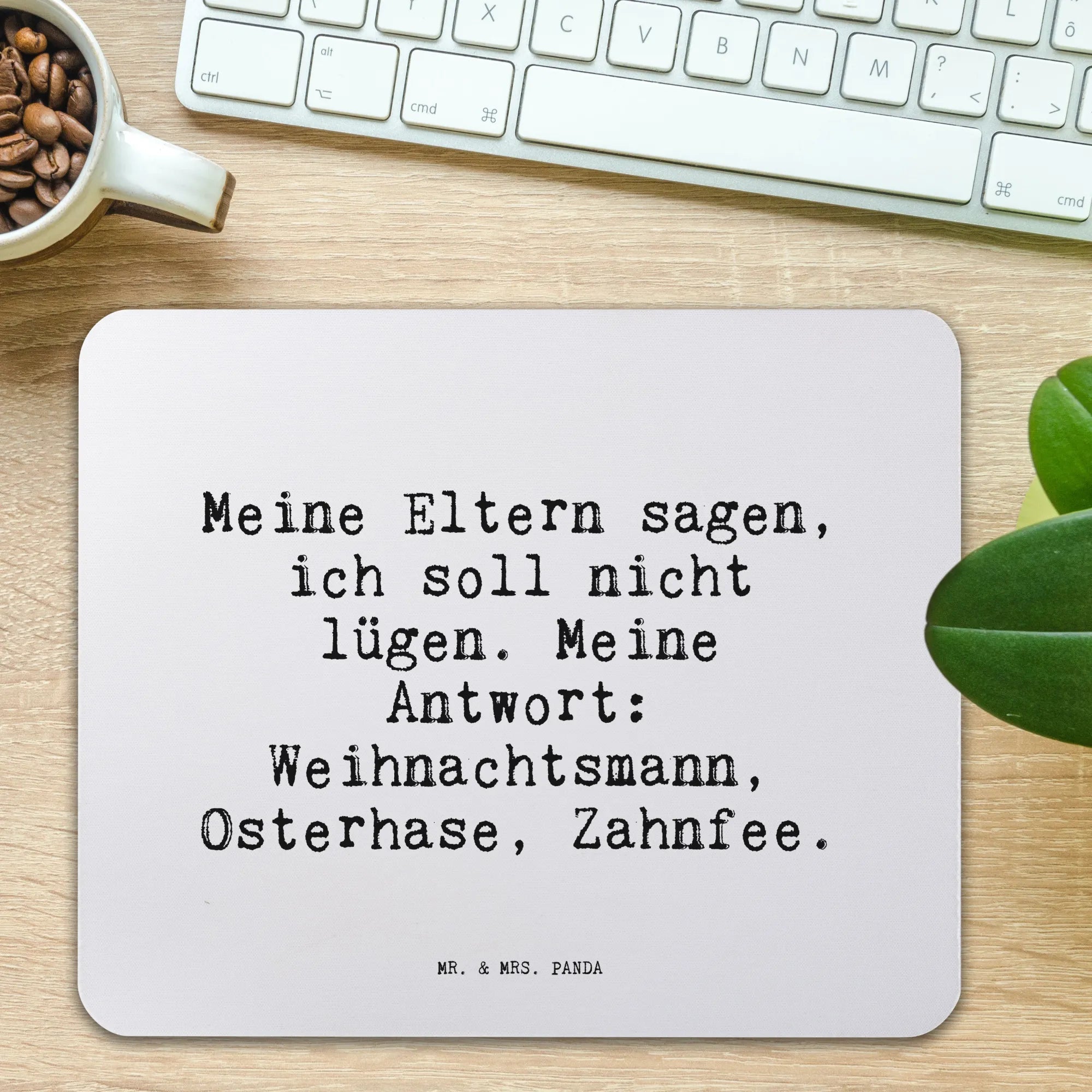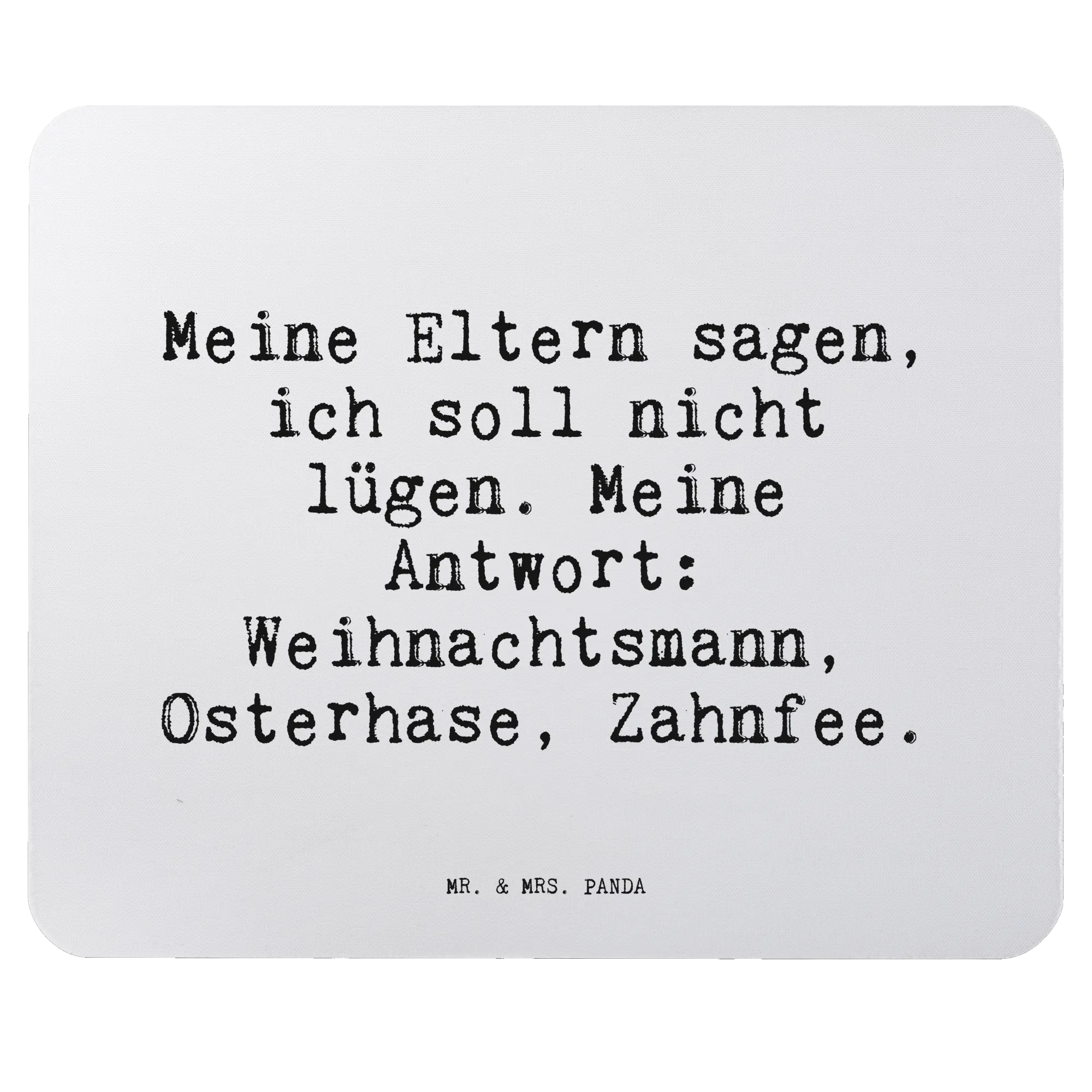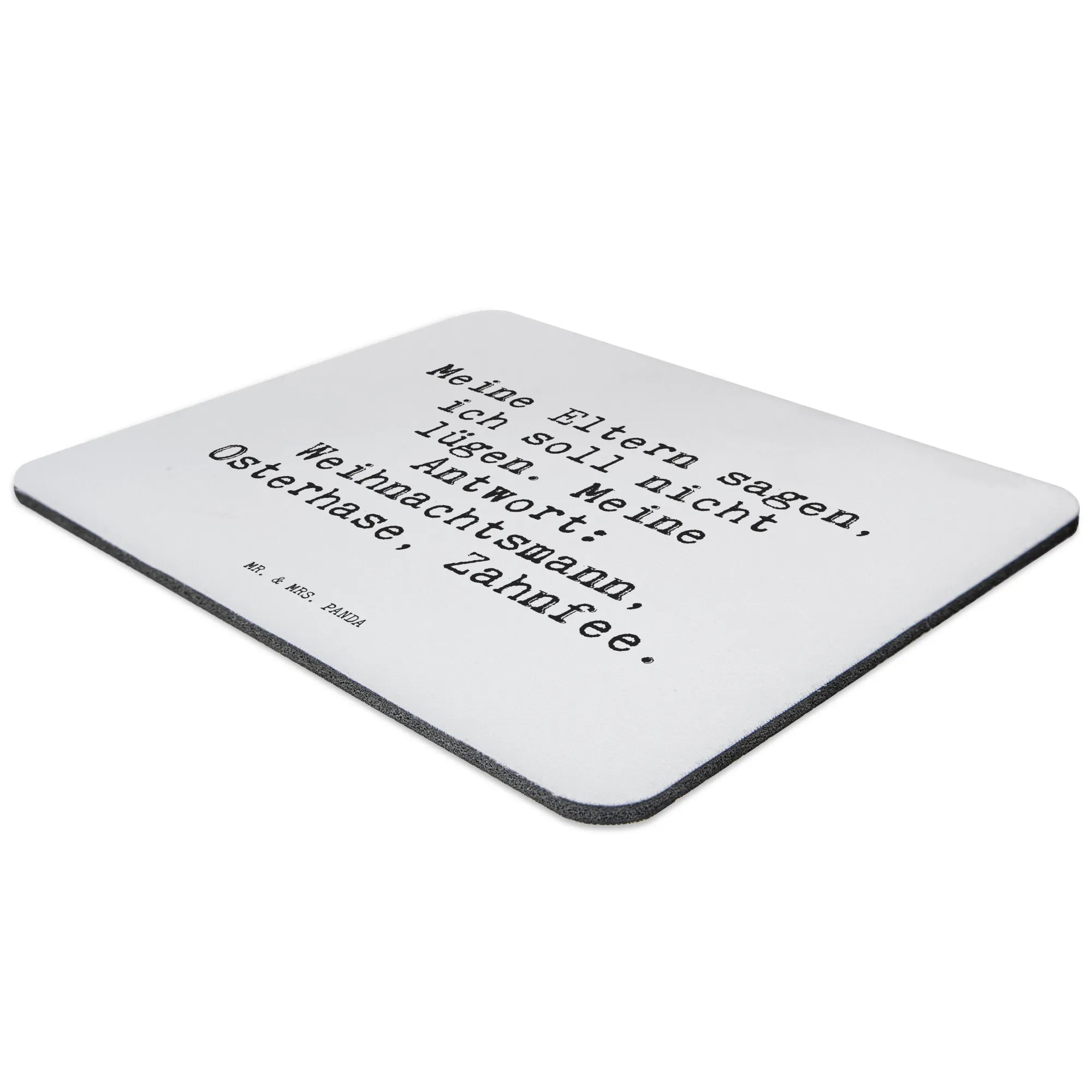 Das wunderschöne Mauspad mit dem Spruch "Meine Eltern sagen, ich soll nicht lügen. Meine Antwort: Weihnachtsmann, Osterhase, Zahnfee." von Mr. & Mrs. Panda ist der perfekte Begleiter für alle, die ein wenig Freude in ihren Büroalltag bringen möchten! Dieses einzigartige Mauspad ist nicht nur ein schöner Blickfang für dein Arbeitszimmer, sondern bietet auch einen hohen Komfort bei der Arbeit. Mit einer Größe von 240 mm x 190 mm und einer idealen Dicke von 5 mm bietet es eine angenehme Oberfläche, die handgelenkschonend und ergonomisch gestaltet ist.