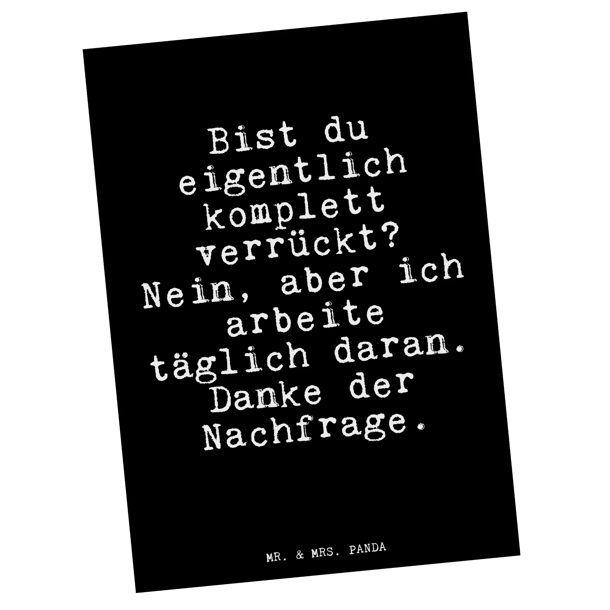 Entdecke die einzigartige Postkarte von Mr. & Mrs. Panda mit dem witzigen Spruch: "Bist du eigentlich komplett verrückt? Nein, aber ich arbeite täglich daran. Danke der Nachfrage." Diese Karte ist mehr als nur ein Stück Papier, sie ist ein kleines Geschenk voller Freude und Humor!