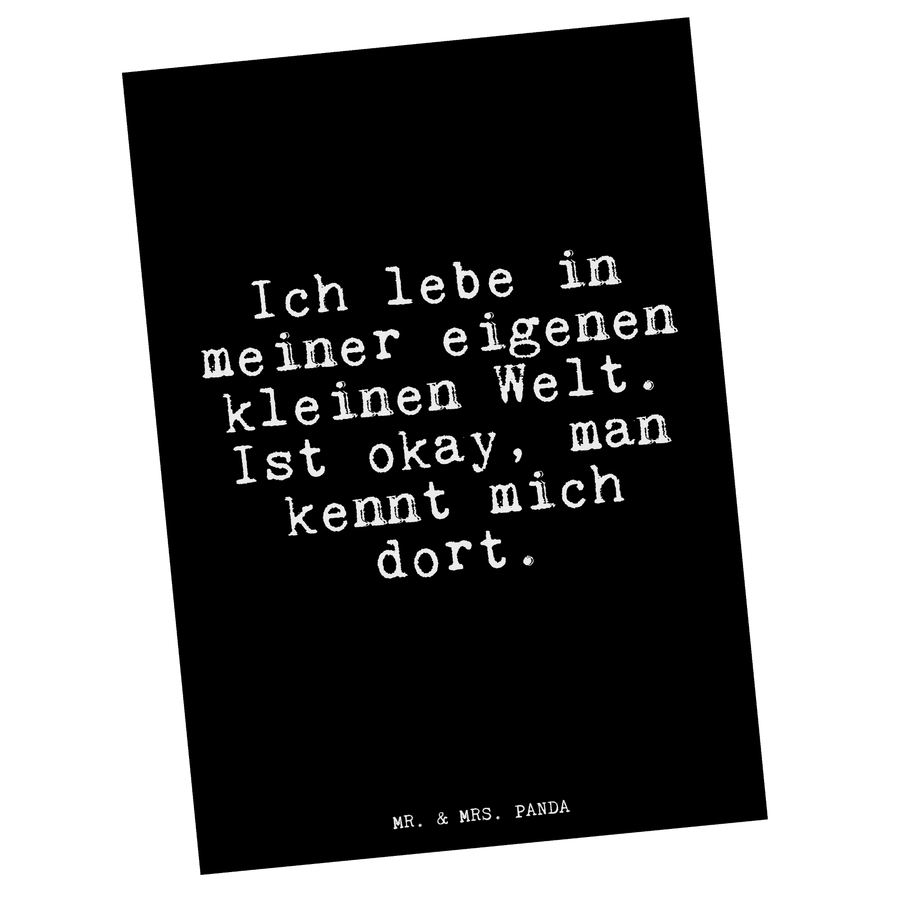Entdecke die zauberhafte Postkarte "Ich lebe in meiner eigenen kleinen Welt. Ist okay, man kennt mich dort." von Mr. & Mrs. Panda, die perfekt für all jene ist, die in ihrer eigenen Traumwelt leben und diese liebevoll mit Freunden und Familie teilen möchten. Die Karte ist nicht nur ein einfacher Gruß, sondern eine kleine Botschaft voller Lebensfreude und Humor, die jeden Tag etwas bunter macht!