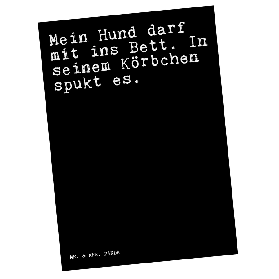 Bist du ein großer Hundeliebhaber und suchst nach dem perfekten Geschenk für einen besonderen Menschen in deinem Leben? Dann ist die Postkarte "Mein Hund darf mit ins Bett. In seinem Körbchen spukt es." von Mr. & Mrs. Panda genau das Richtige für dich! Diese einzigartige Postkarte ist nicht nur eine wunderbare Möglichkeit, deine Liebe zu deinem treuen Begleiter auszudrücken, sondern auch eine herzliche Botschaft für alle Hundebesitzer.