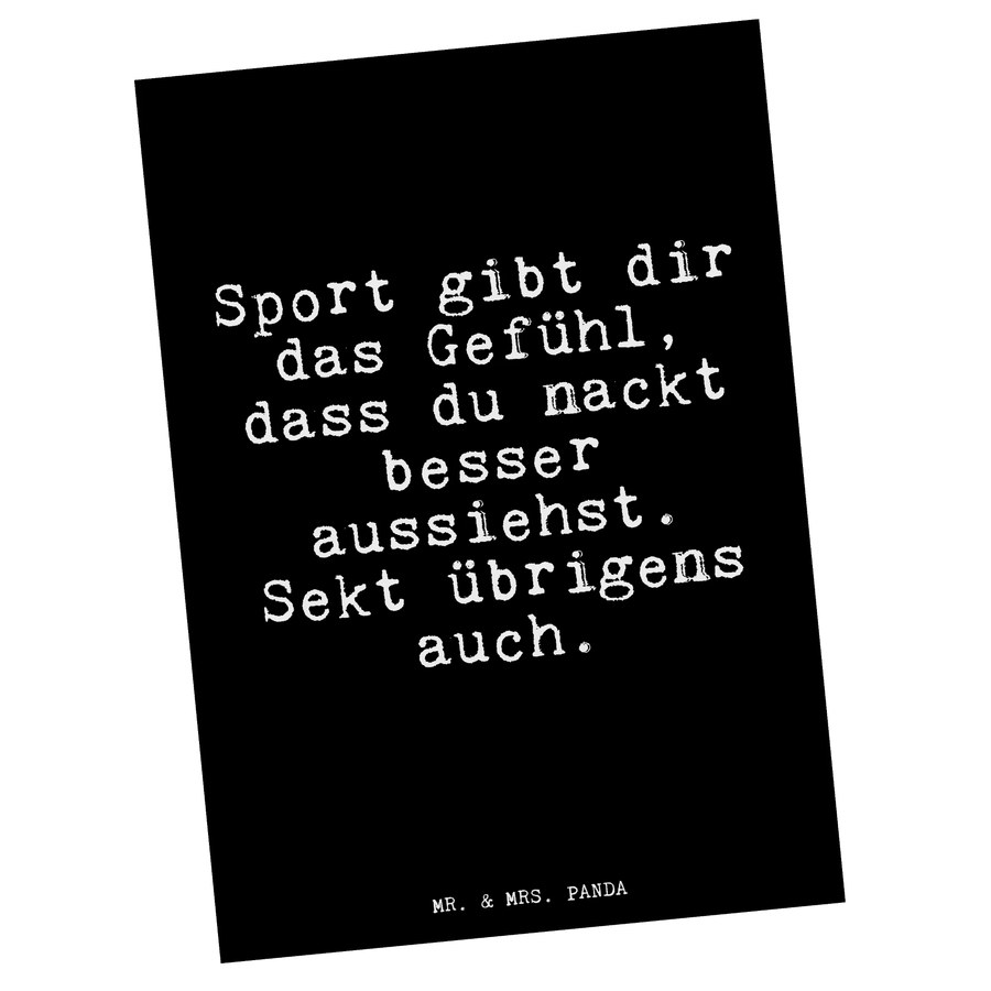 Außerdem hat sie die praktischen Maße von 150 mm x 1 mm, sodass sie in jedes Geschenk oder jedes Kuvert passt. Diese Postkarte gehört zur beliebten Spruchreif-Kollektion von Mr. & Mrs. Panda, die für ihre humorvollen und lebensfrohen Sprüche bekannt ist. Die Botschaft 'Sport gibt dir das Gefühl, dass du nackt besser aussiehst. Sekt übrigens auch.' spricht nicht nur Sportfans an, sondern auch alle, die sich gerne mal über sich selbst lustig machen.