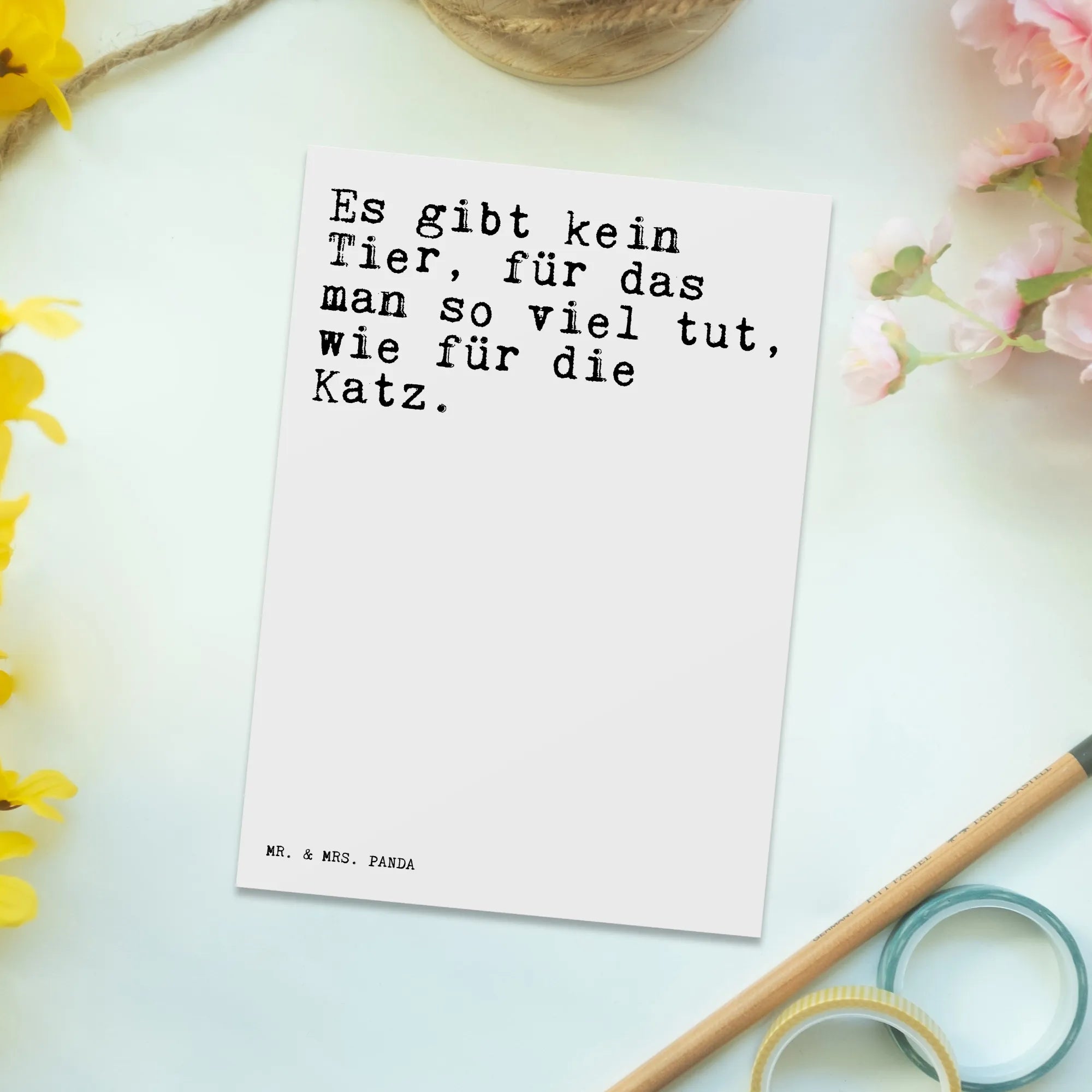 Die Postkarte "Es gibt kein Tier, für das man so viel tut, wie für die Katz" von Mr. & Mrs. Panda ist das perfekte Geschenk für alle Katzenliebhaber! Wenn du auf der Suche nach einer einzigartigen Grußkarte bist, um deinen Freunden, Familienmitgliedern oder Kollegen eine Freude zu machen, dann hast du hier genau das Richtige gefunden.