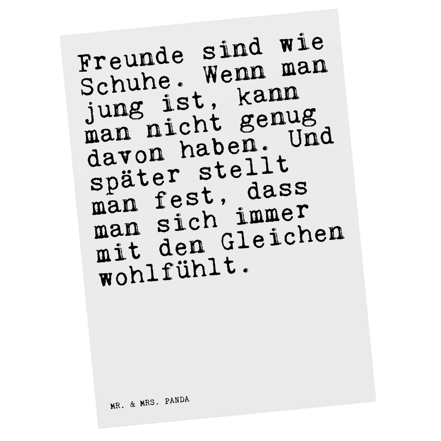 Postkarte Sprüche und Zitate Freunde sind wie Schuhe. Wenn man jung ist, kann man nicht genug davon haben. Und später stellt man fest, dass man sich immer mit den Gleichen wohlfühlt. - Weiß