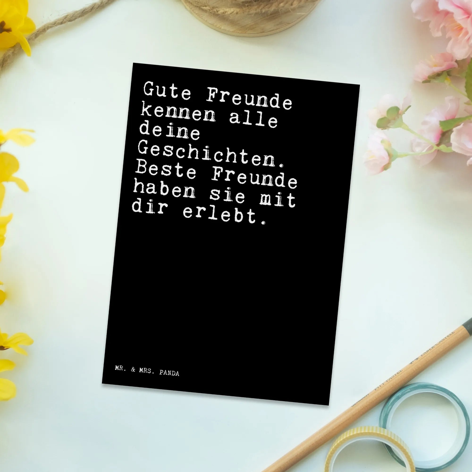 Postkarte Sprüche und Zitate Gute Freunde kennen alle deine Geschichten. Beste Freunde haben sie mit dir erlebt. - Schwarz