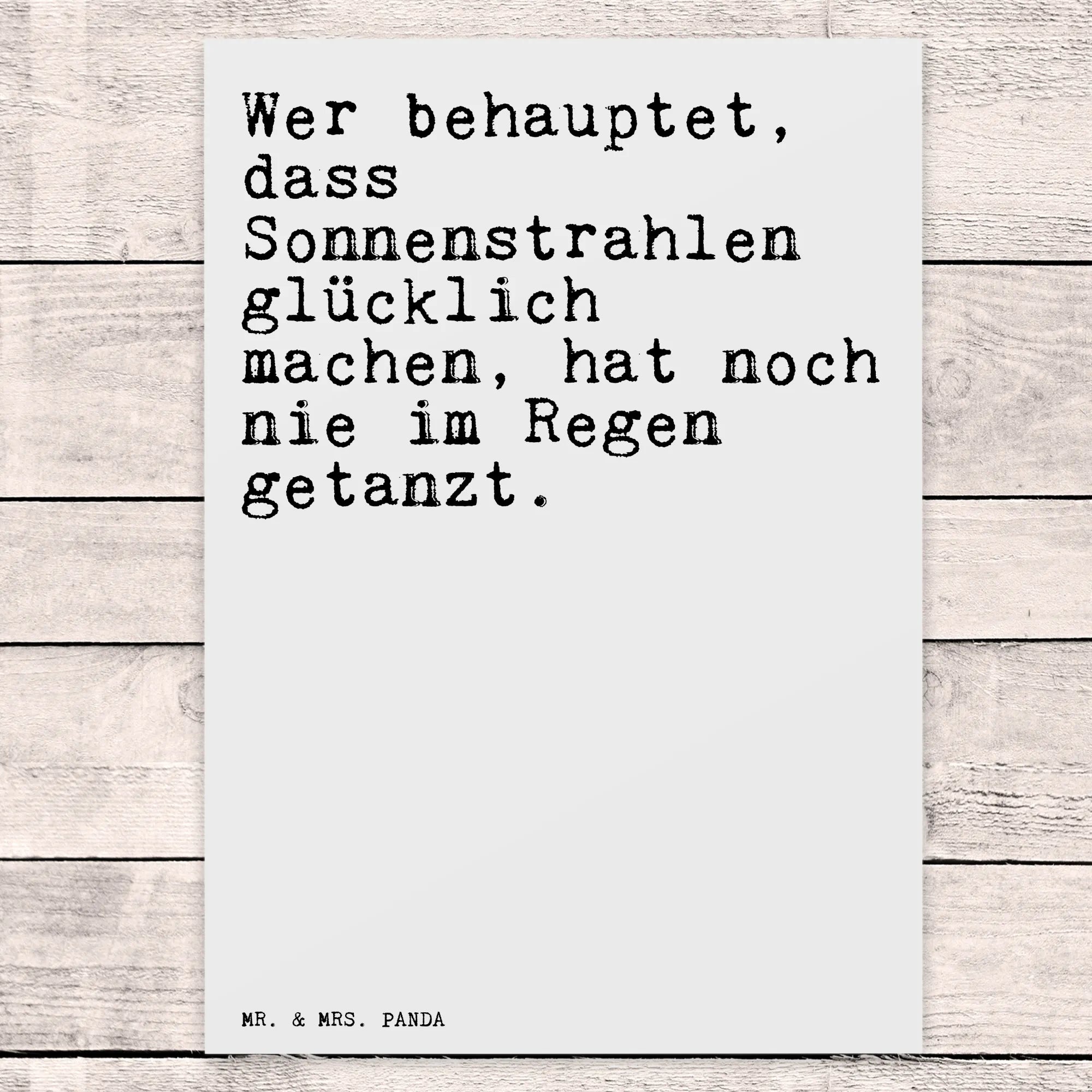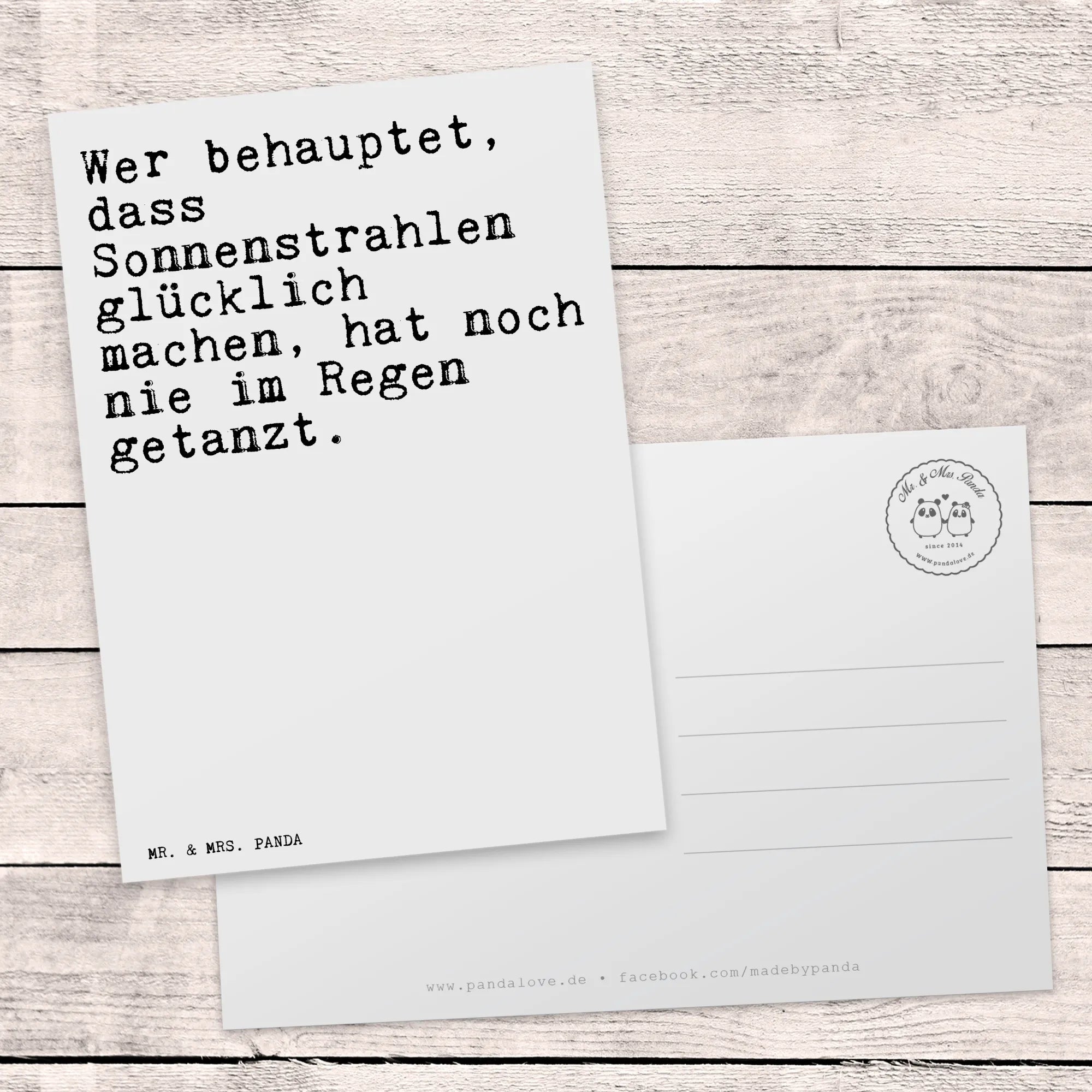 Die Postkarte "Wer behauptet, dass Sonnenstrahlen glücklich machen, hat noch nie im Regen getanzt." von Mr. & Mrs. Panda ist mehr als nur eine einfache Grußkarte – sie ist eine kleine Umarmung auf Papier! Egal, ob für einen Freund, einen Kollegen oder ein Familienmitglied, diese Karte bringt Freude und ein Lächeln in jede noch so graue Regenwolke. Die Sprüche von Mr. & Mrs. Panda sind bekannt dafür, das Auge des Betrachters zu erfreuen und gleichzeitig tiefe Wahrheiten zu transportieren.