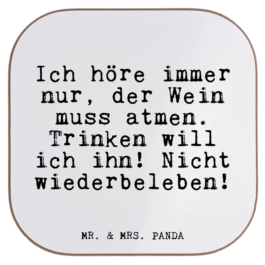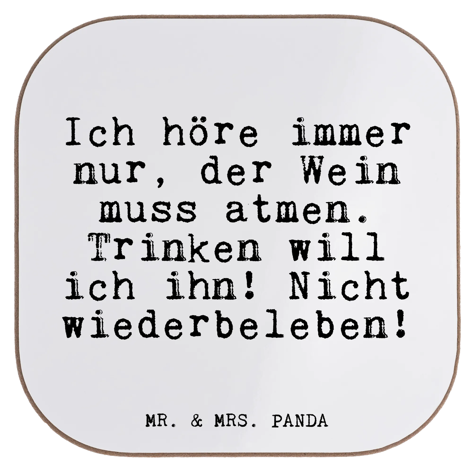 Du suchst das perfekte Geschenk für den Weinliebhaber in deinem Leben? Dann ist der Untersetzer "Ich höre immer nur, der Wein muss atmen. Trinken will ich ihn! Nicht wiederbeleben!" von Mr. & Mrs. Panda genau das Richtige!