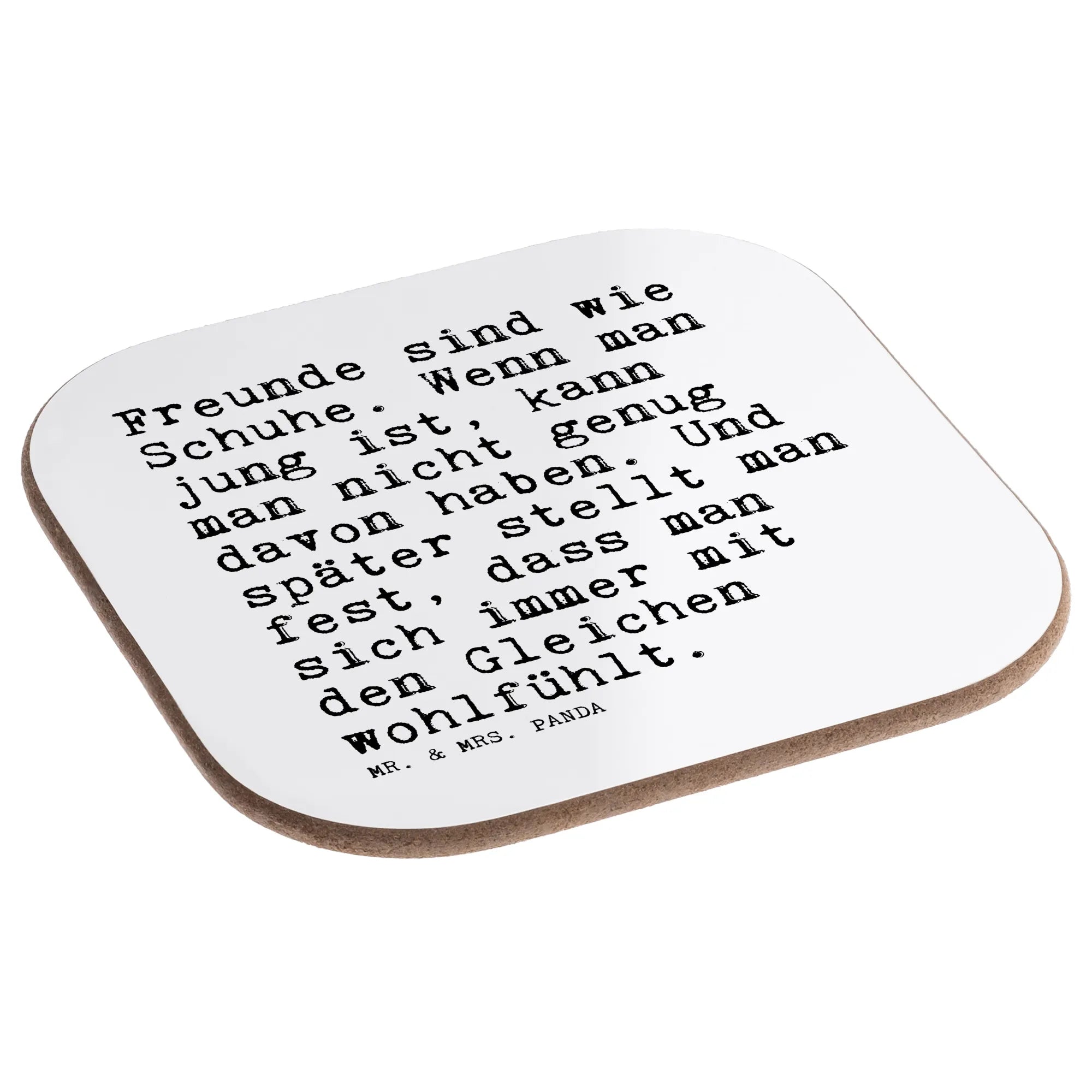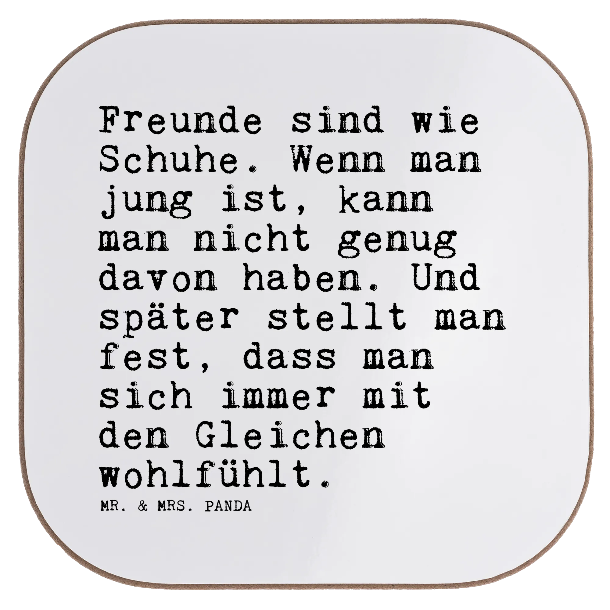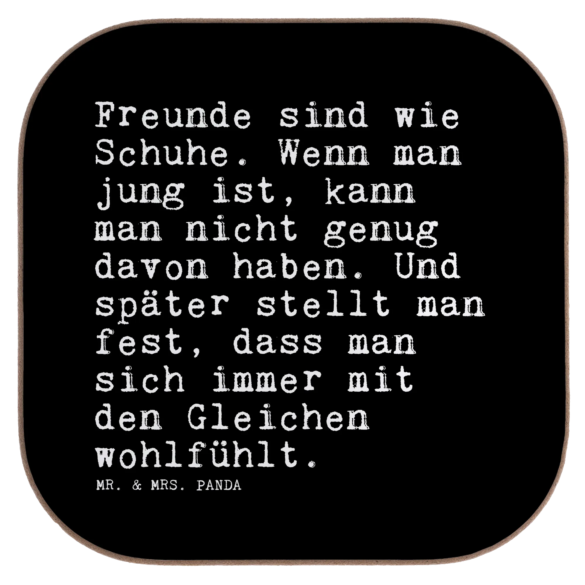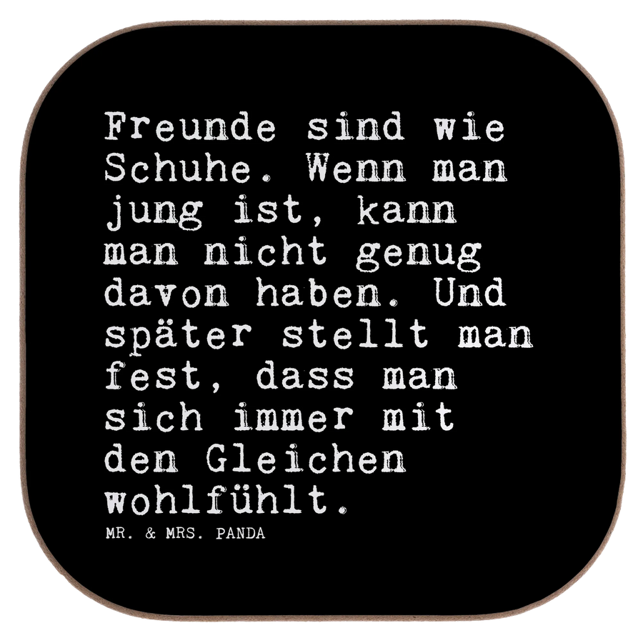Quadratische Untersetzer Sprüche und Zitate Freunde sind wie Schuhe. Wenn man jung ist, kann man nicht genug davon haben. Und später stellt man fest, dass man sich immer mit den Gleichen wohlfühlt. - Schwarz