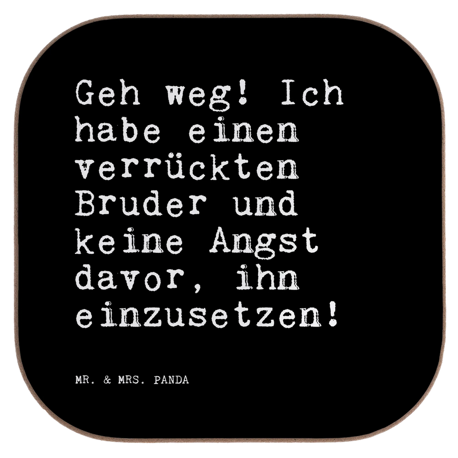 Quadratische Untersetzer Sprüche und Zitate Geh weg! Ich habe einen verrückten Bruder und keine Angst davor, ihn einzusetzen! - Schwarz