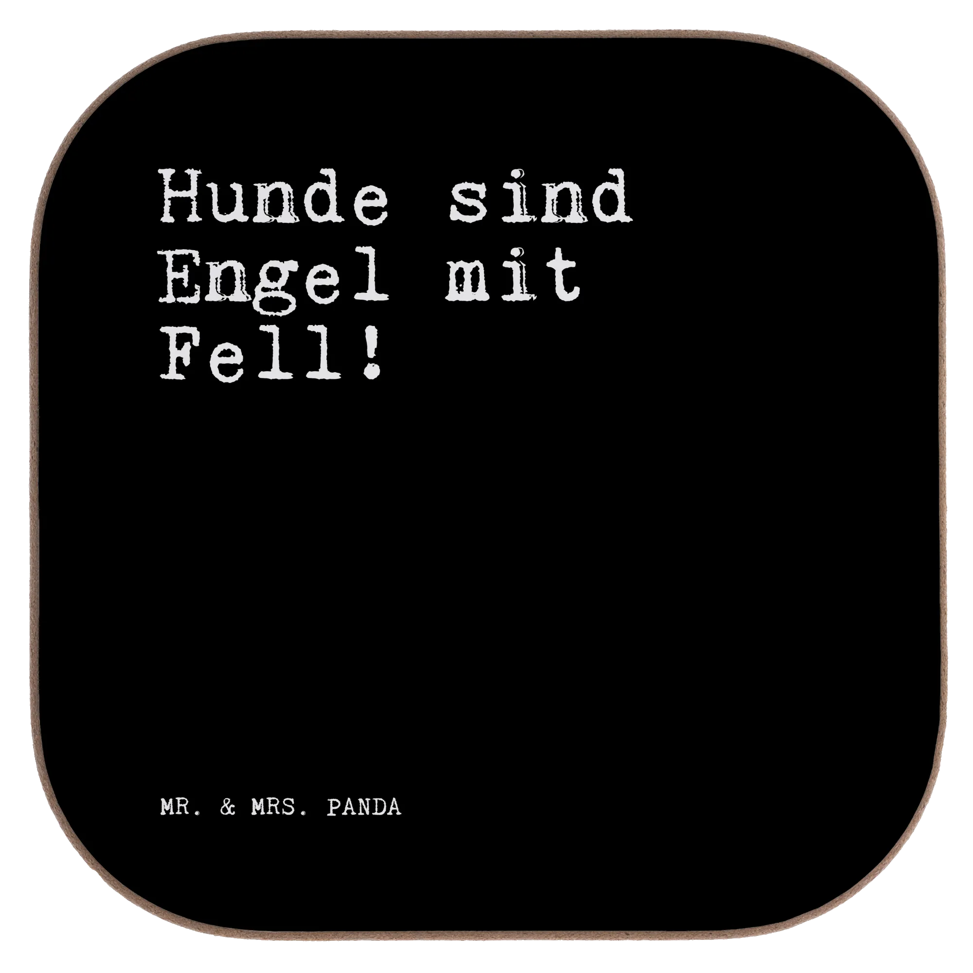 Quadratische Untersetzer Sprüche und Zitate Hunde sind Engel mit Fell! - Schwarz